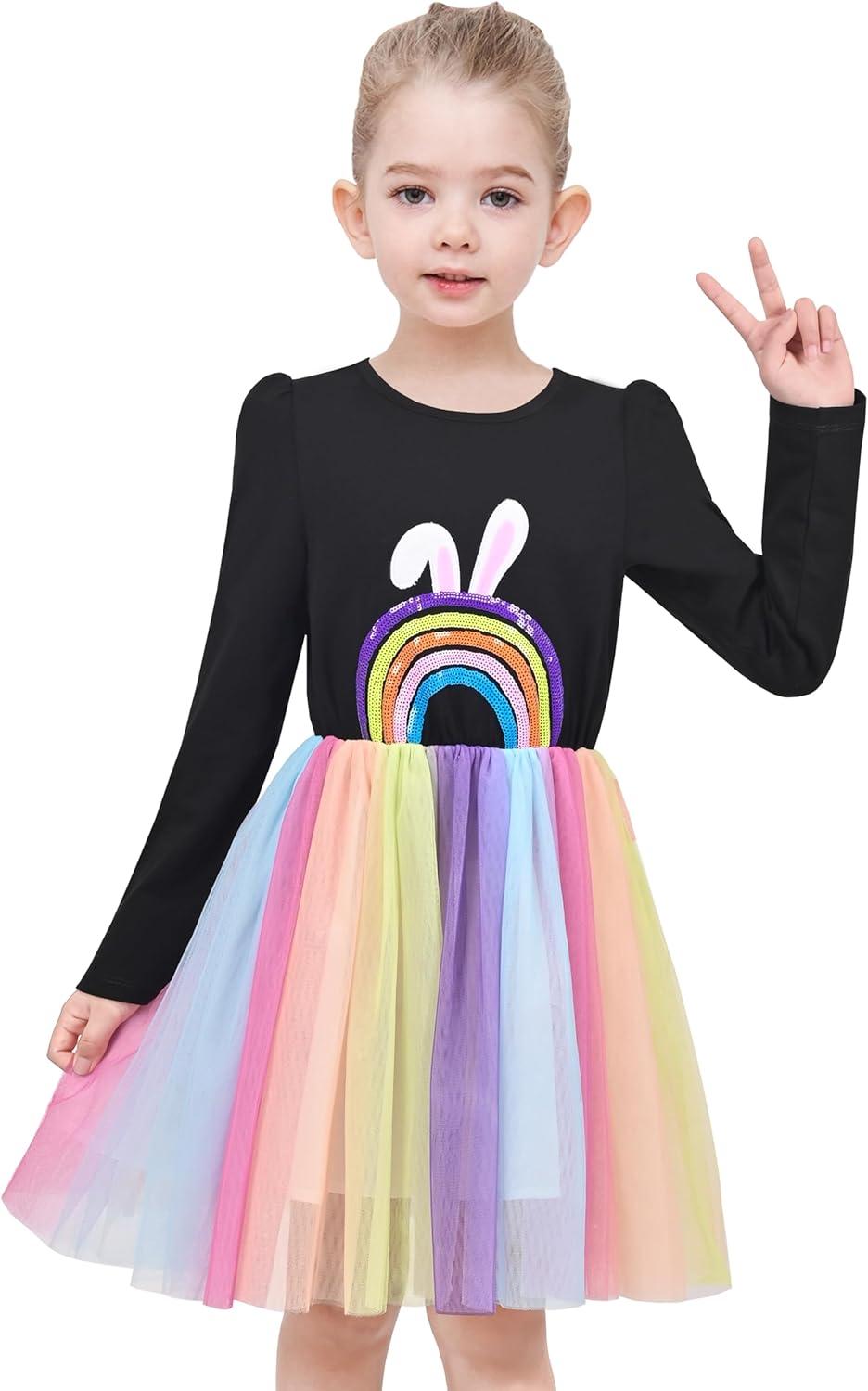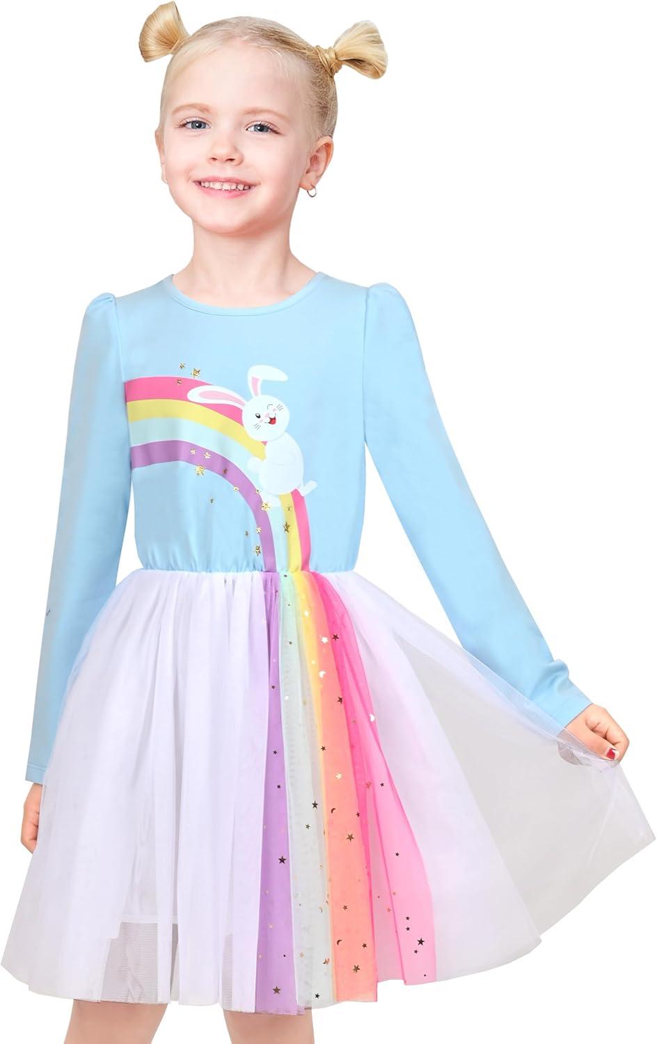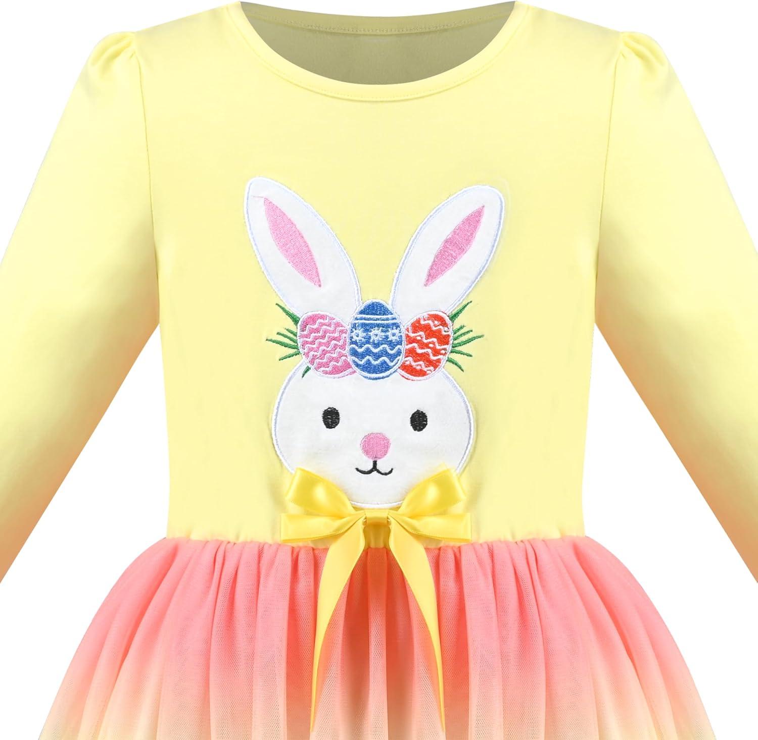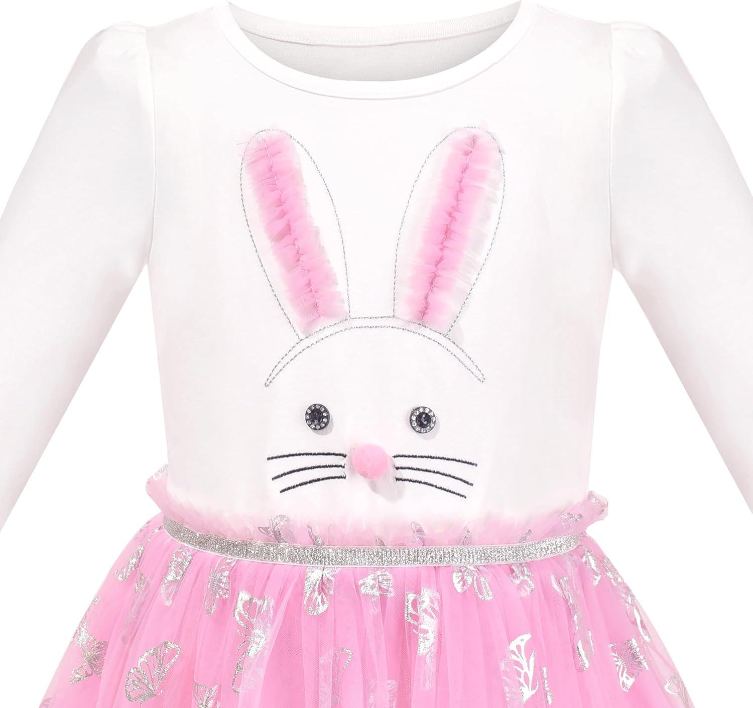 - Sunny Fashion Girls Dress Unicorn Rainbow Long Sleeve Casual Dress Size 3-8(Colorful Bunny)