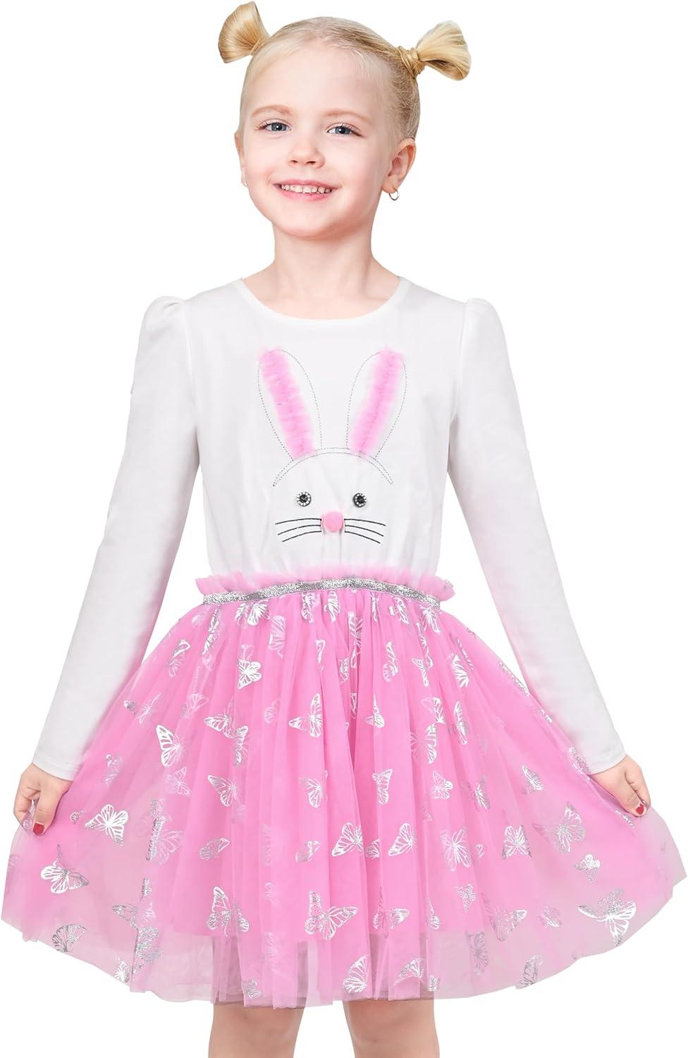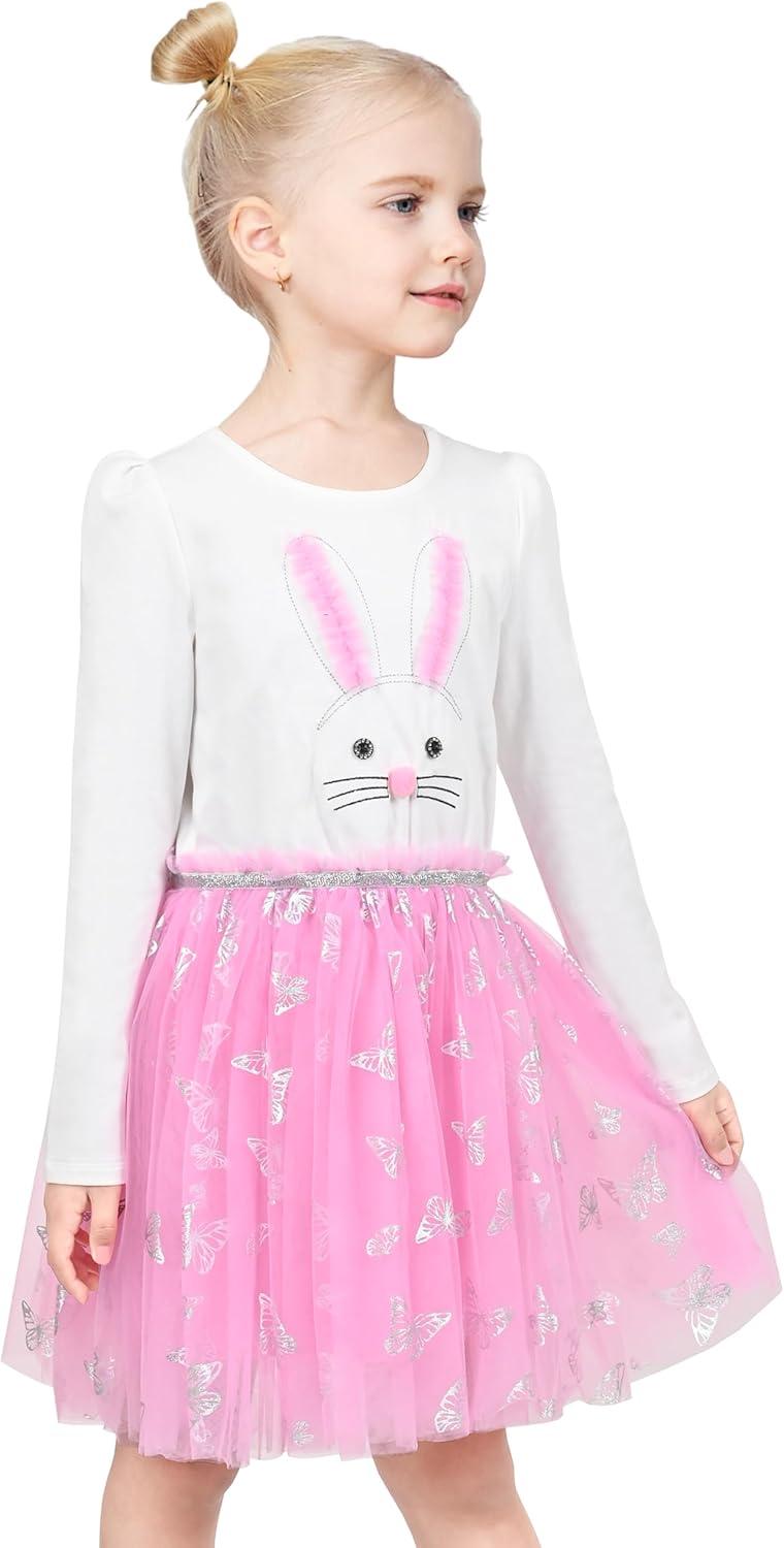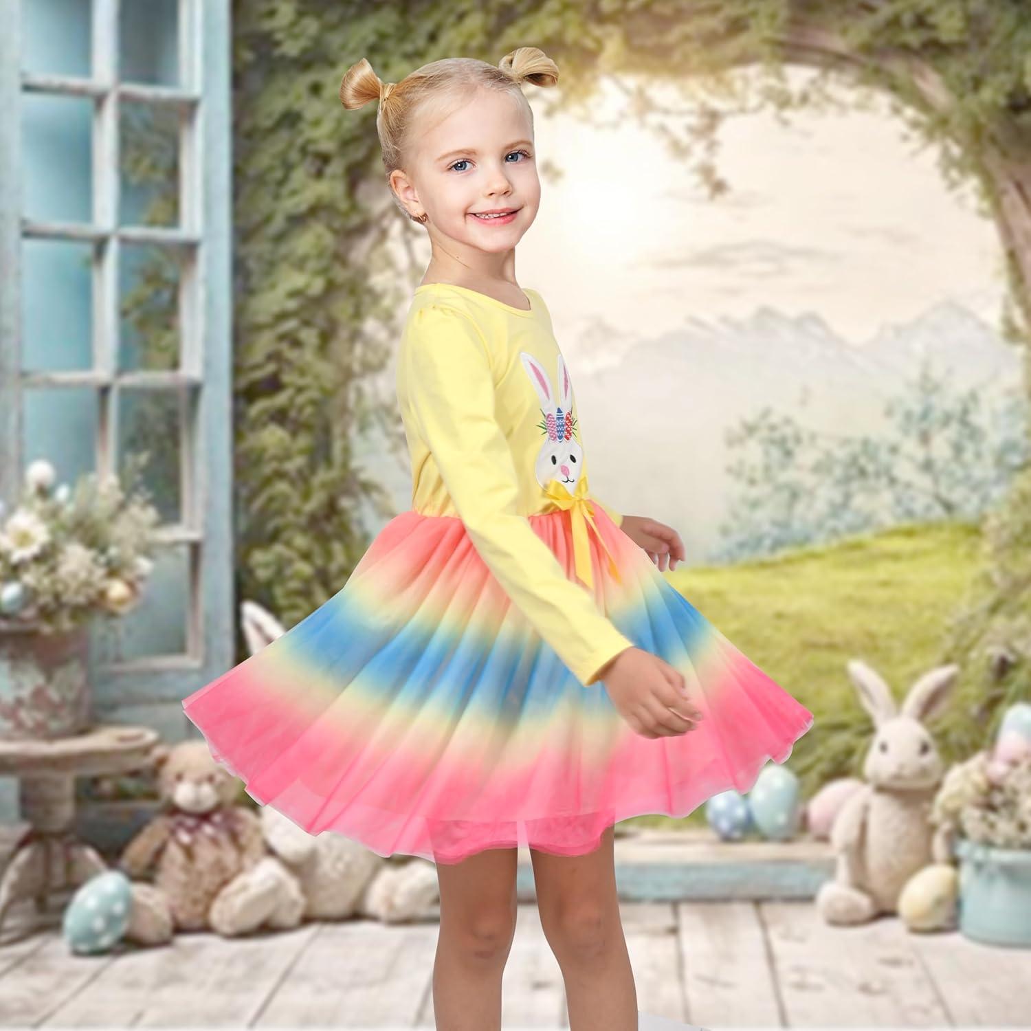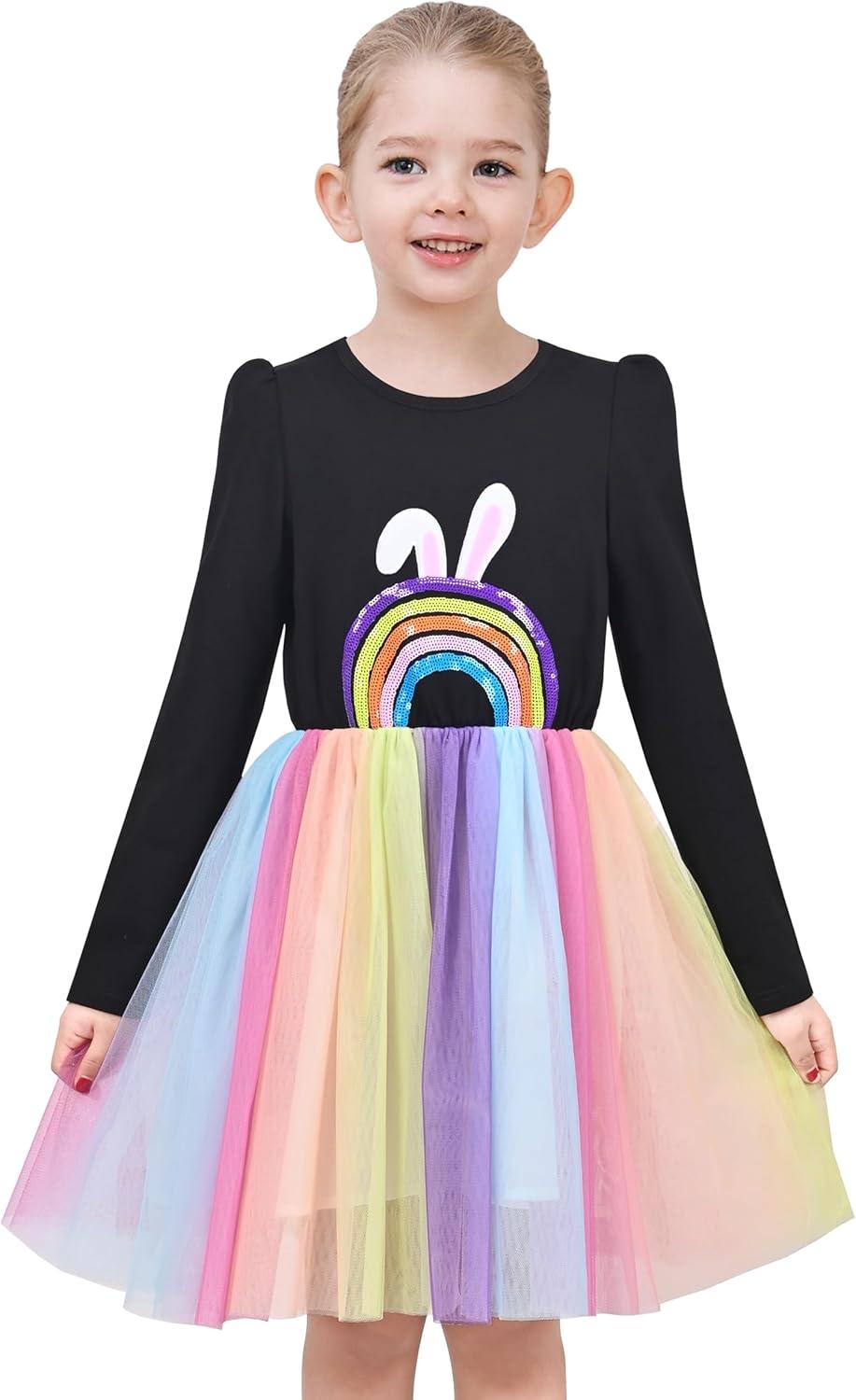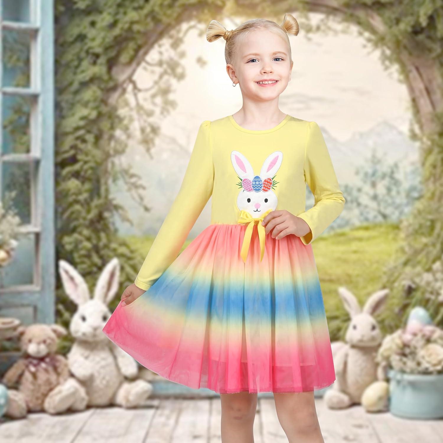 - Sunny Fashion Girls Dress Unicorn Rainbow Long Sleeve Casual Dress Size 3-8(Colorful Bunny)