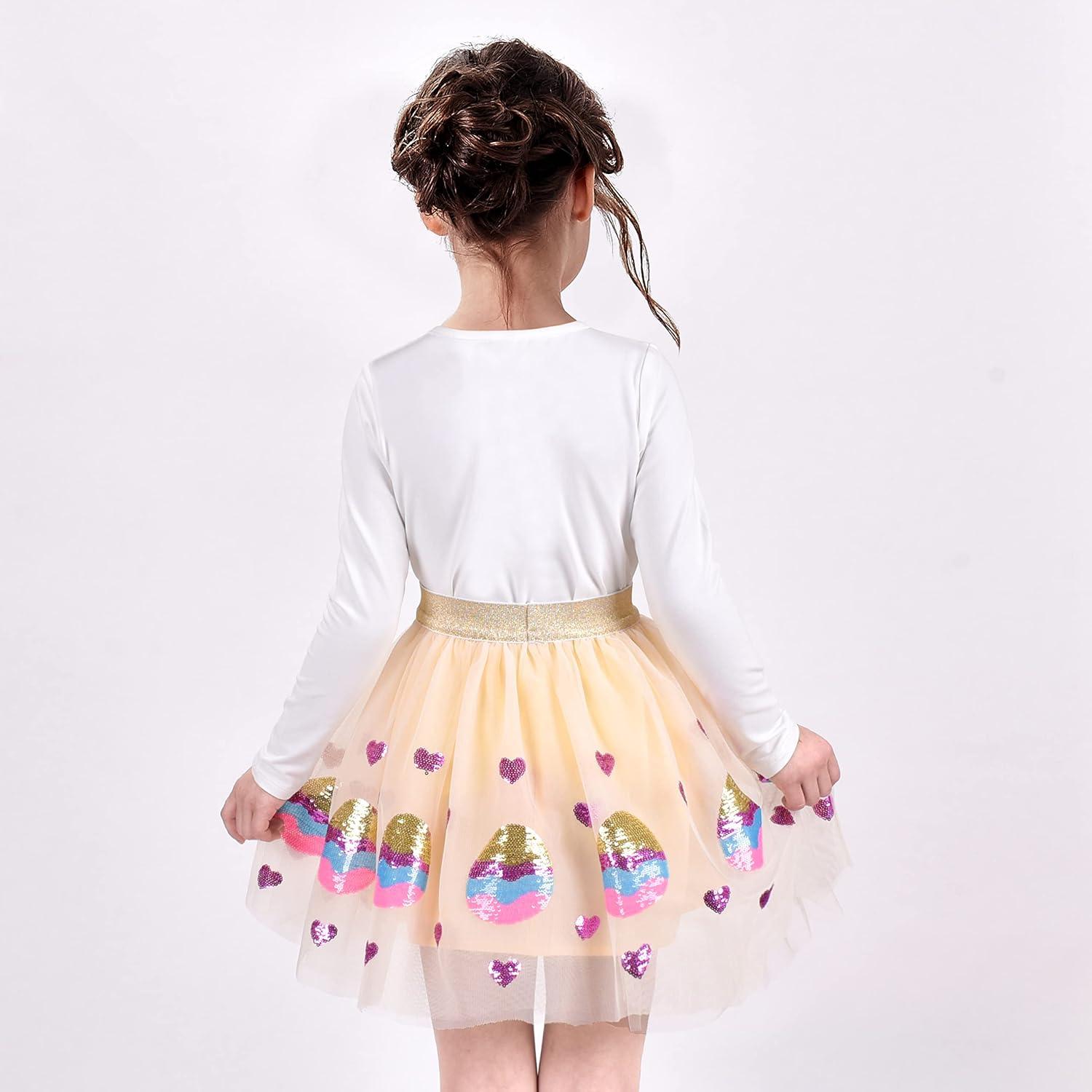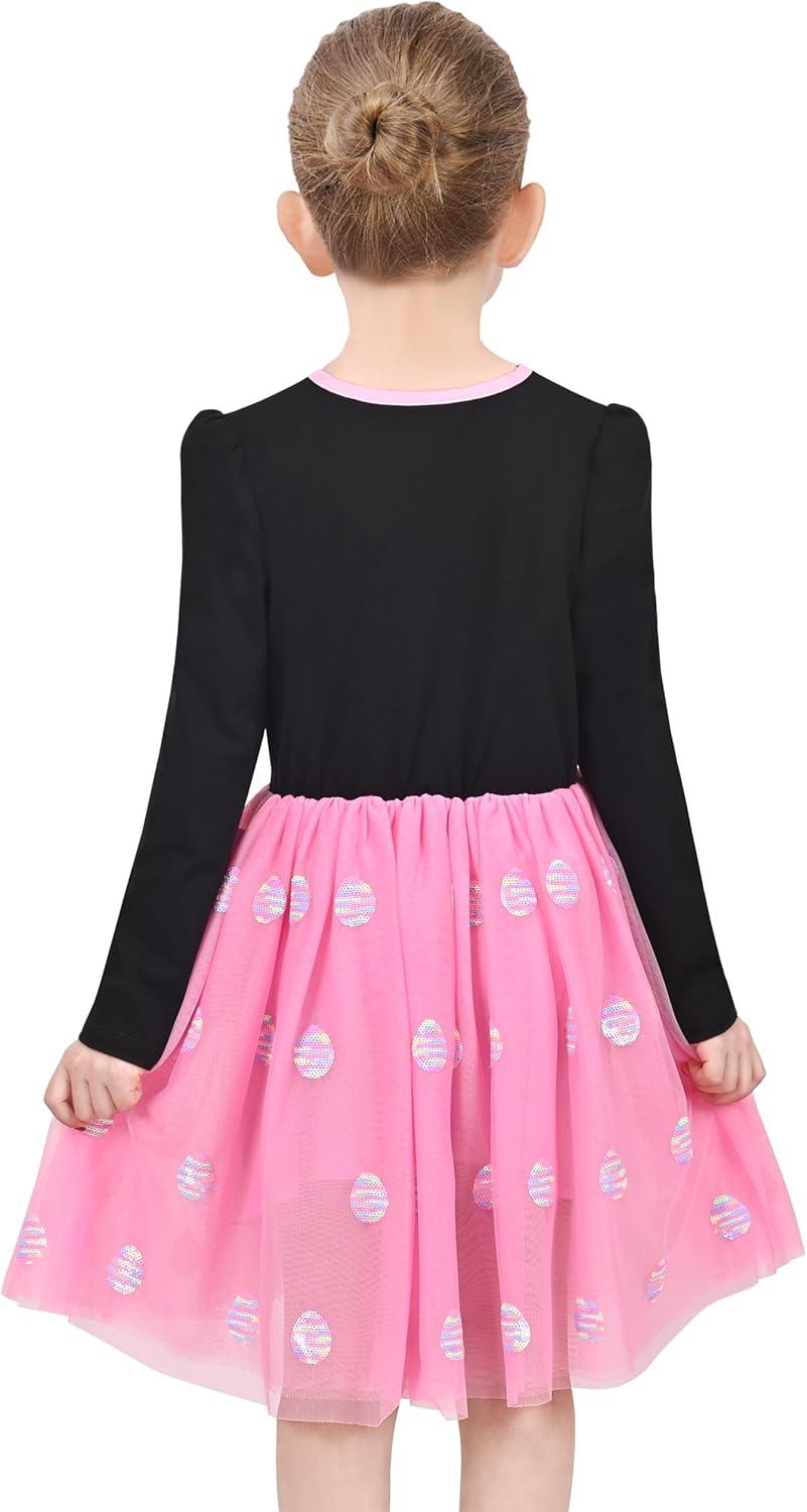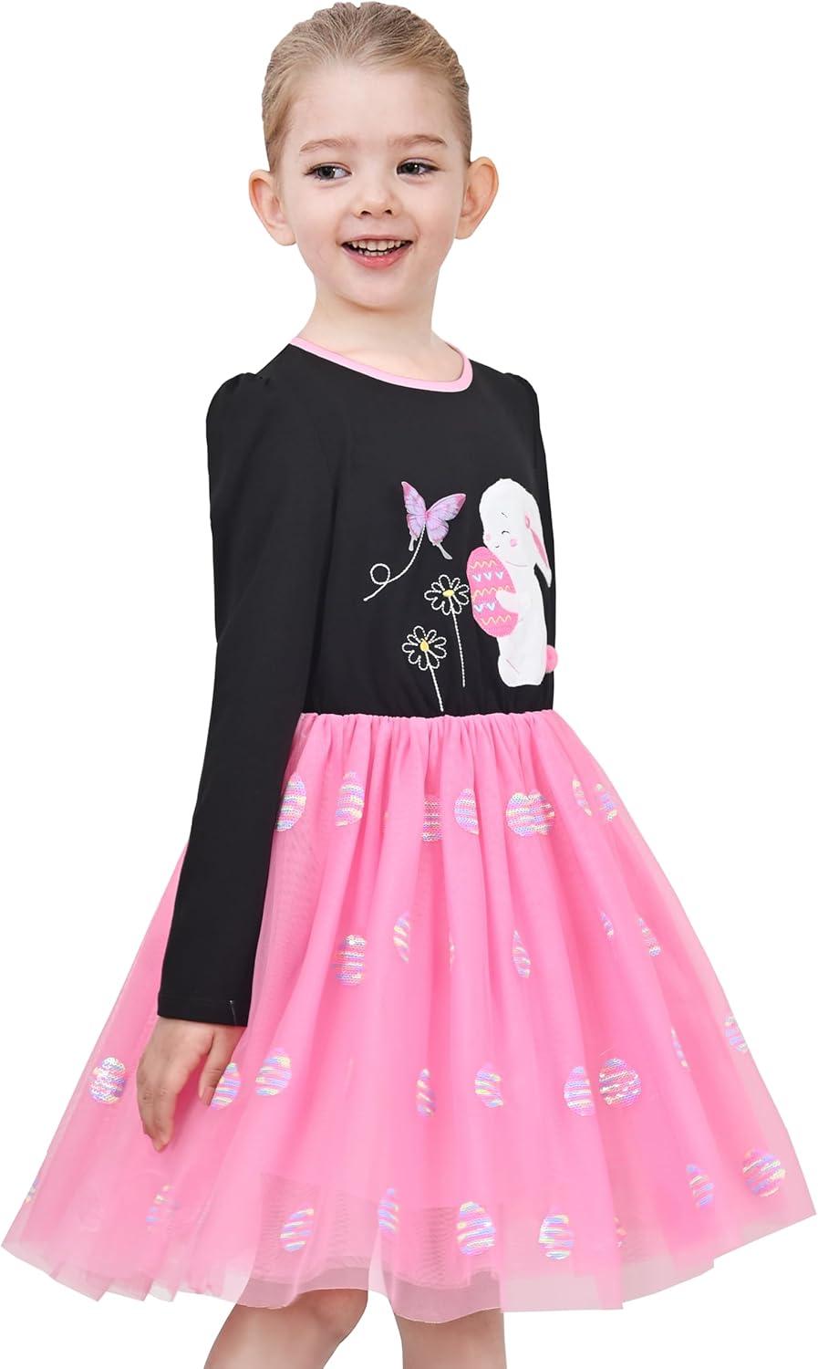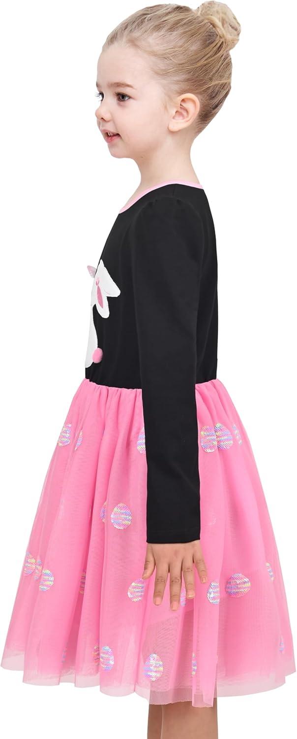 - Sunny Fashion Girls Dress Unicorn Rainbow Long Sleeve Casual Dress Size 3-8(Colorful Bunny)