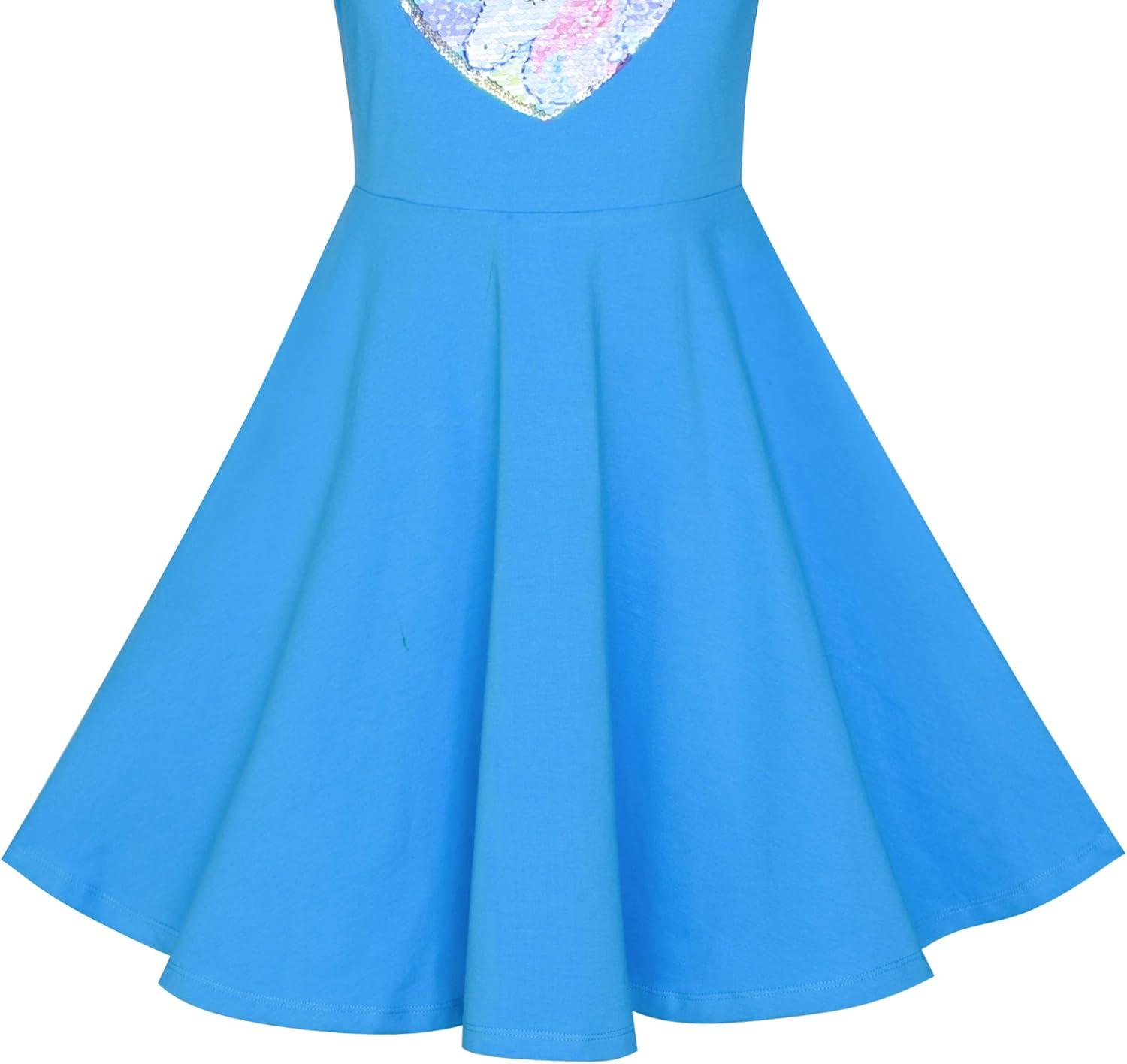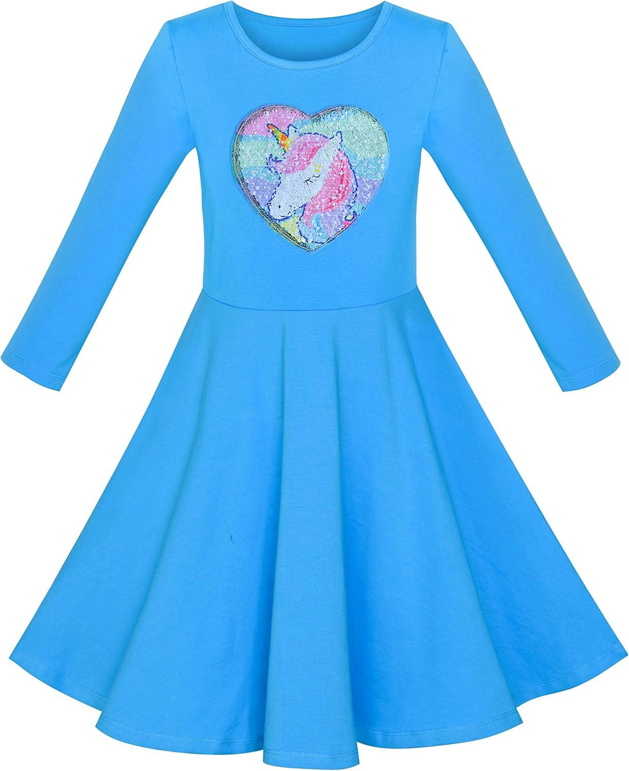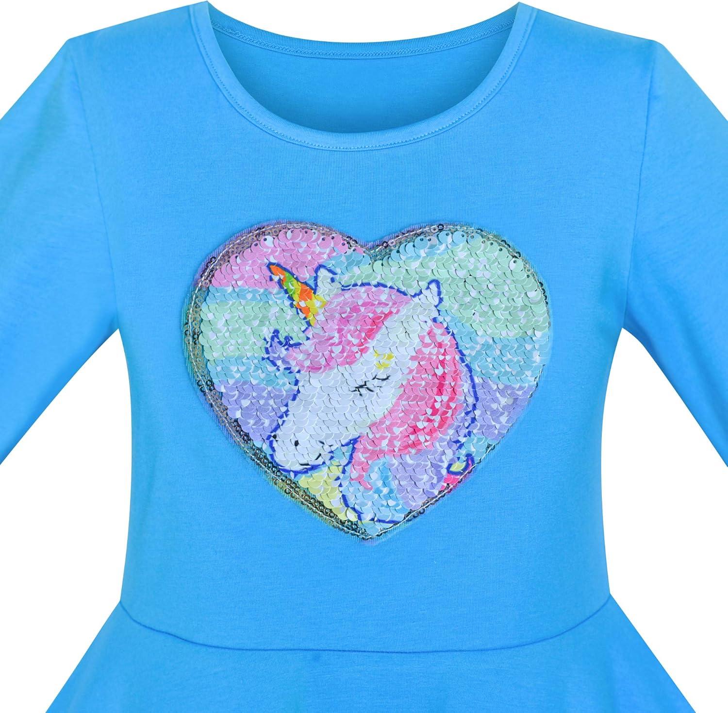 - Sunny Fashion Girls Dress Cotton Blue Unicorn Sequin Long Sleeve Casual Size 4
