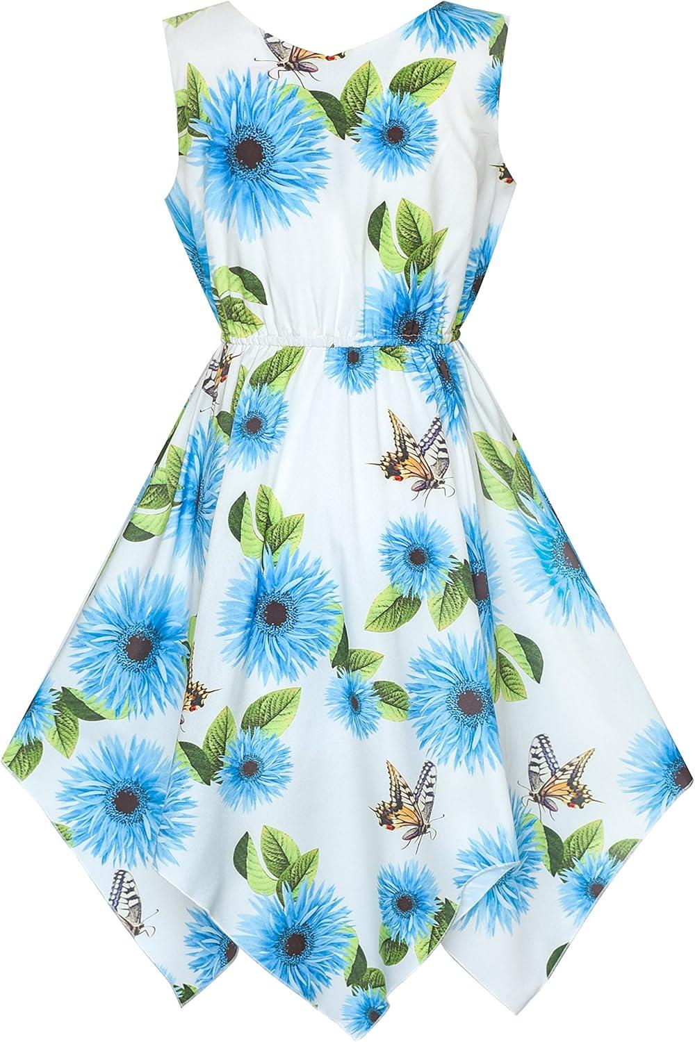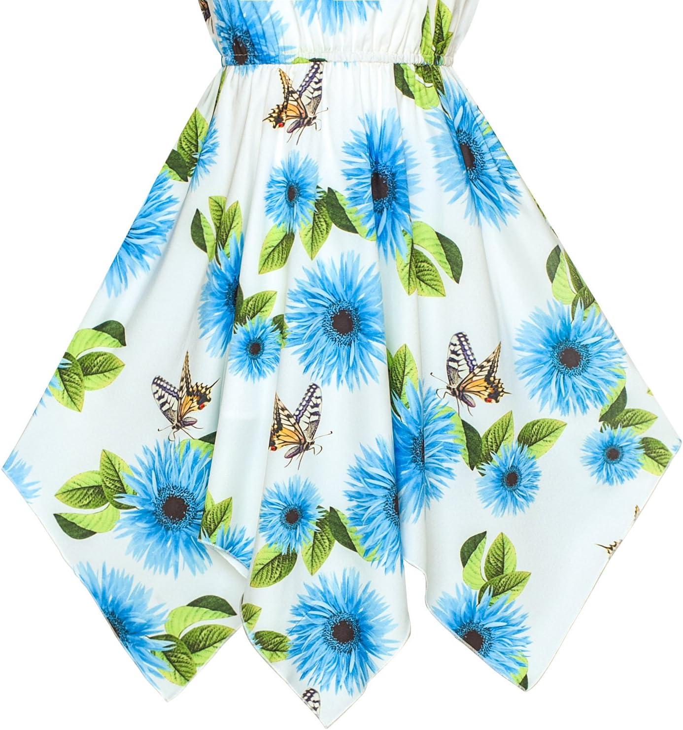 - Sunny Fashion Girls Dress Flower Print Hanky Hem Princess Size 7-14(Blue Flag)