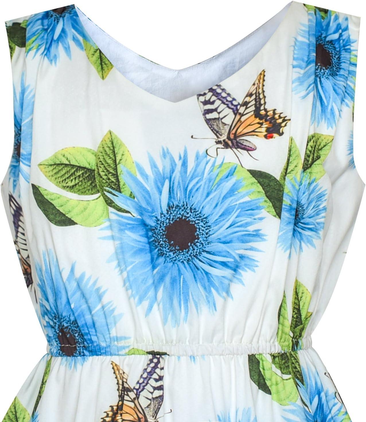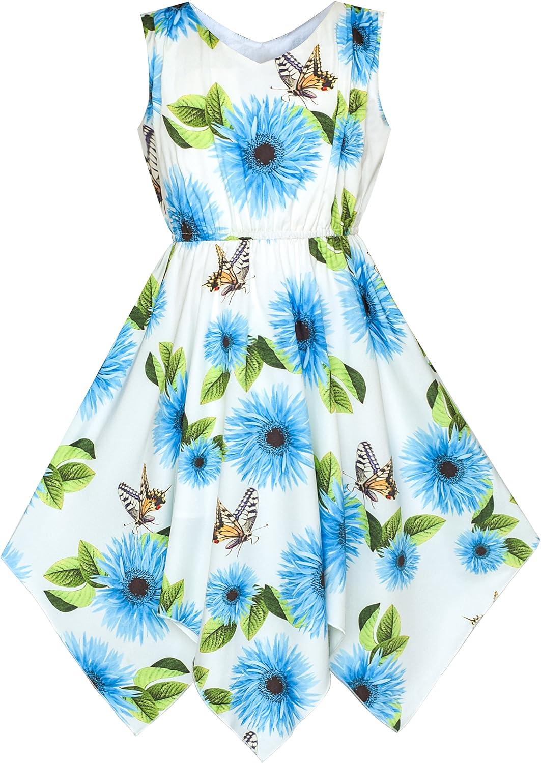 - Sunny Fashion Girls Dress Purple Sunflower Green Leaves Butterfly Size 4-12(Blue and White)
