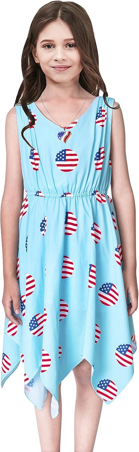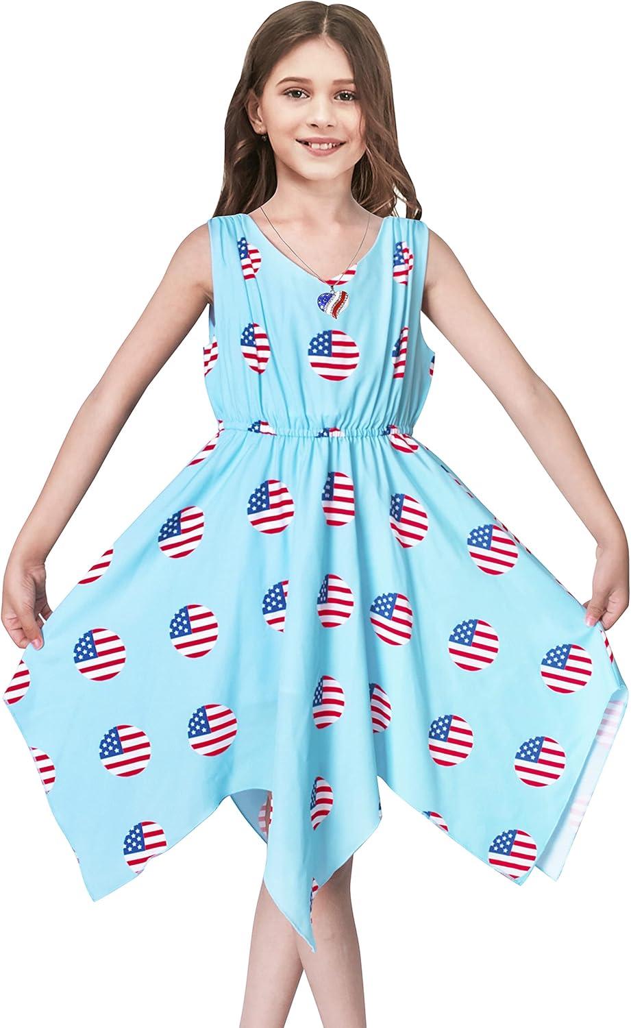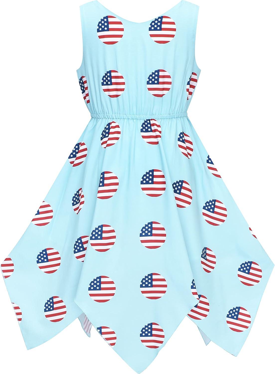 - Sunny Fashion Girls Dress Flower Print Hanky Hem Princess Size 7-14(American Flag Blue)