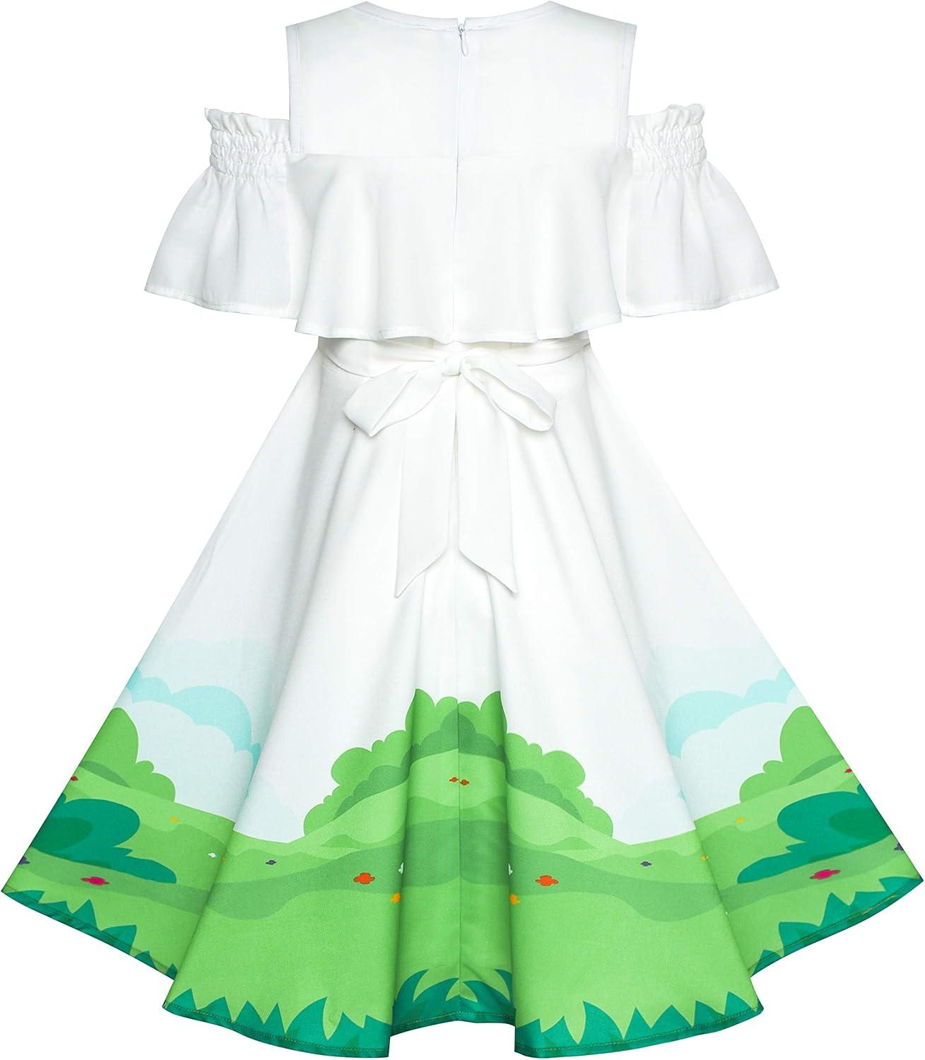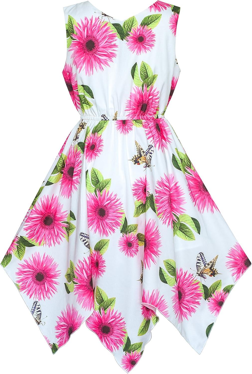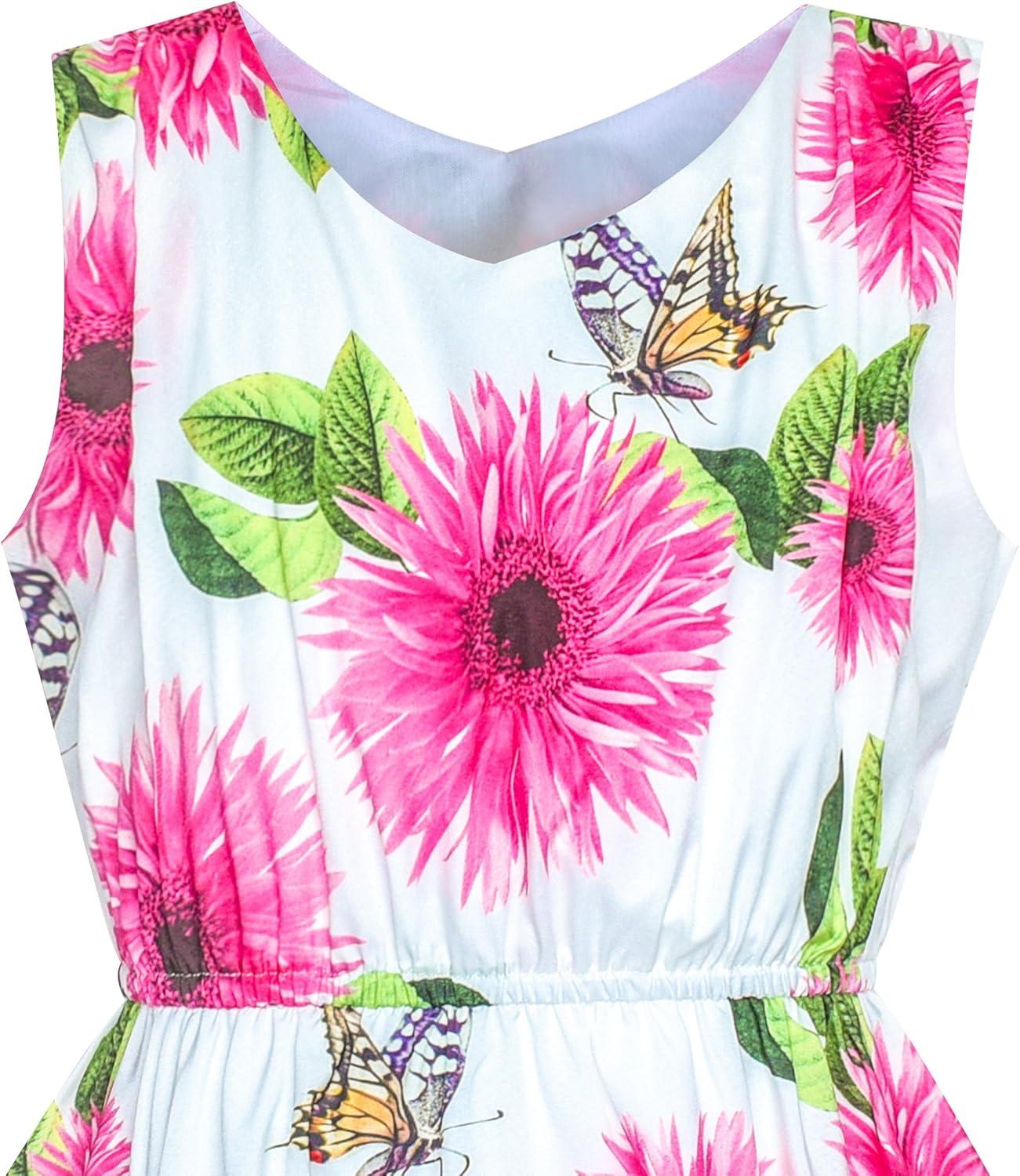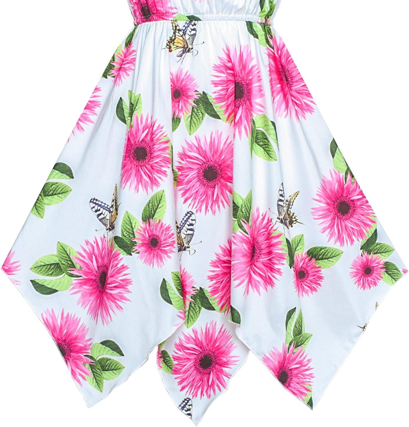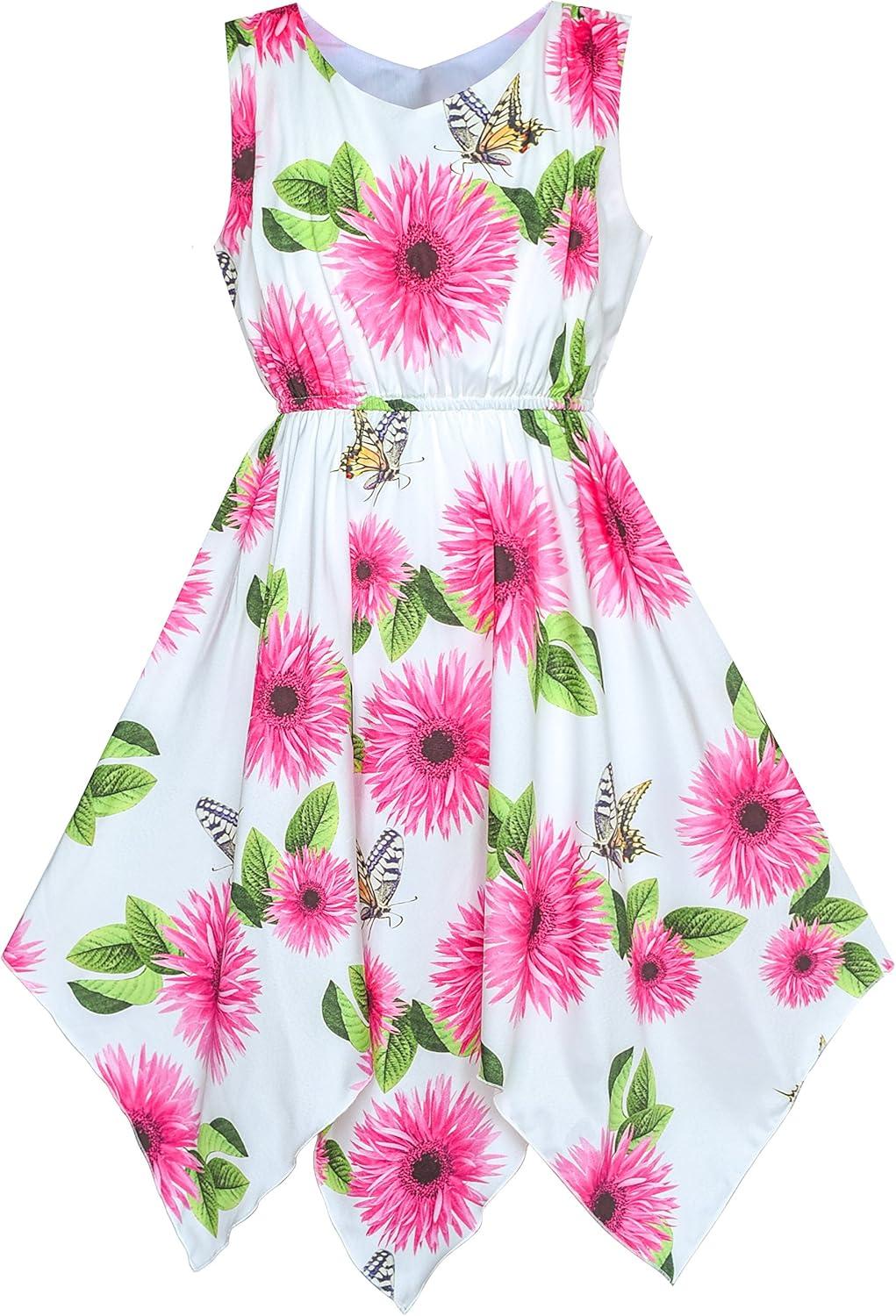 - Sunny Fashion Girls Dress Purple Sunflower Green Leaves Butterfly Size 4-12(Pink and White)