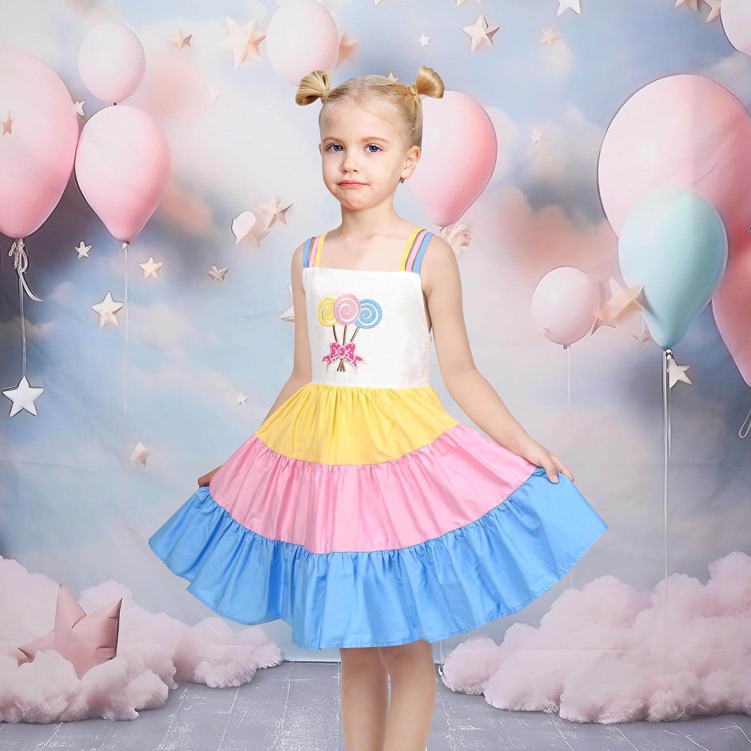 - Girls Dress Rainbow Icecream Unicorn Strip Suspender Sleeveless Sundress Summer Size 4