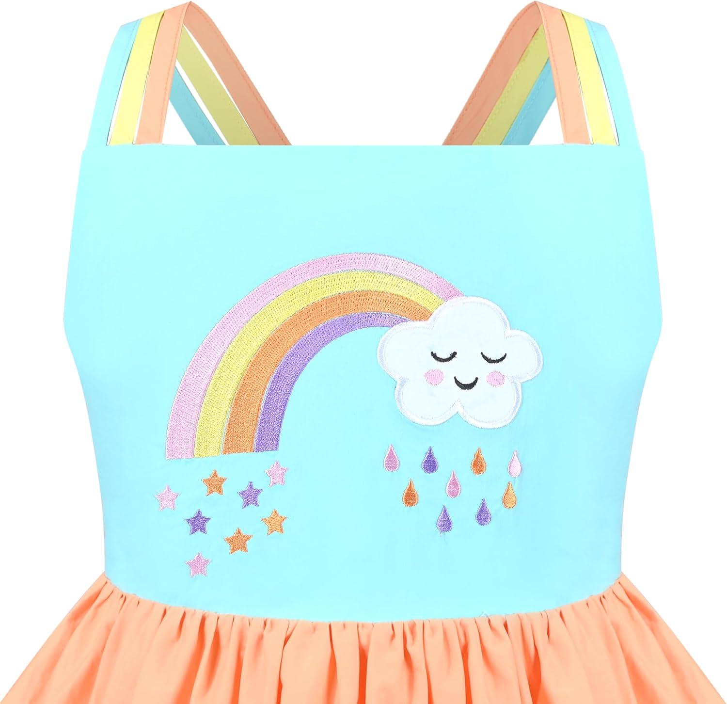 - Sunny Fashion Girls Dress Unicorn Embroidered Rainbow Holiday Party Halloween(Rainbow Unicorn)