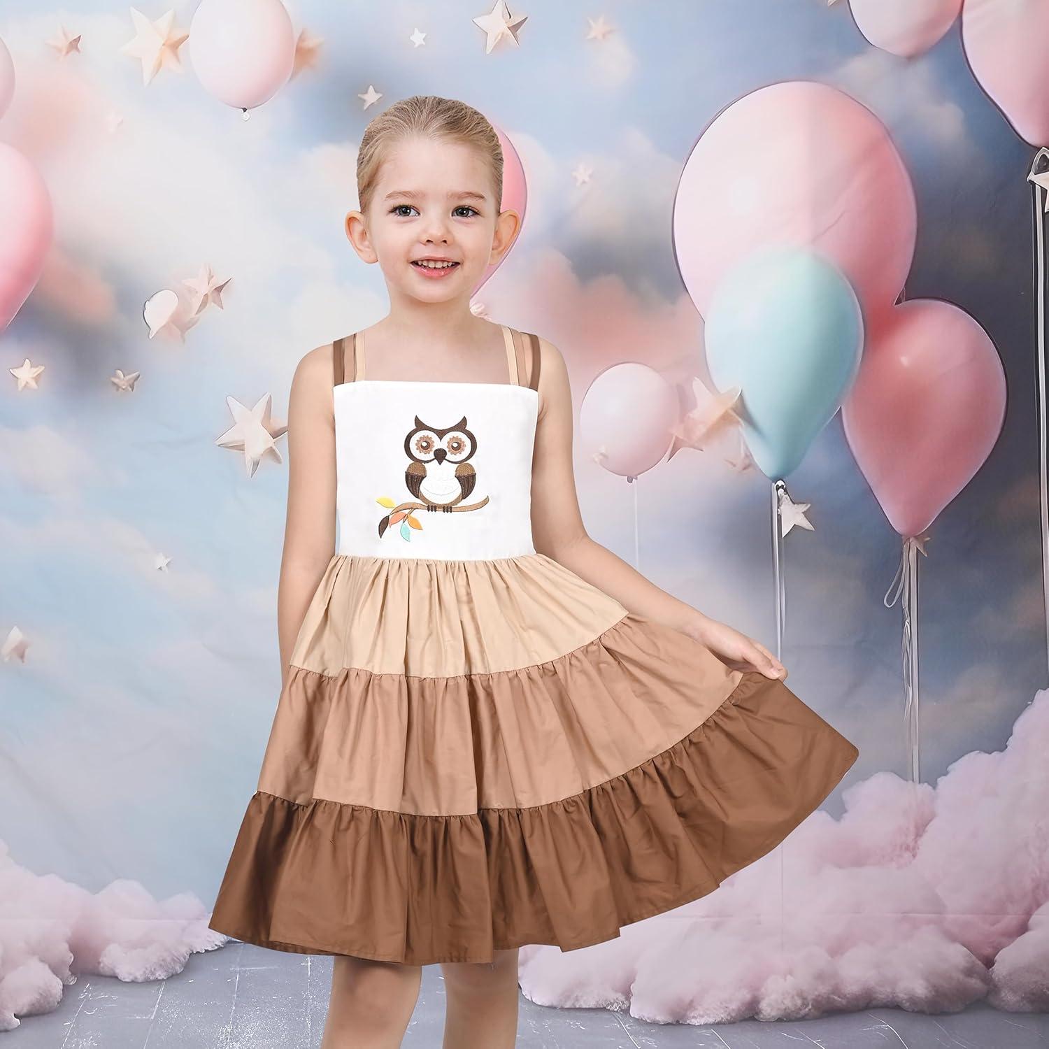 - Sunny Fashion Flower Girls Dress Unicorn Rainbow Pageant Princess Party(Brown Owl)