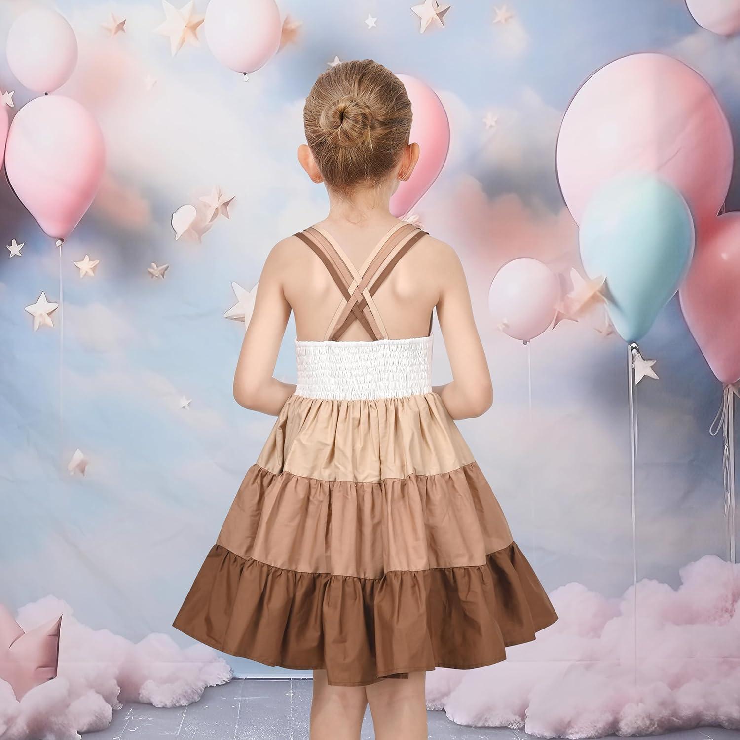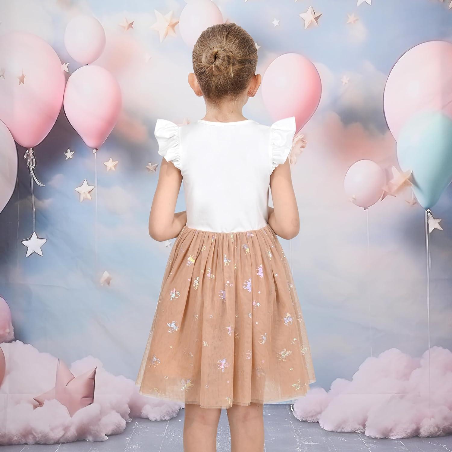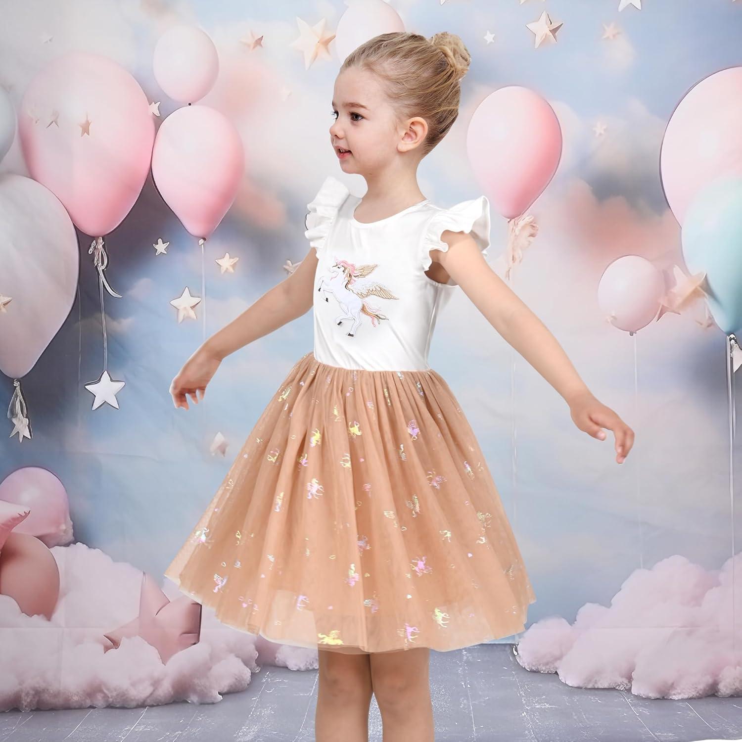 - Sunny Fashion Flower Girls Dress Unicorn Rainbow Pageant Princess Party(Beige Star)