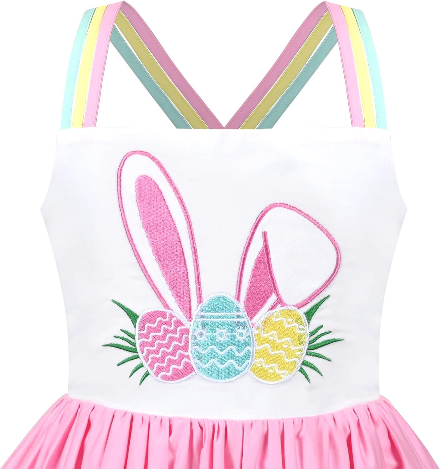 - Sunny Fashion Girls Dress Unicorn Embroidered Rainbow Holiday Party Halloween(Pink Bunny Set)