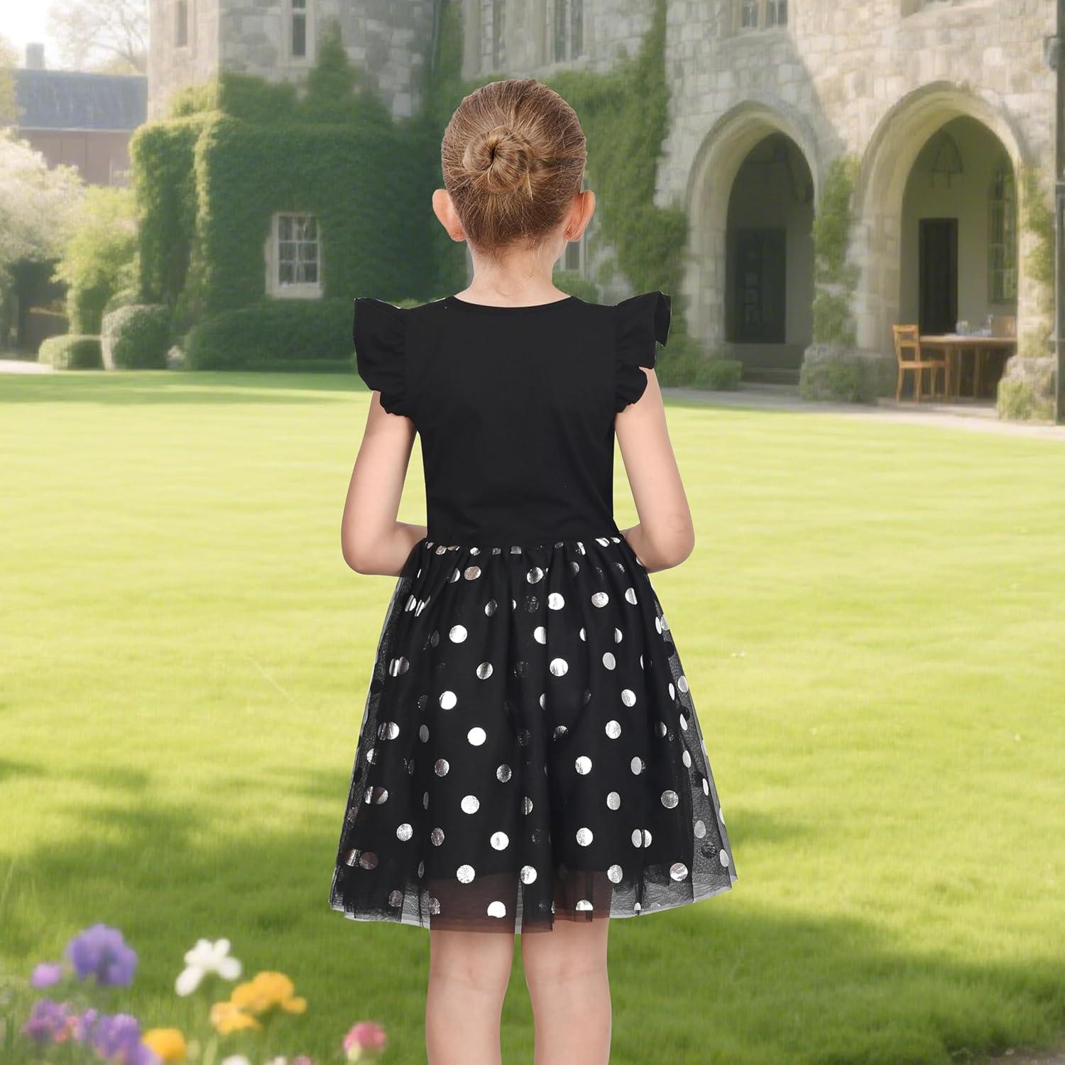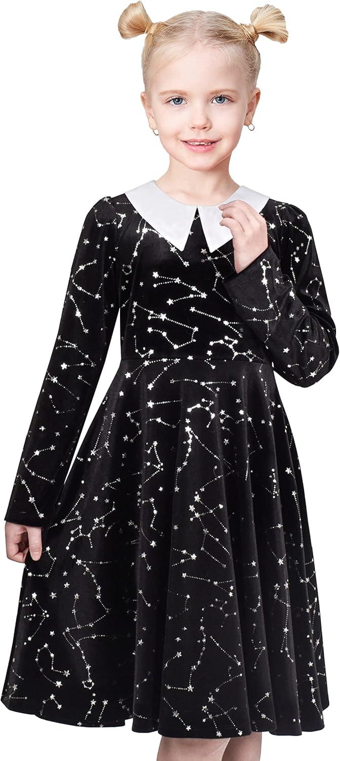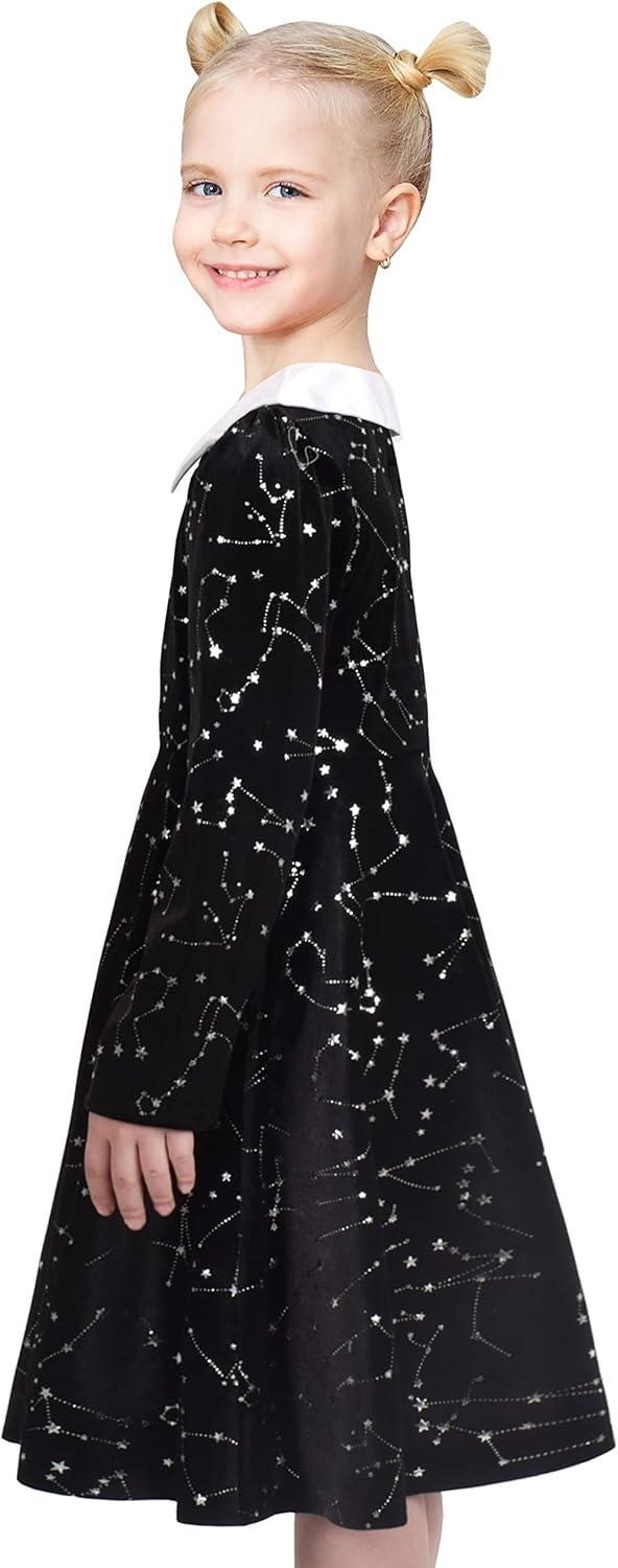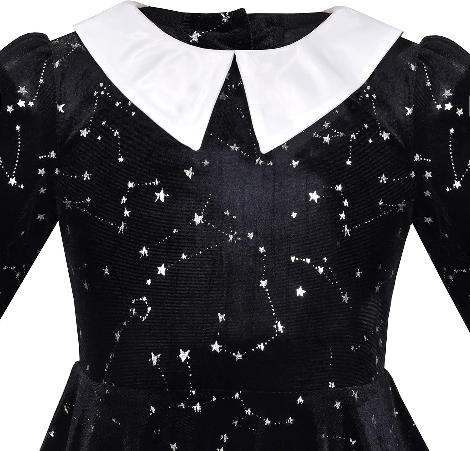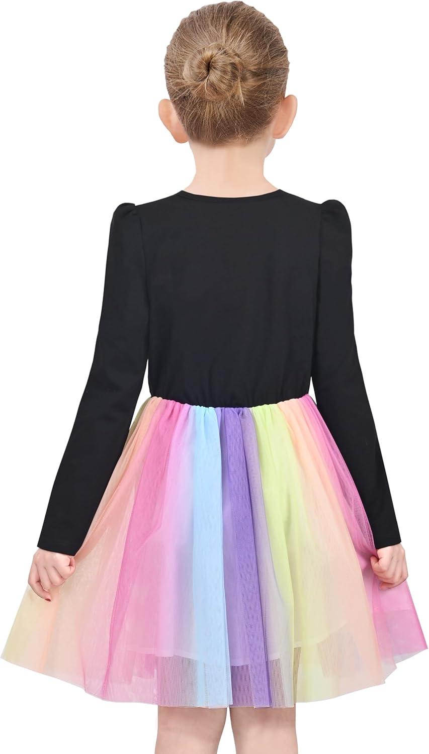 - Sunny Fashion Girls Dress Unicorn Rainbow Long Sleeve Casual Dress Size 3-8(Black Stars)