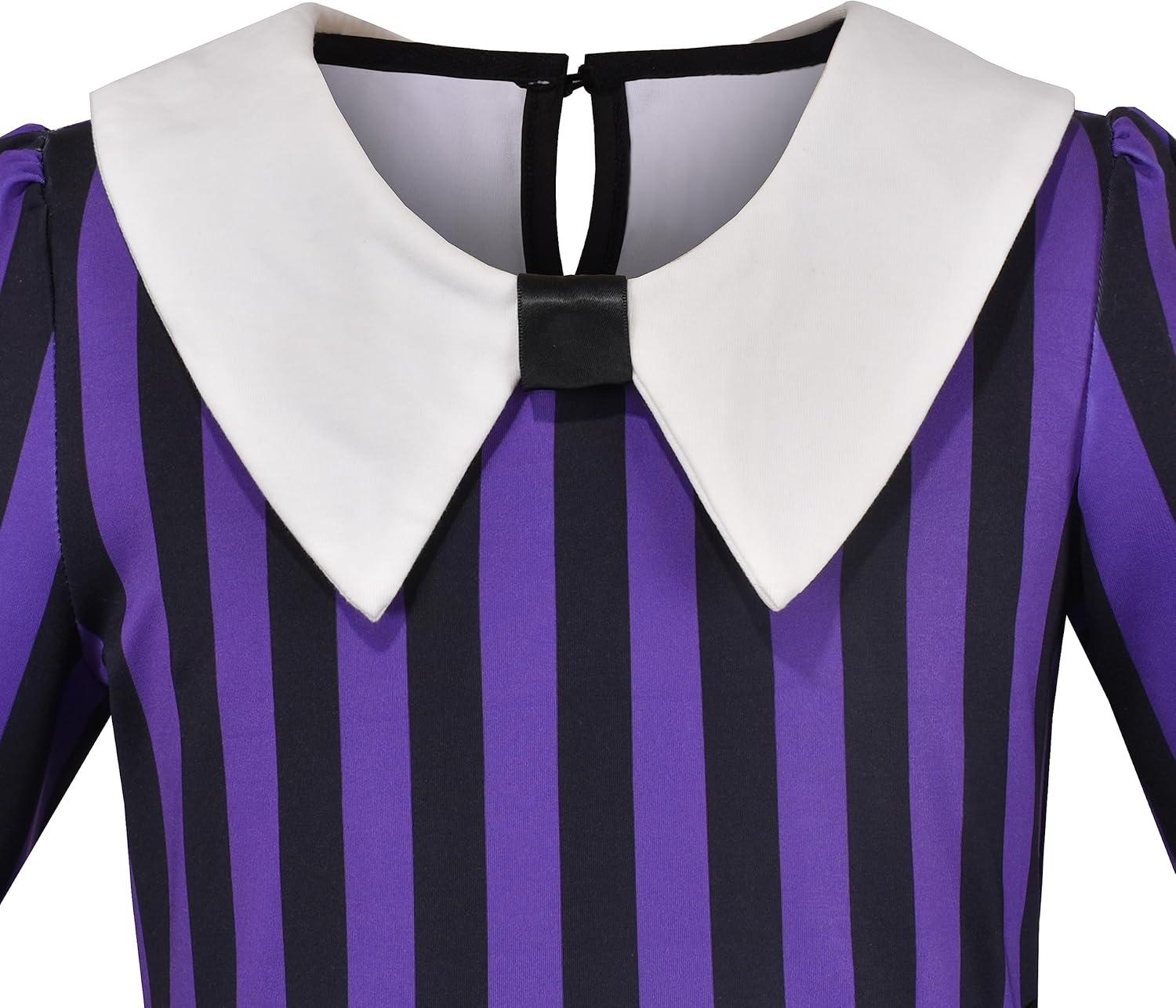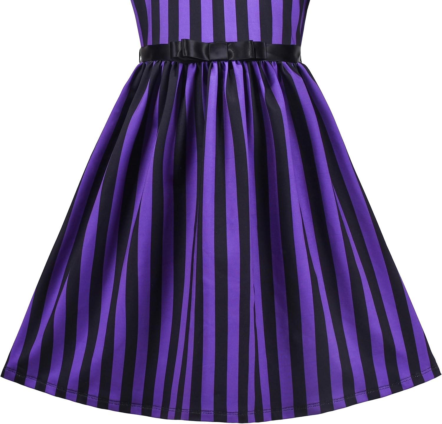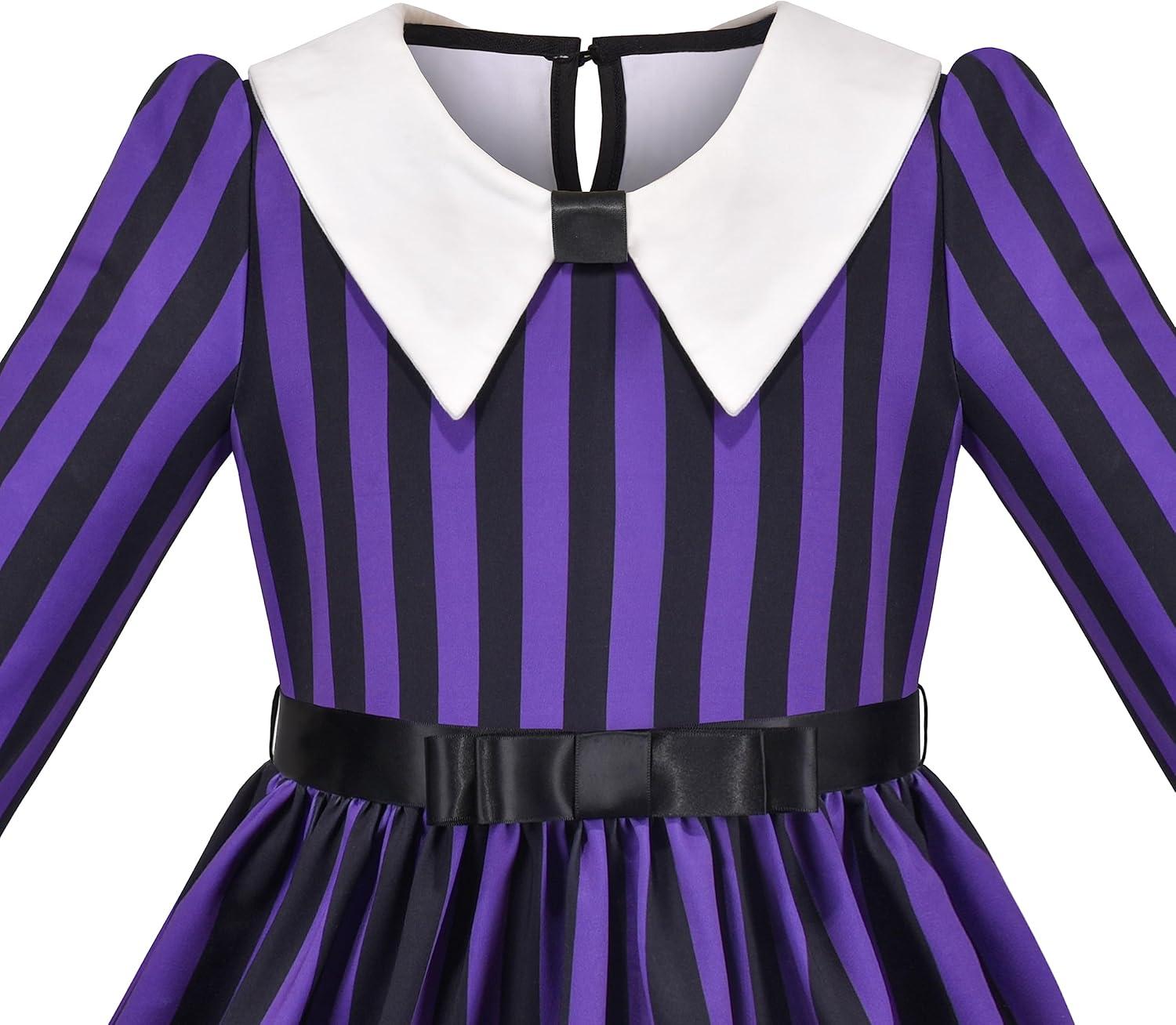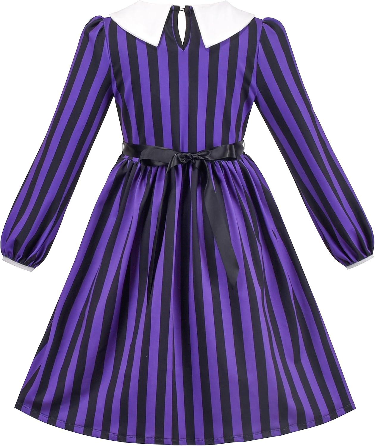 - Sunny Fashion Girls Dress Unicorn Rainbow Long Sleeve Casual Dress Size 3-8(Purple Striped)