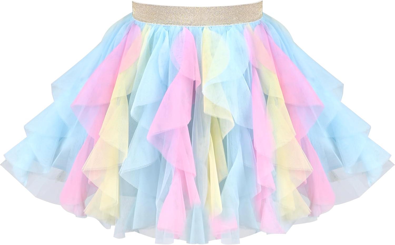 - Sunny Fashion Girls Skirt Navy Blue Pearl Stars Sparkling Tutu Dancing Size 4-12(Purple Rainbow)