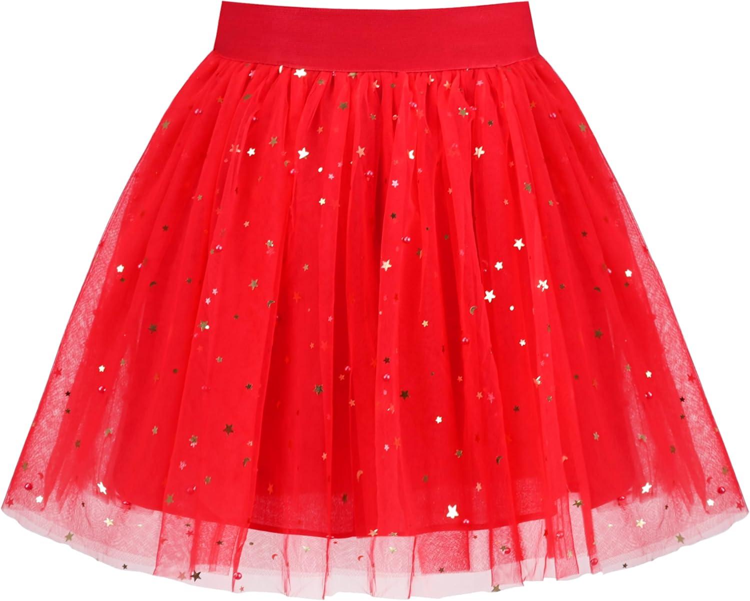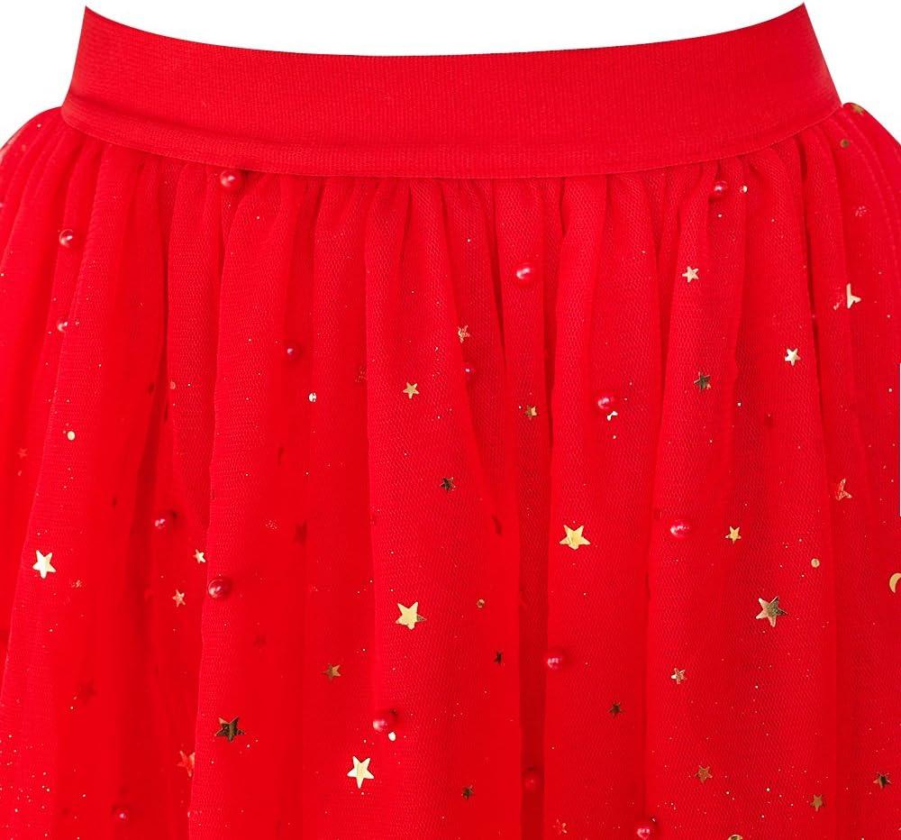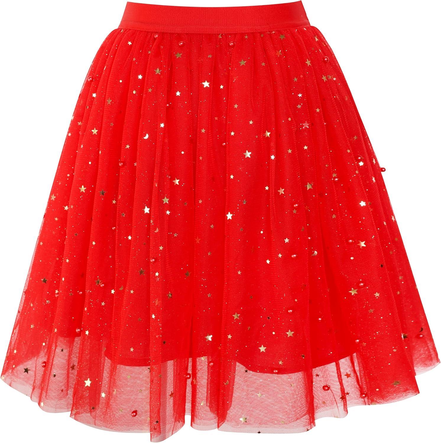 - Sunny Fashion Girls Skirt Navy Blue Pearl Stars Sparkling Tutu Dancing Size 4-12(Red)
