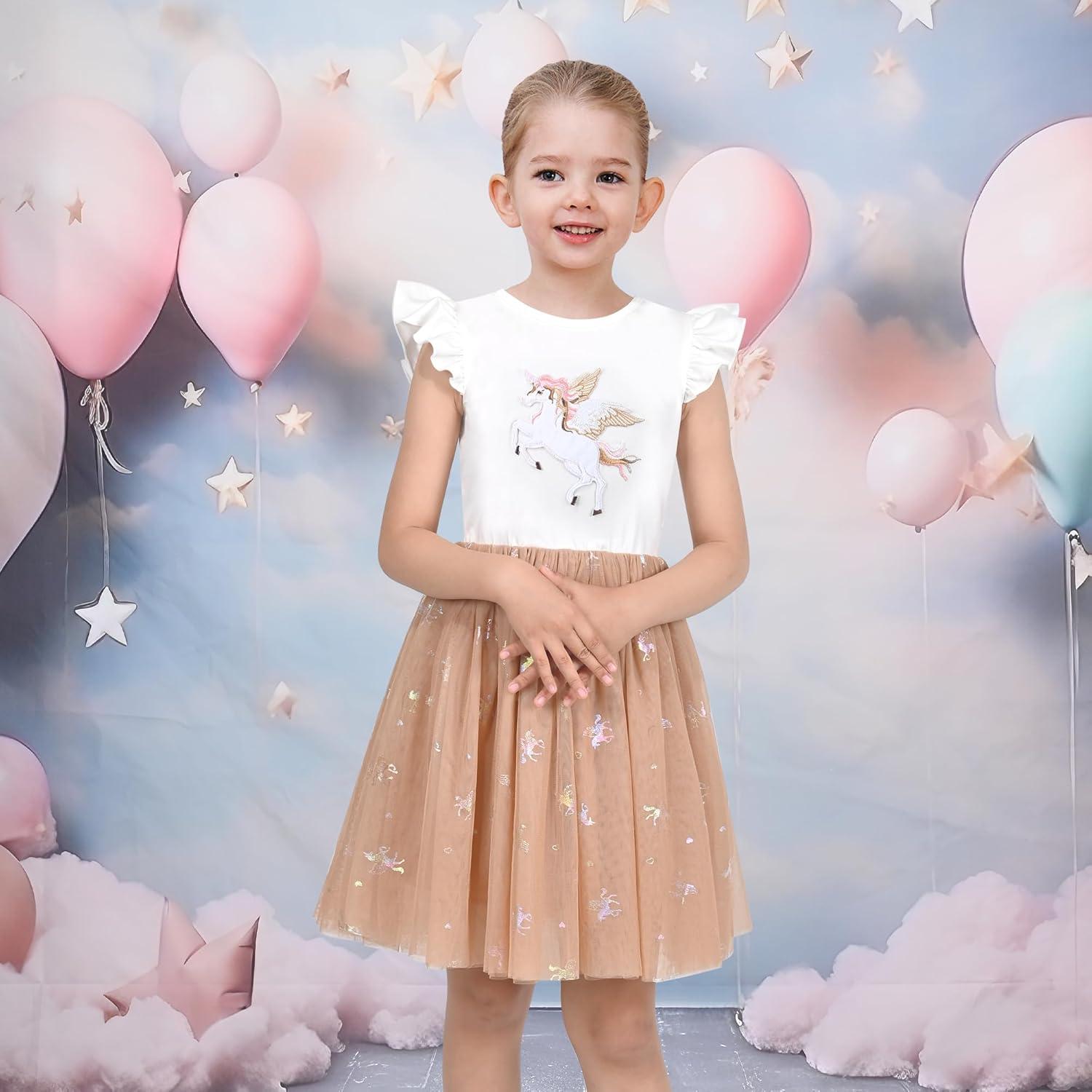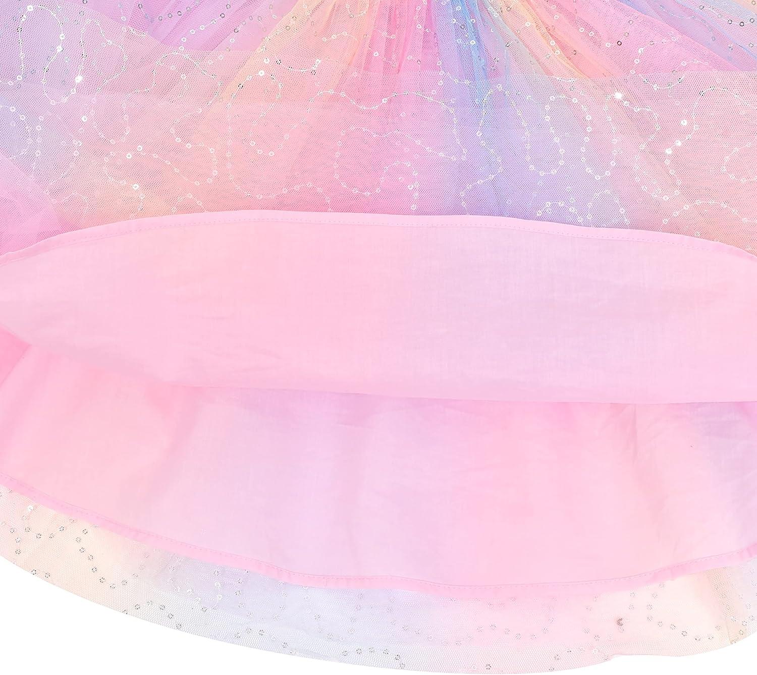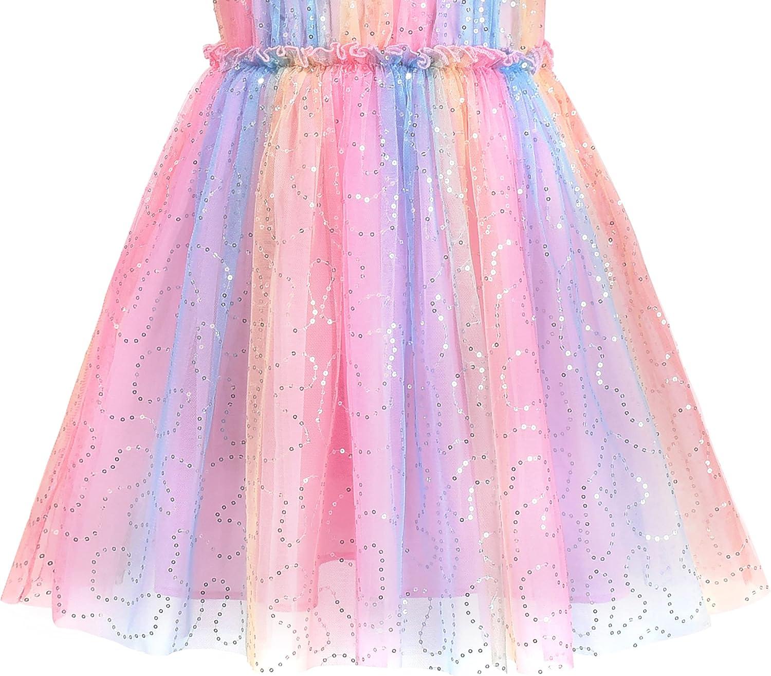 - Sunny Fashion Girl Dress Pink Tulle Sequin Unicorn Star Moon Party Ruffle(Multi-color)