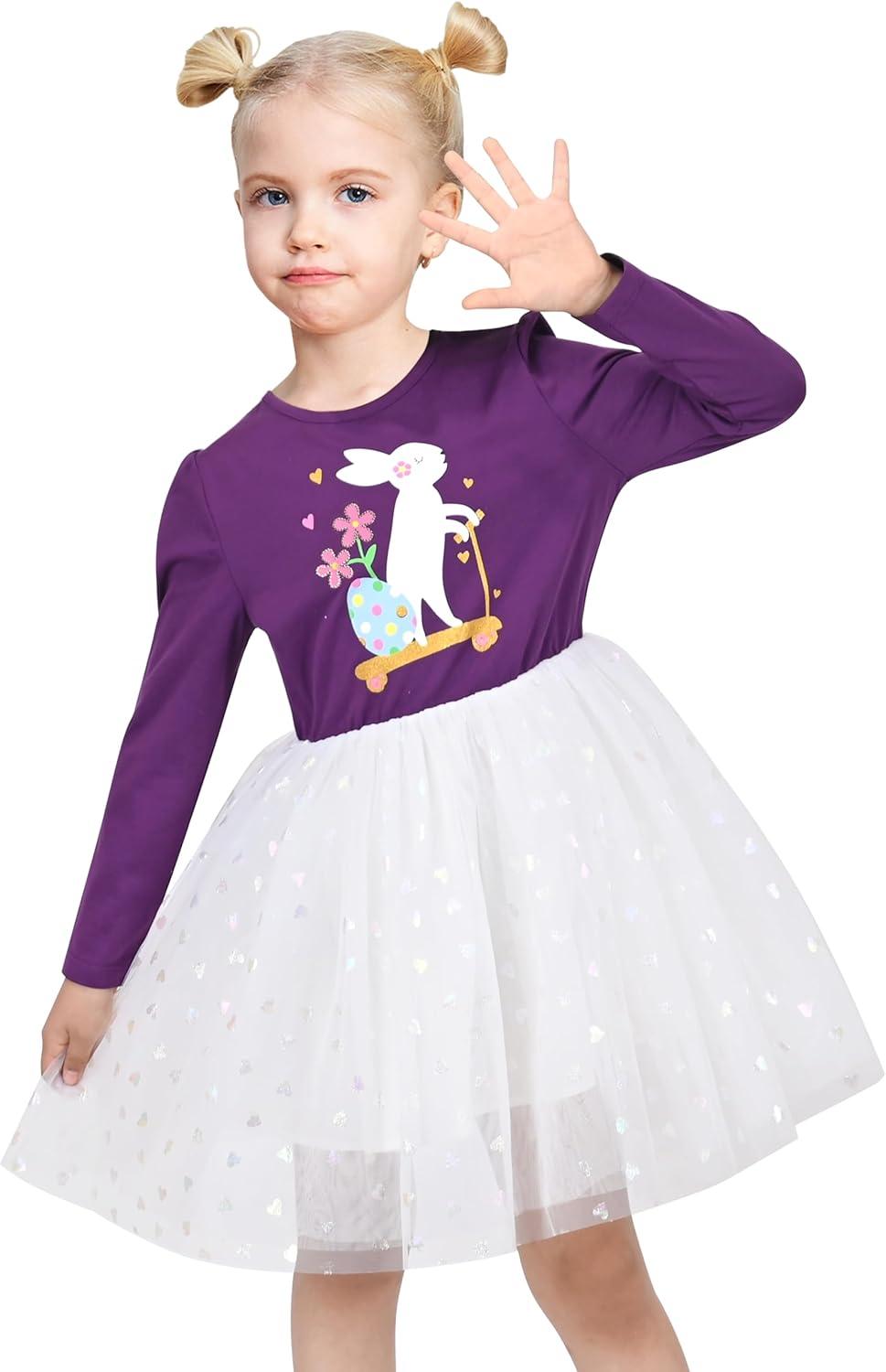 - Sunny Fashion Girls Dress Daisy Embroidered Long Sleeve Purple Party Dress Smile(Rainbow Bunny)