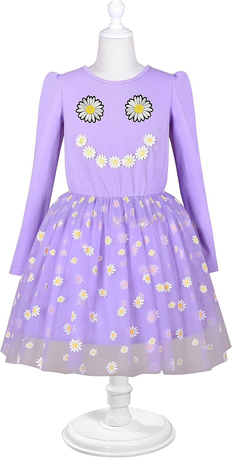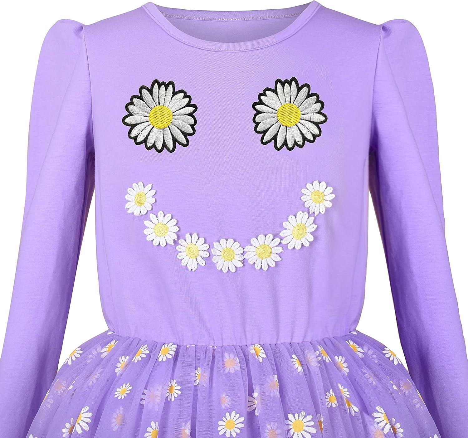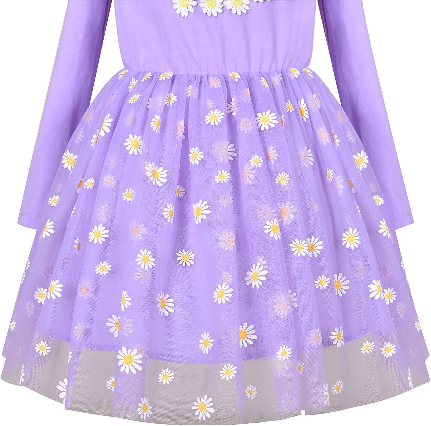 - Sunny Fashion Girls Dress Daisy Embroidered Long Sleeve Purple Party Dress Smile(Purple Sunflower)