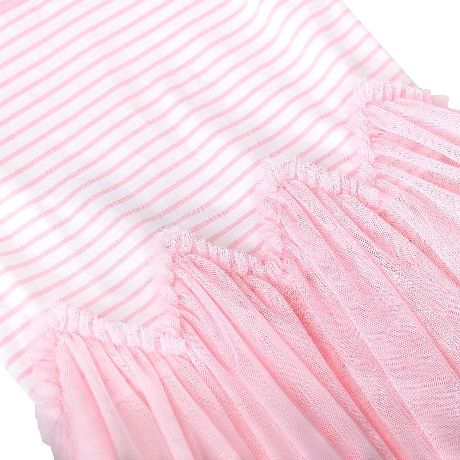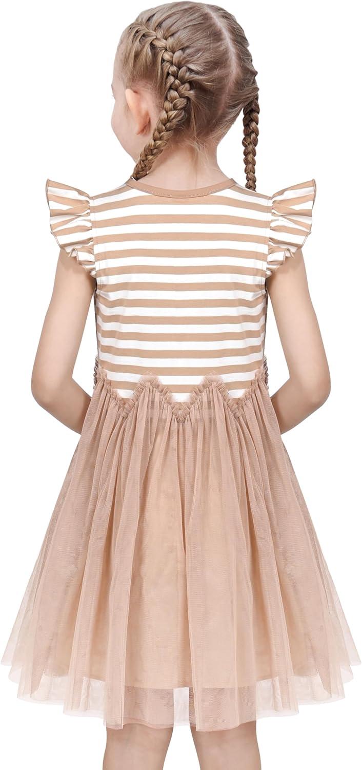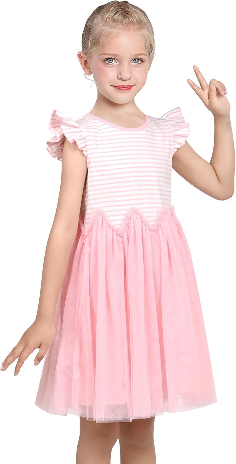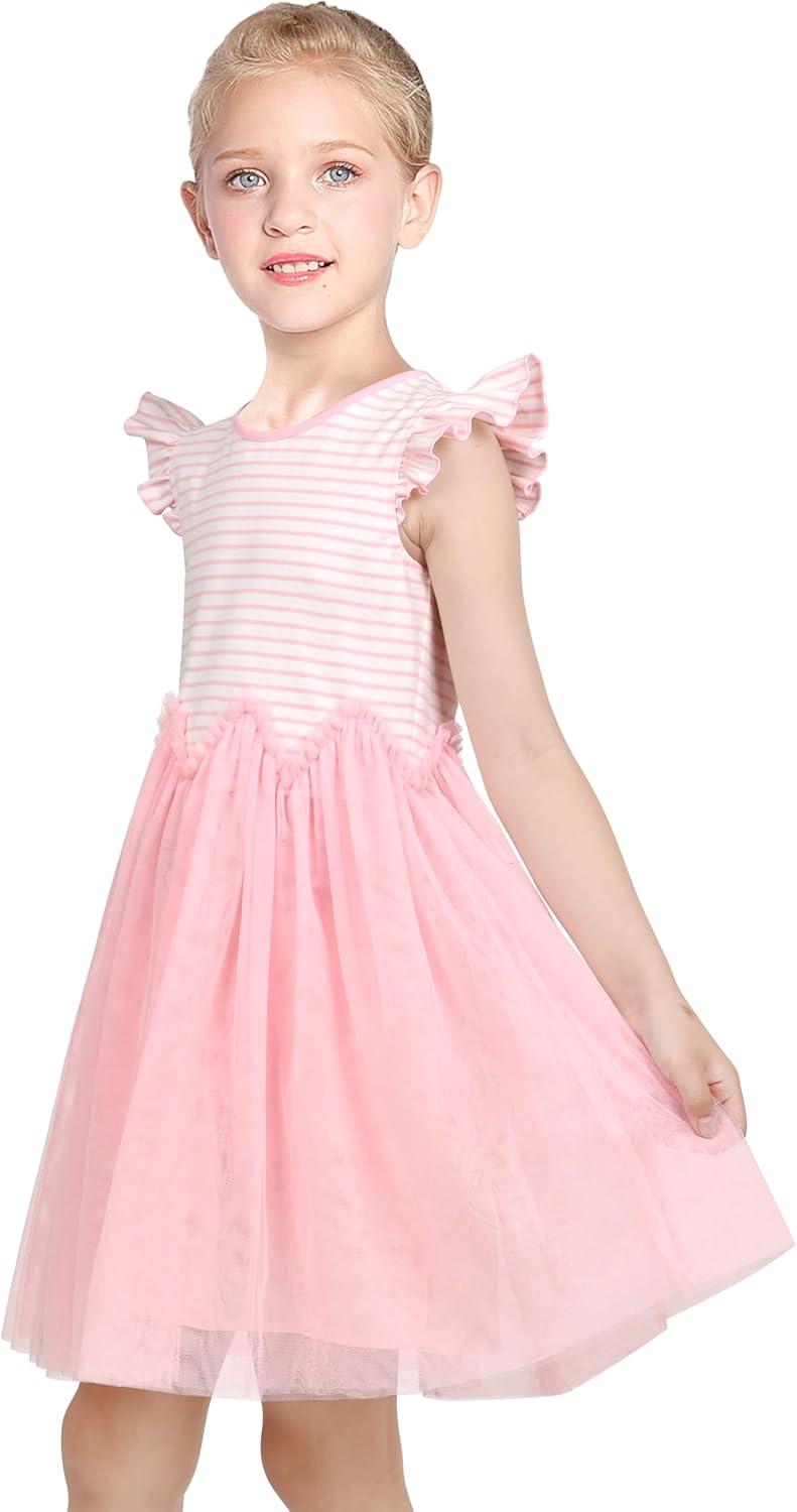 - Sunny Fashion Girls Dress Pink Sequin Wedding Hi-Low Tulle Skirt Tutu Flutter Sleeve(Light Pink Striped)