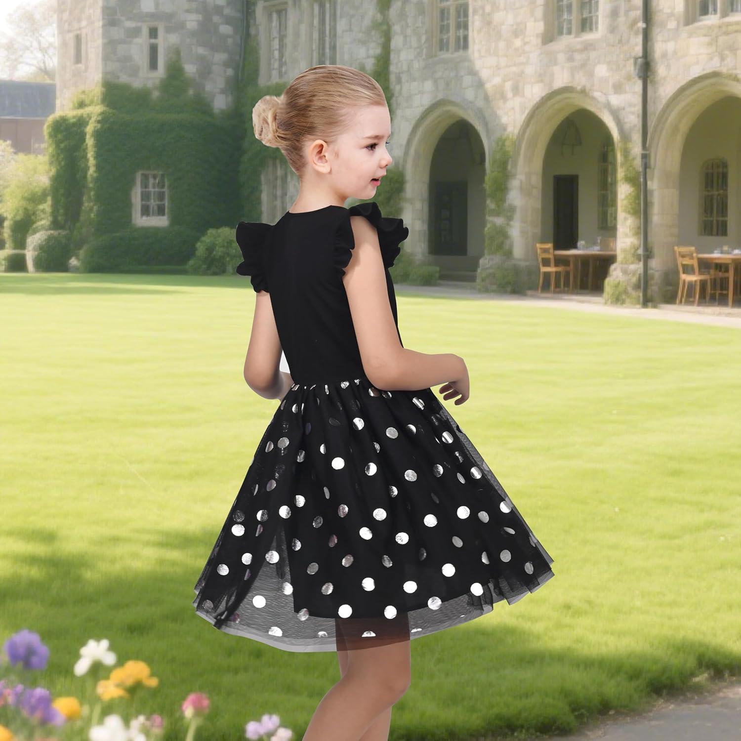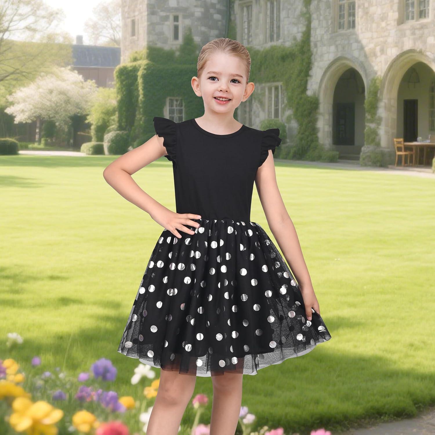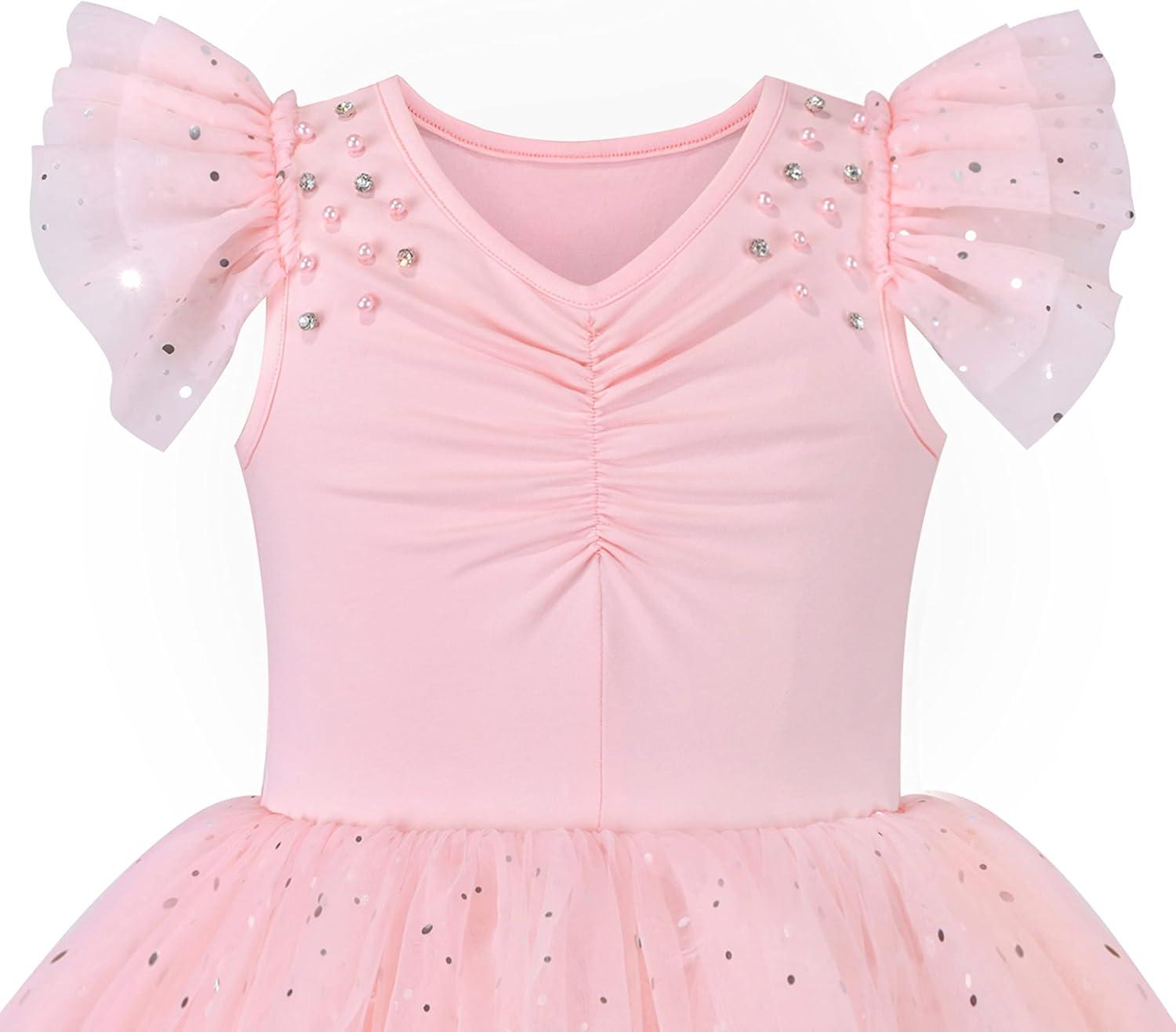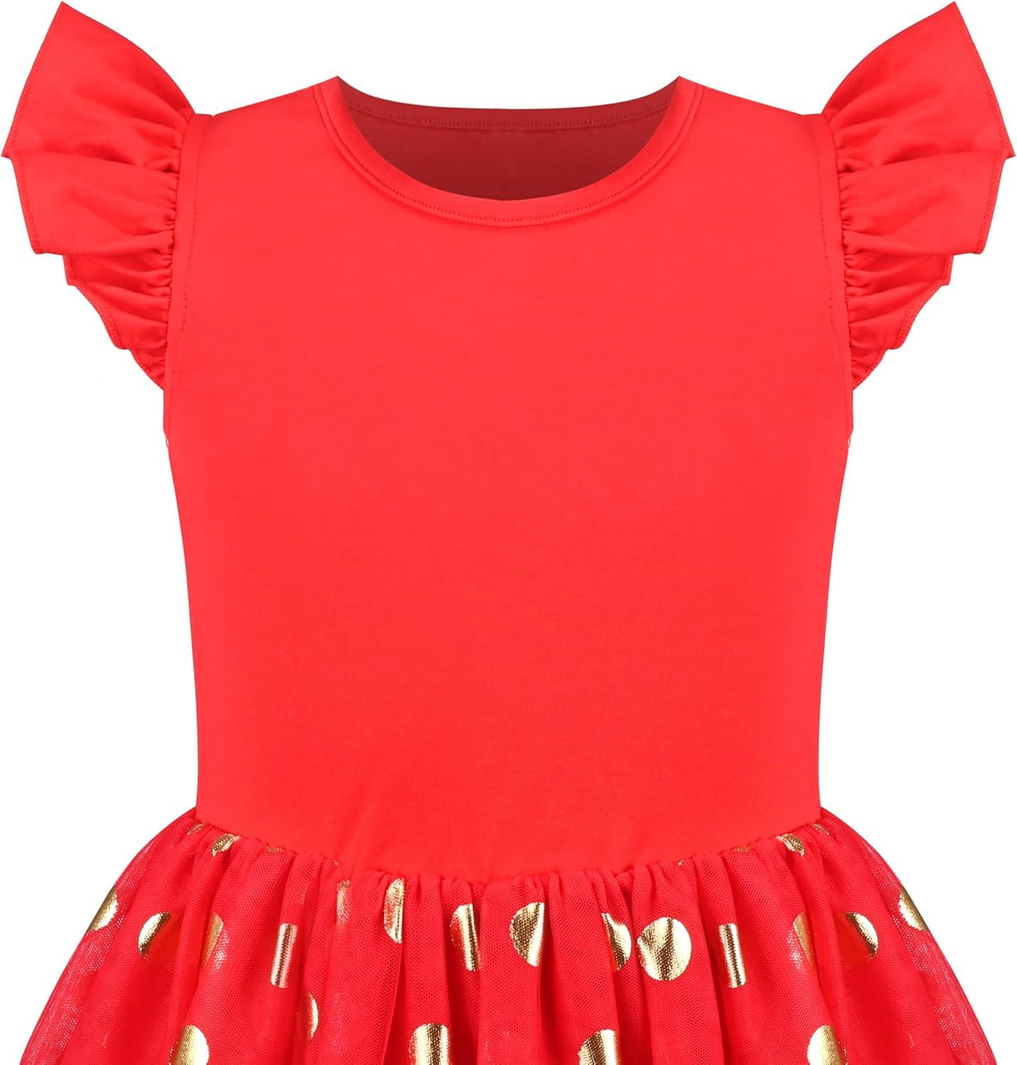 - Sunny Fashion Girls Dress Pink Sequin Wedding Hi-Low Tulle Skirt Tutu Flutter Sleeve(Red Dot)