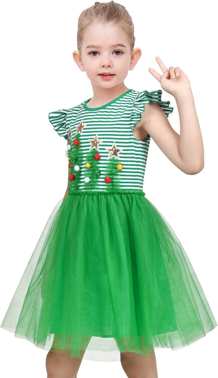 - Sunny Fashion Girls Dress Unicorn Rainbow Long Sleeve Casual Dress Size 3-8(Green Christmas)