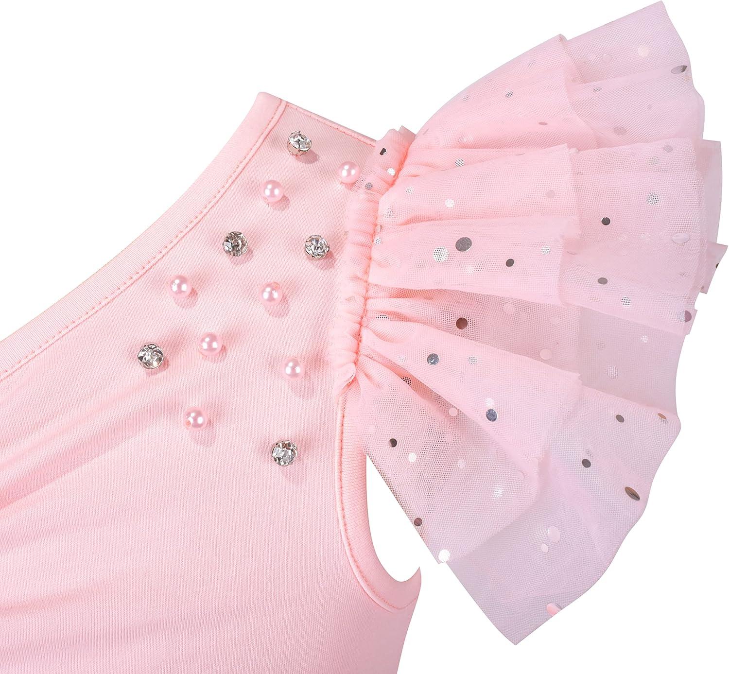 - Sunny Fashion Girl Dress Pink Tulle Sequin Unicorn Star Moon Party Ruffle(Pink)
