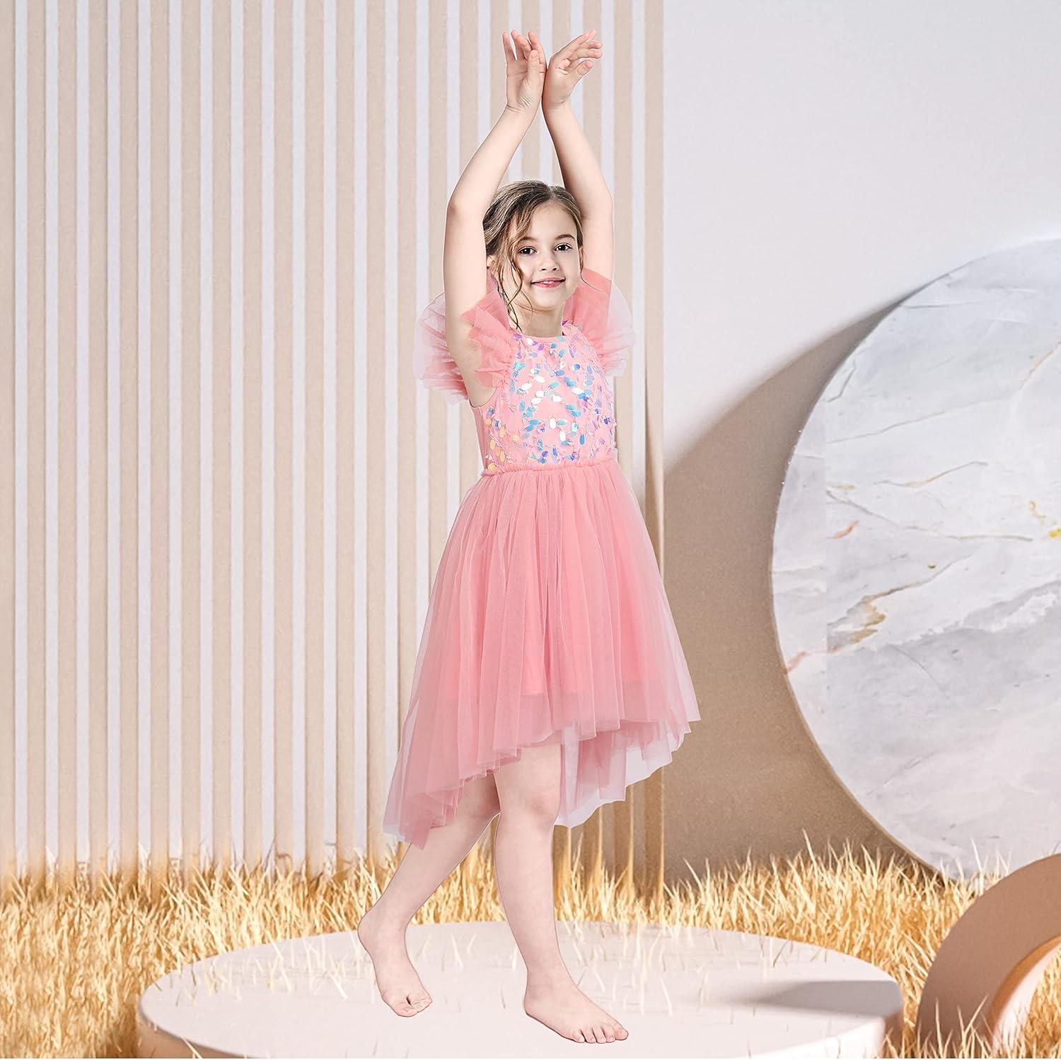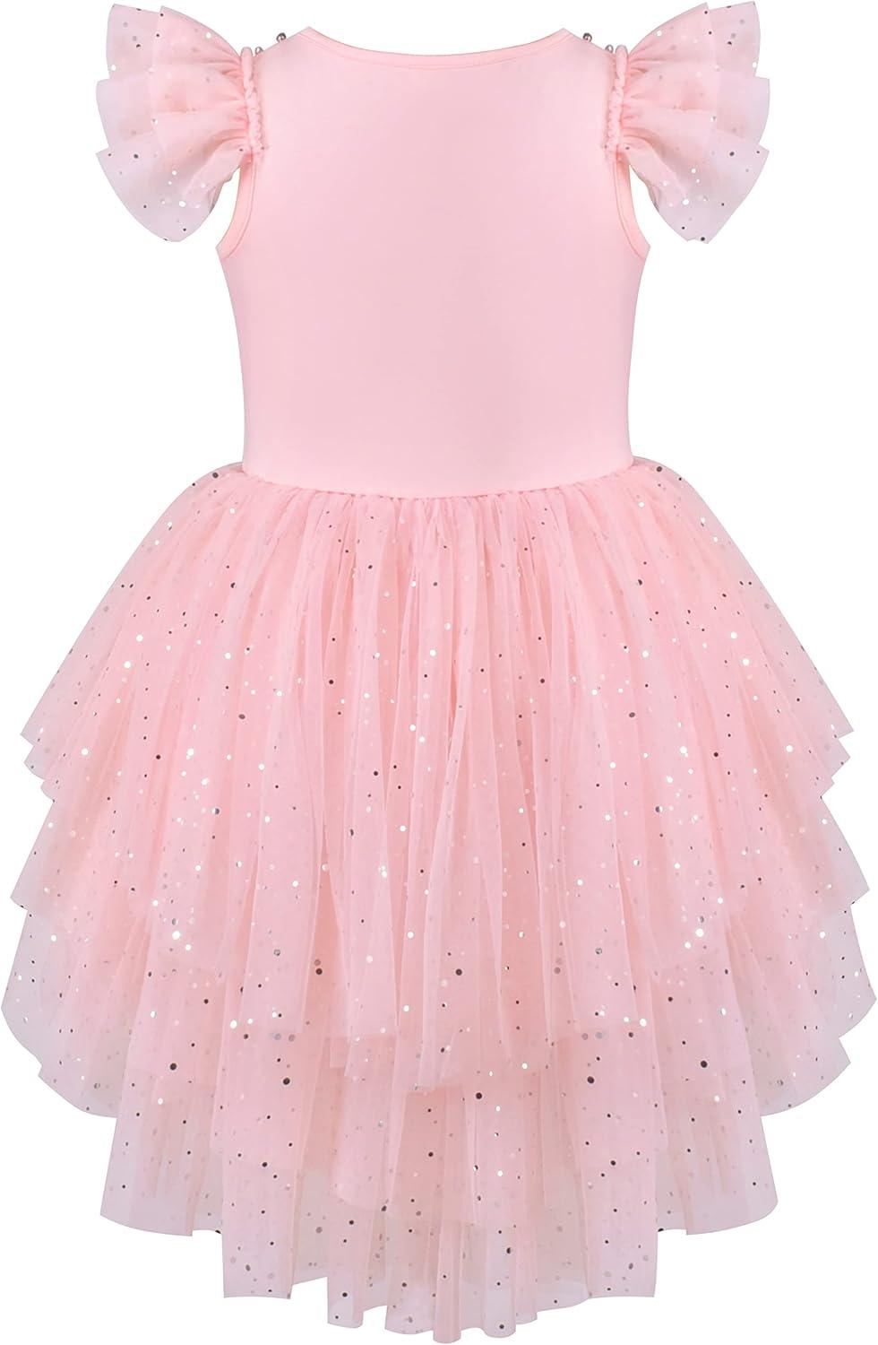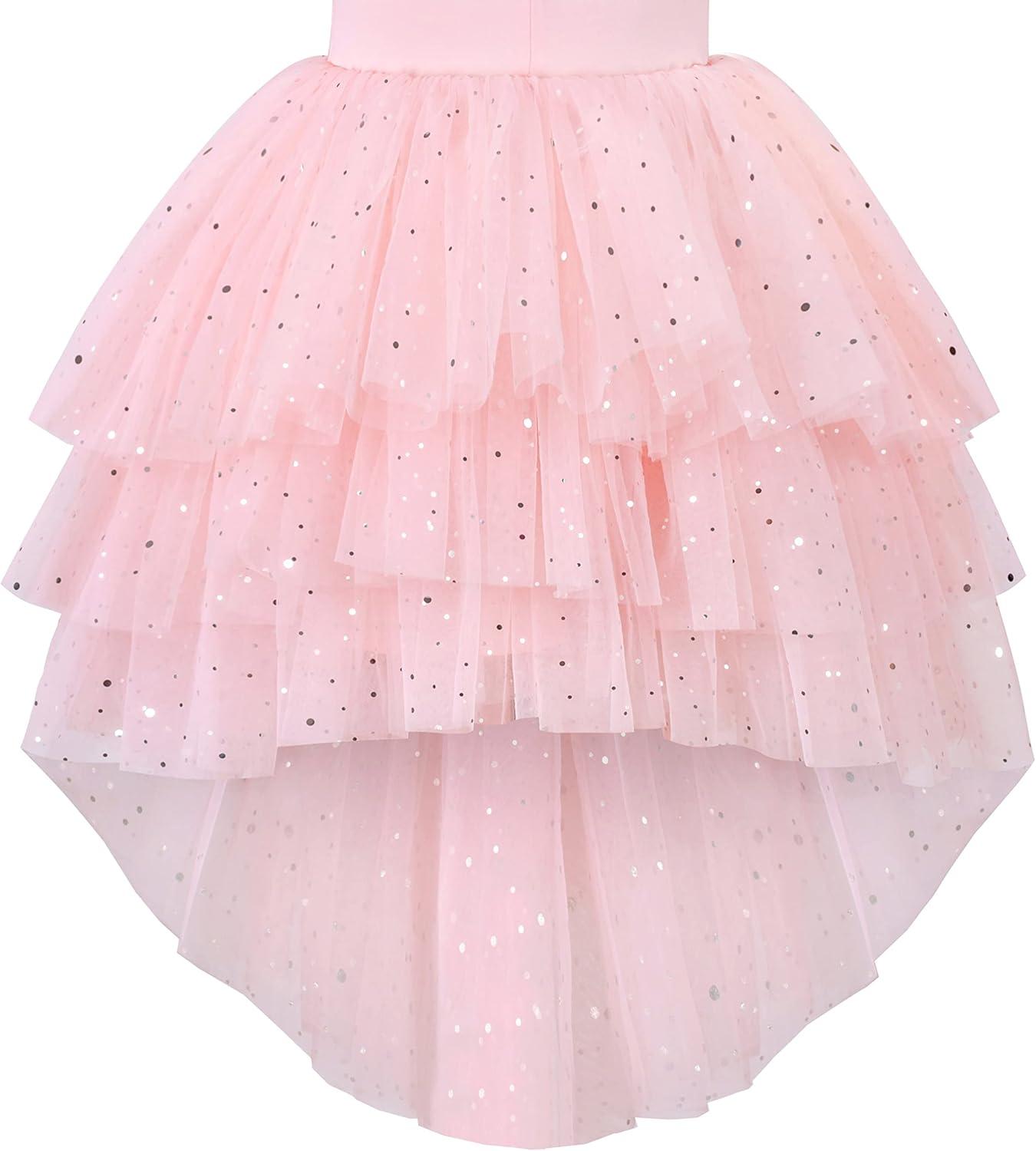 - Sunny Fashion Girls Dress Pink Sequin Wedding Hi-Low Tulle Skirt Tutu Flutter Sleeve(Light Pink)