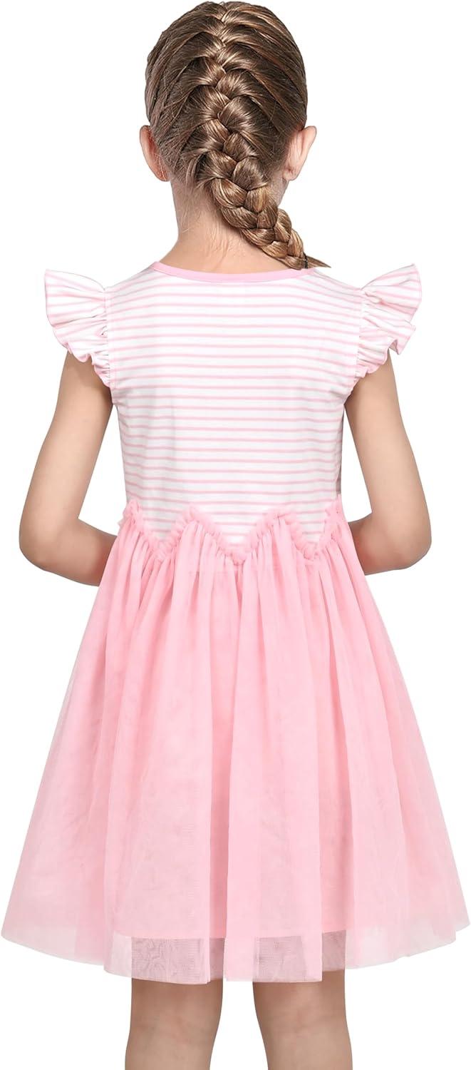 - Sunny Fashion Girls Dress Purple Sunflower Green Leaves Butterfly Size 4-12(Pink Striped)