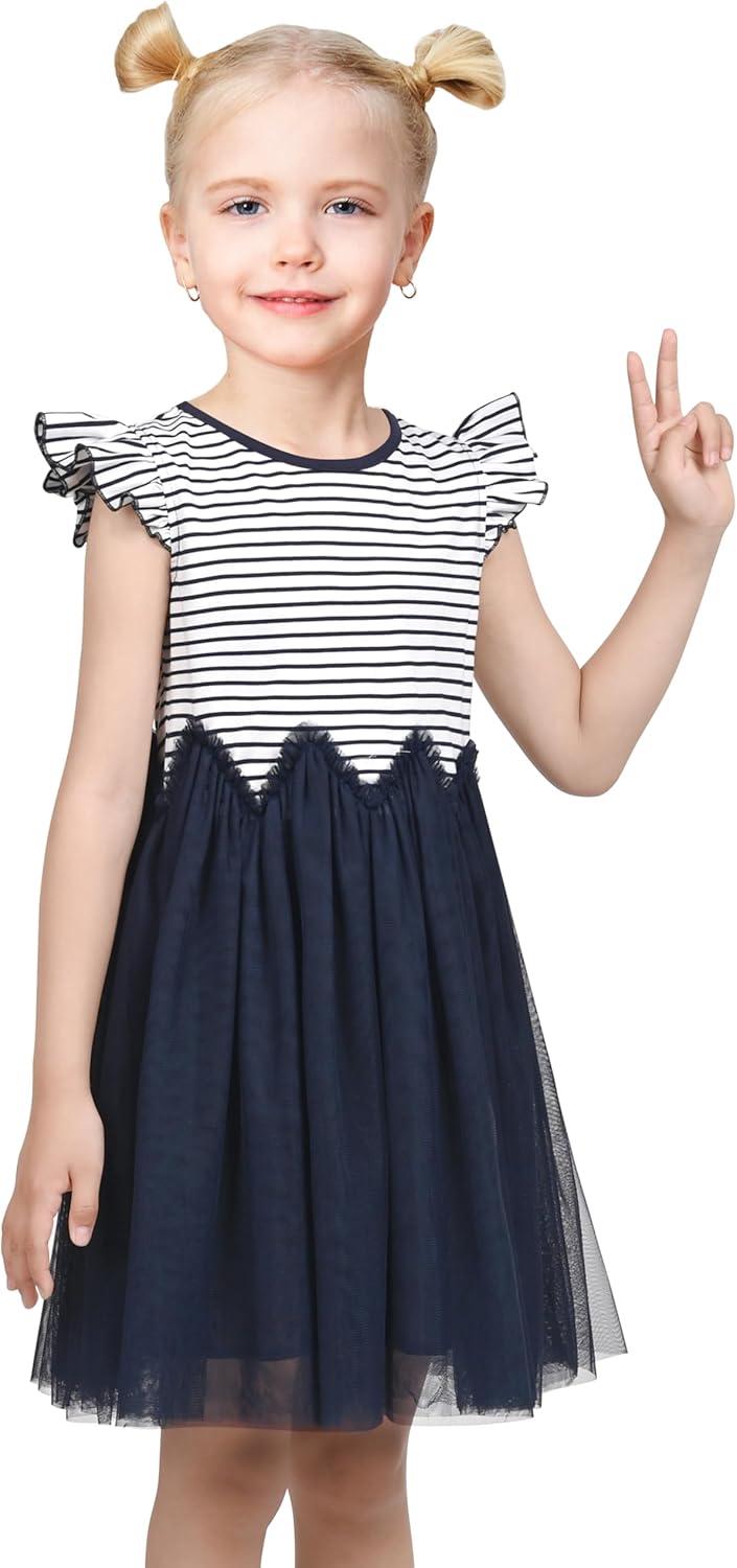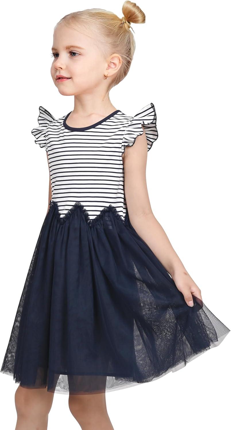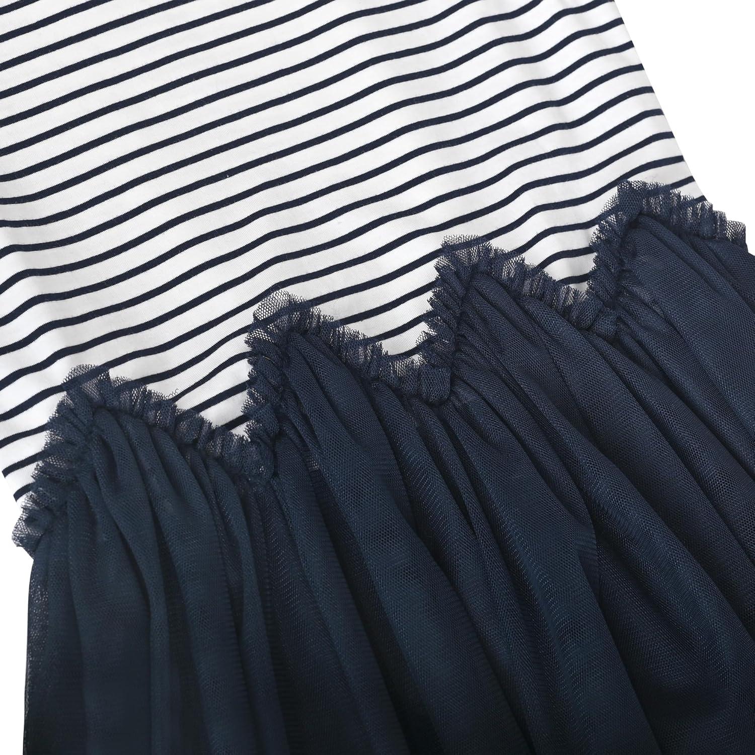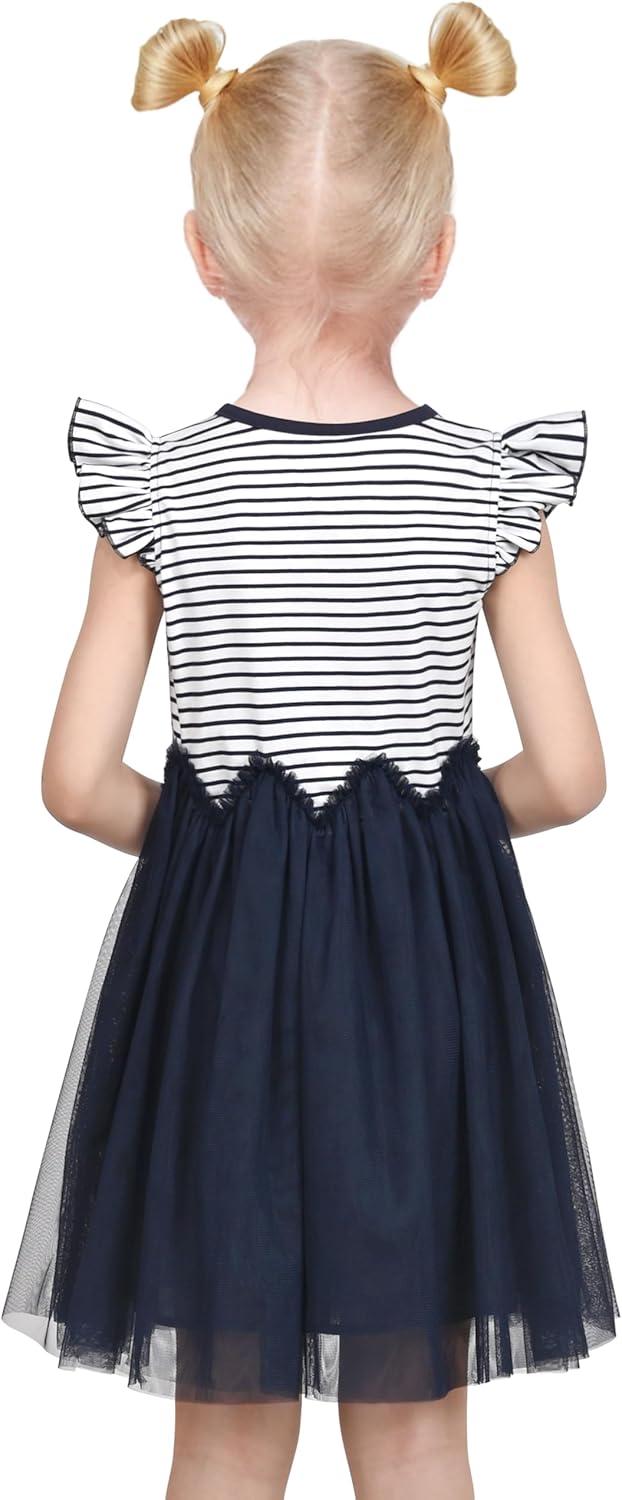 - Sunny Fashion Girls Dress Pink Sequin Wedding Hi-Low Tulle Skirt Tutu Flutter Sleeve(Navy Blue Striped)