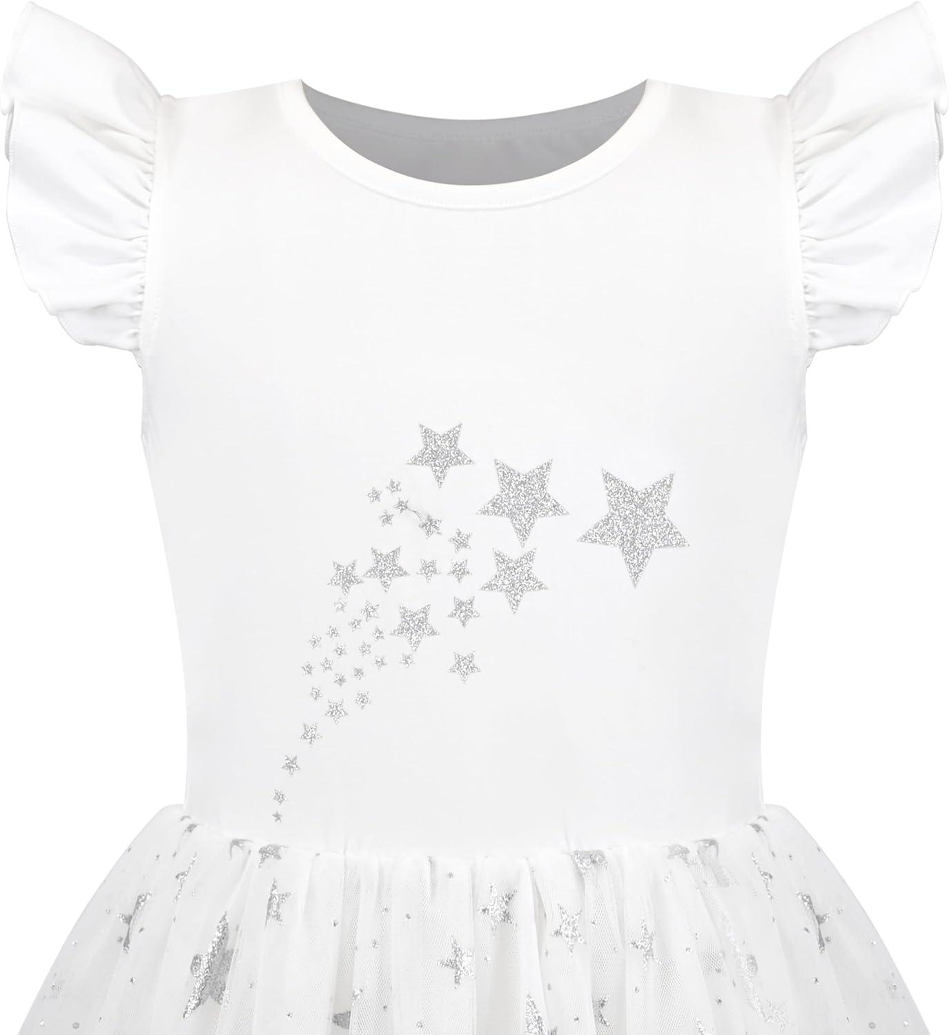 - Sunny Fashion Girls Dress Pink Sequin Wedding Hi-Low Tulle Skirt Tutu Flutter Sleeve(White Star)