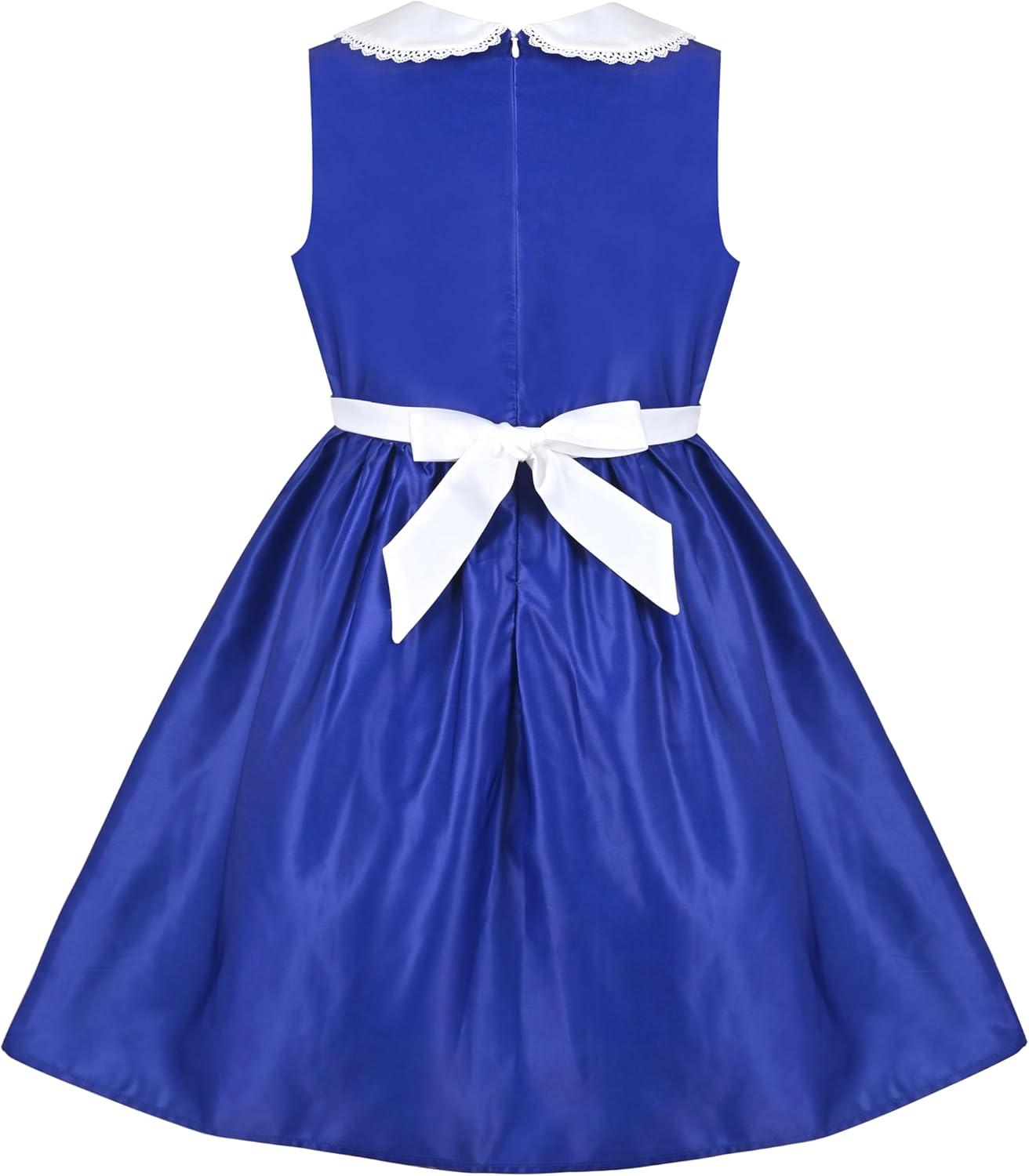- Sunny Fashion Girls Dress Rose Flower Double Bow Tie Party Sundress(Blue Unicorn)