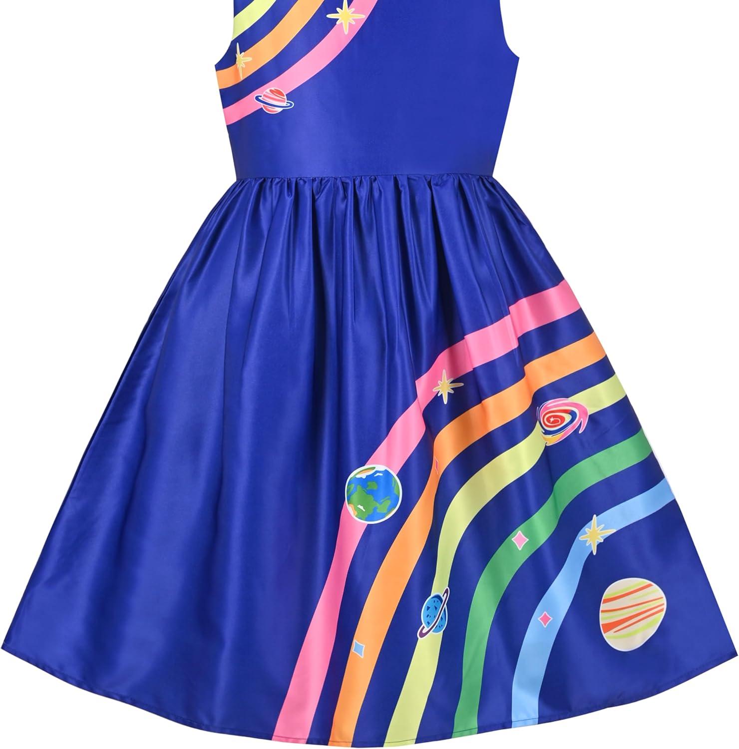 - Sunny Fashion Girls Dress Purple Sunflower Green Leaves Butterfly Size 4-12(Blue Solar System)