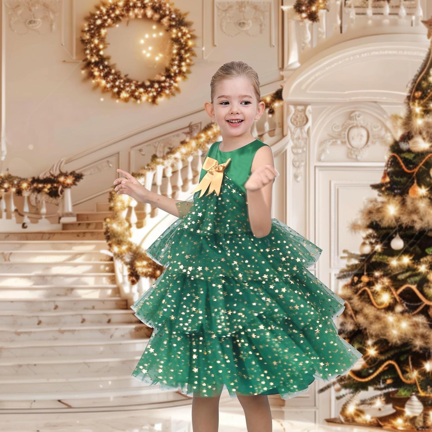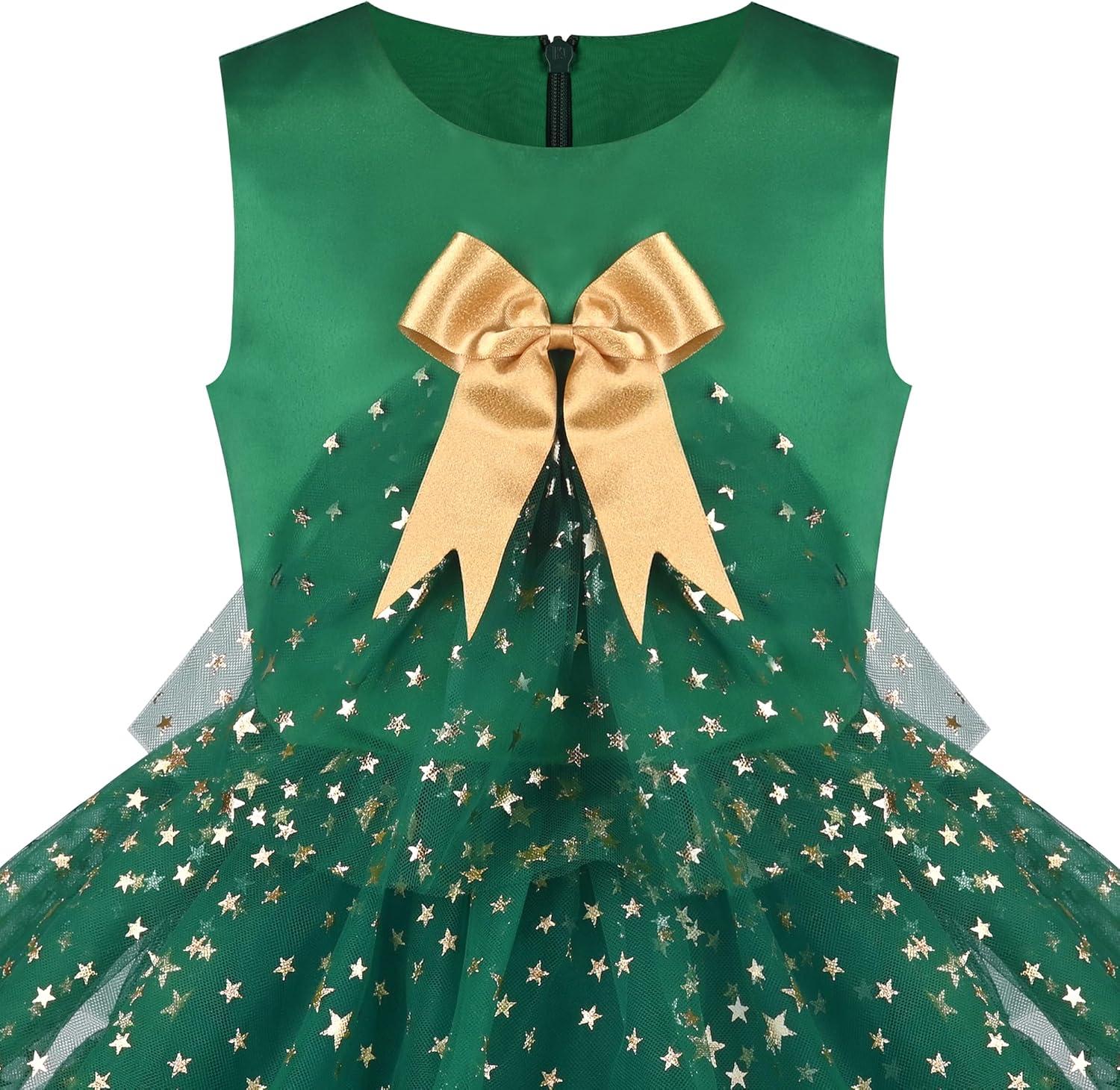 Sunny Fashion Girls Dress Birthday Princess Ruffle Dress Cake Balloon Print(Green Xmas)