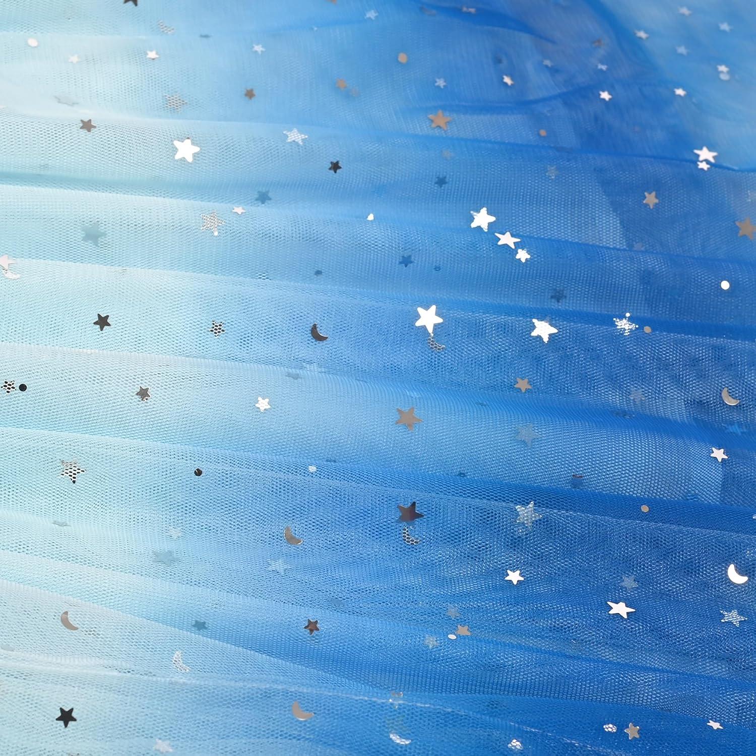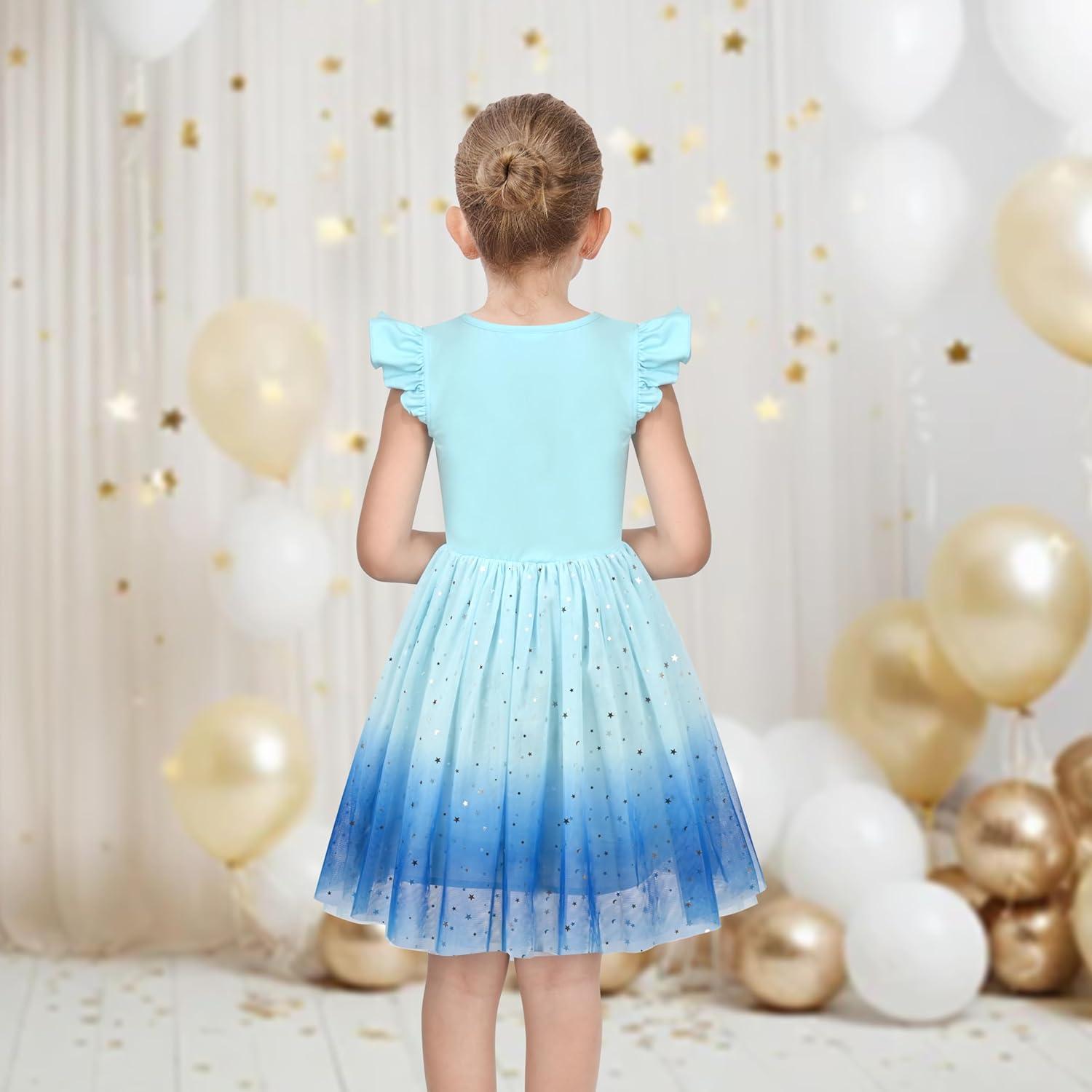 Sunny Fashion Girls Dress Pink Sequin Wedding Hi-Low Tulle Skirt Tutu Flutter Sleeve(Blue Gradient)