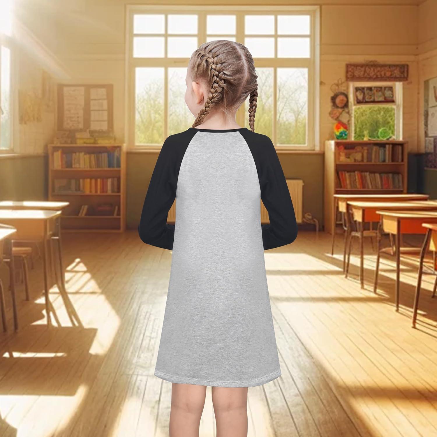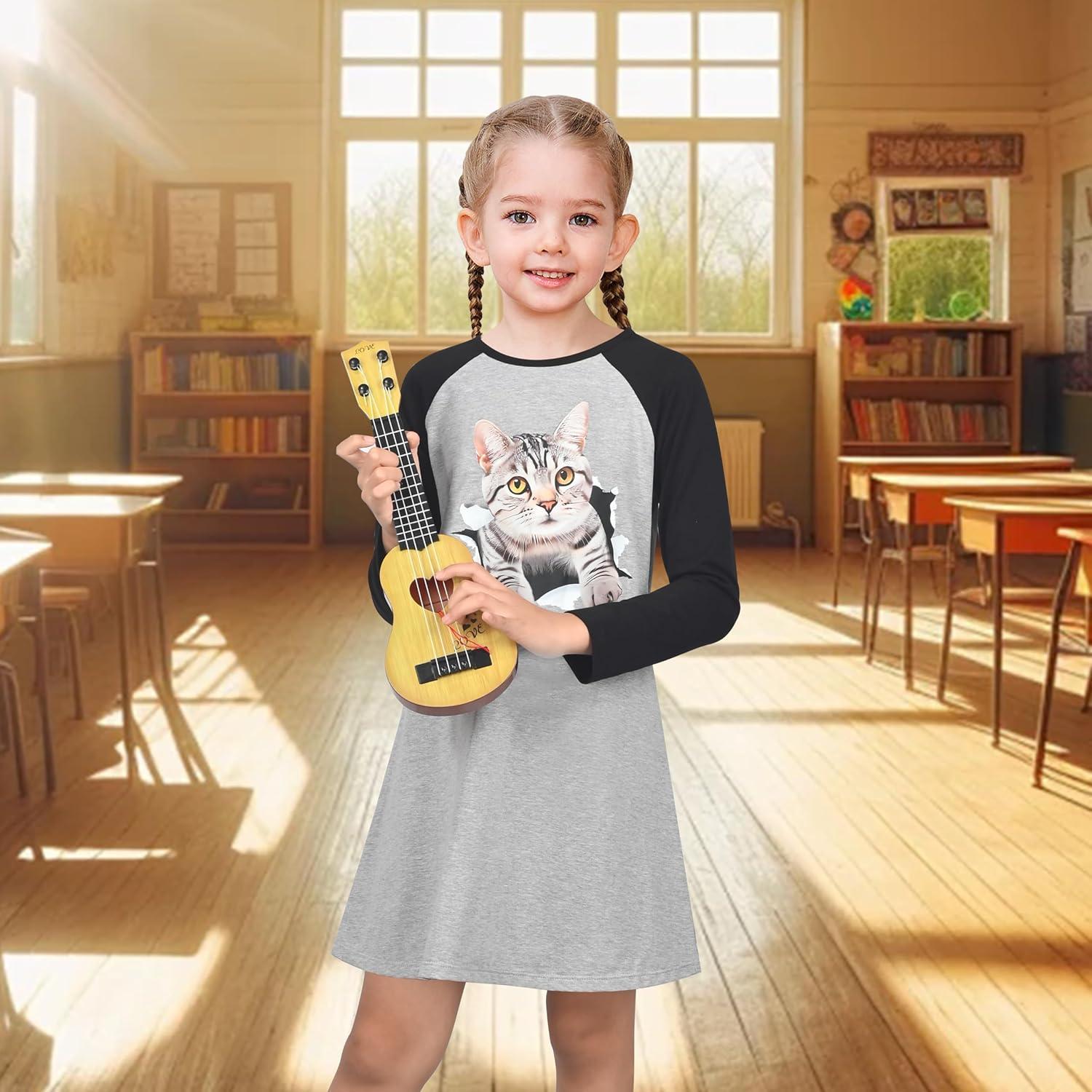 Sunny Fashion Girls Dress Long Sleeve Butterfly Color Contrast Casual Wearing(Gray Cat)