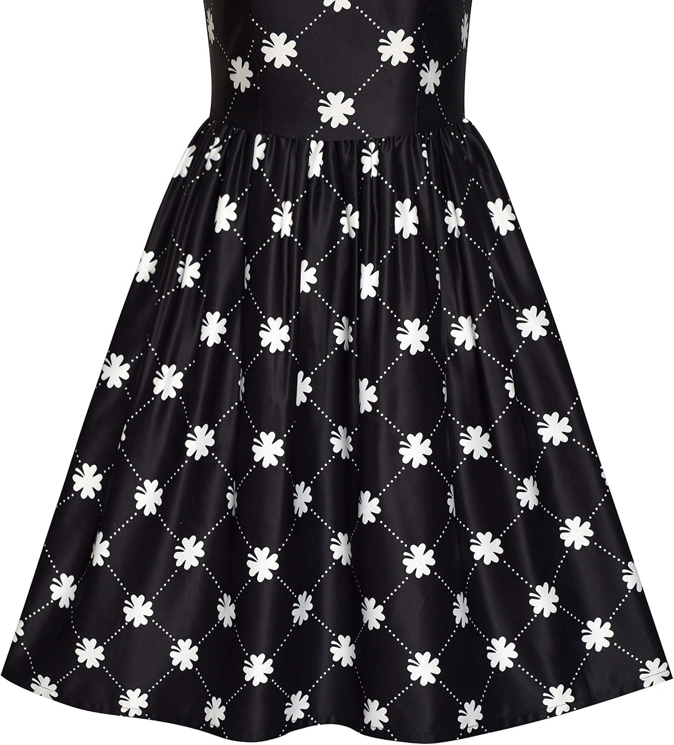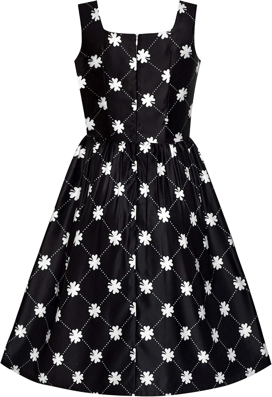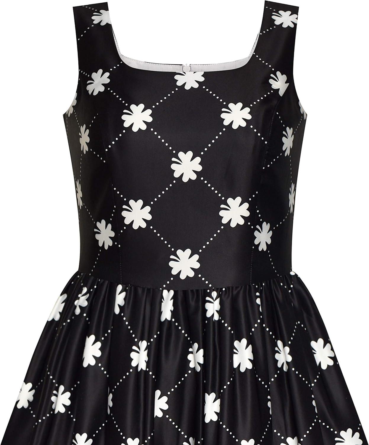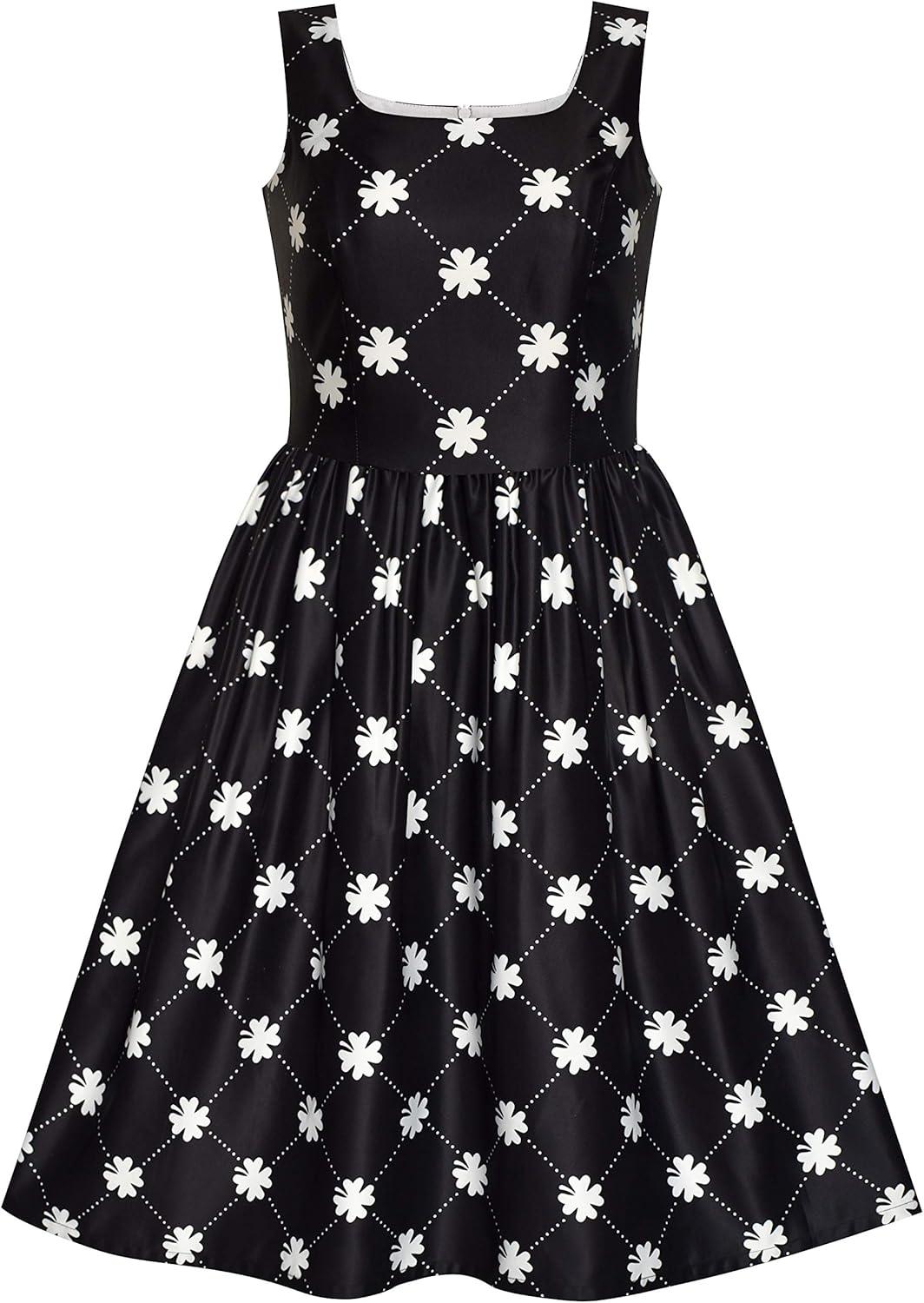 - Sunny Fashion Women Clover Pattern Black Swing Casual Party Midi Tea Dress(Black)