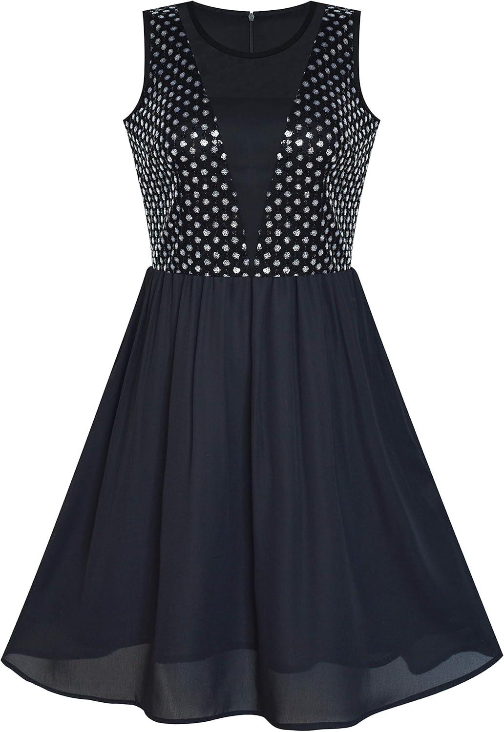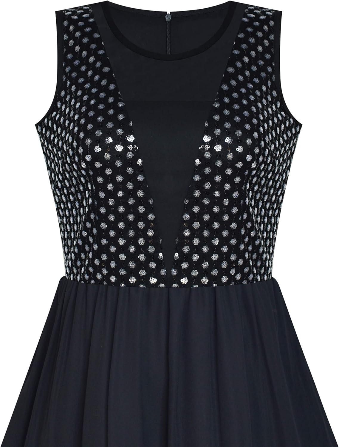 - Sunny Fashion Women Sleeveless Sequin Sexy Chiffon Black Party Dress Size S-L(Black)