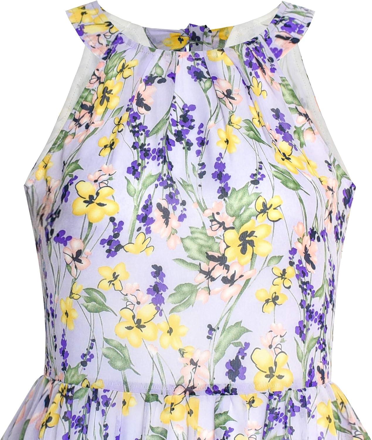 - Sunny Fashion Women’s Halter Purple Floral Printed Maxi Casual Party Dress(Purple)