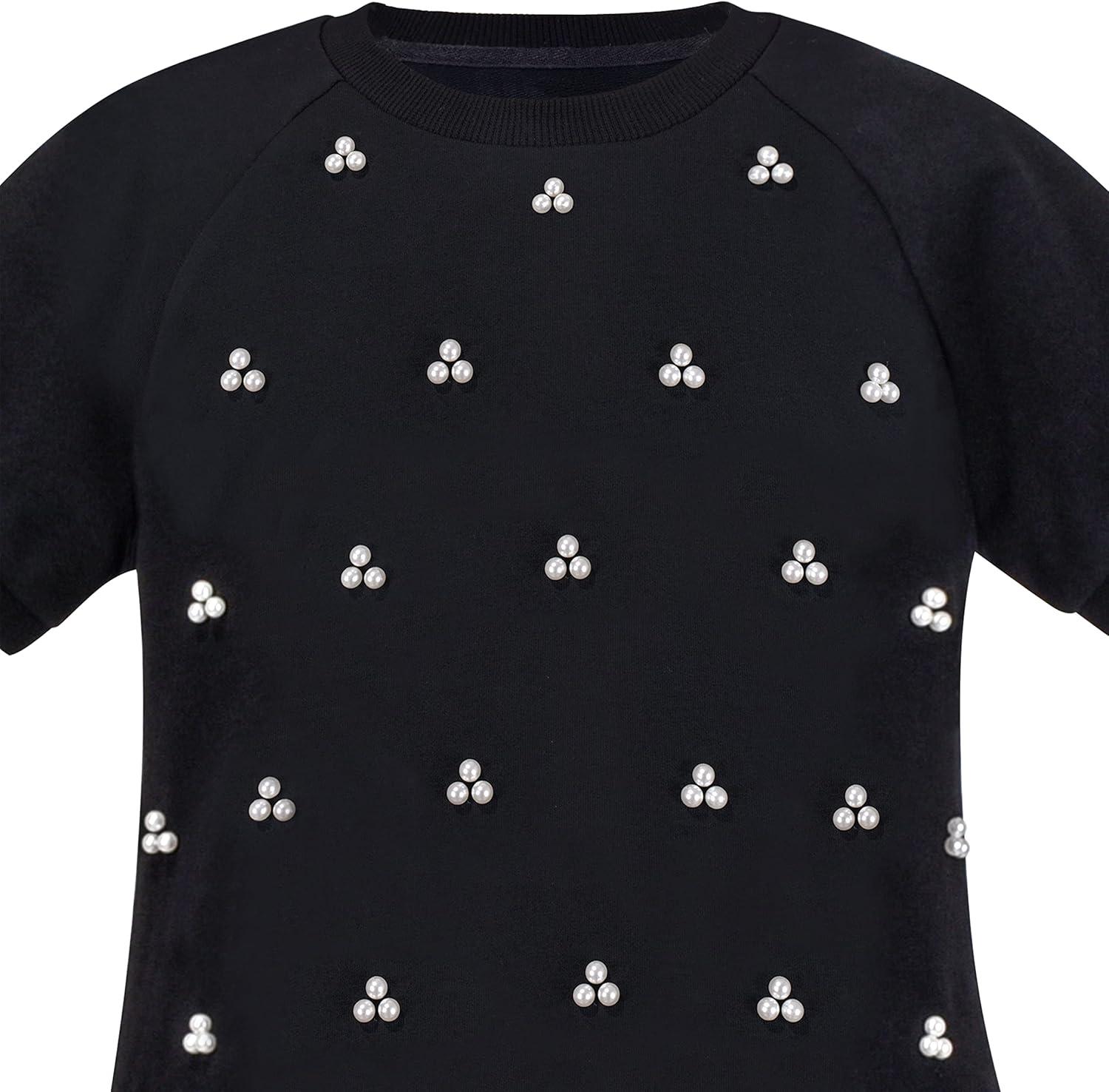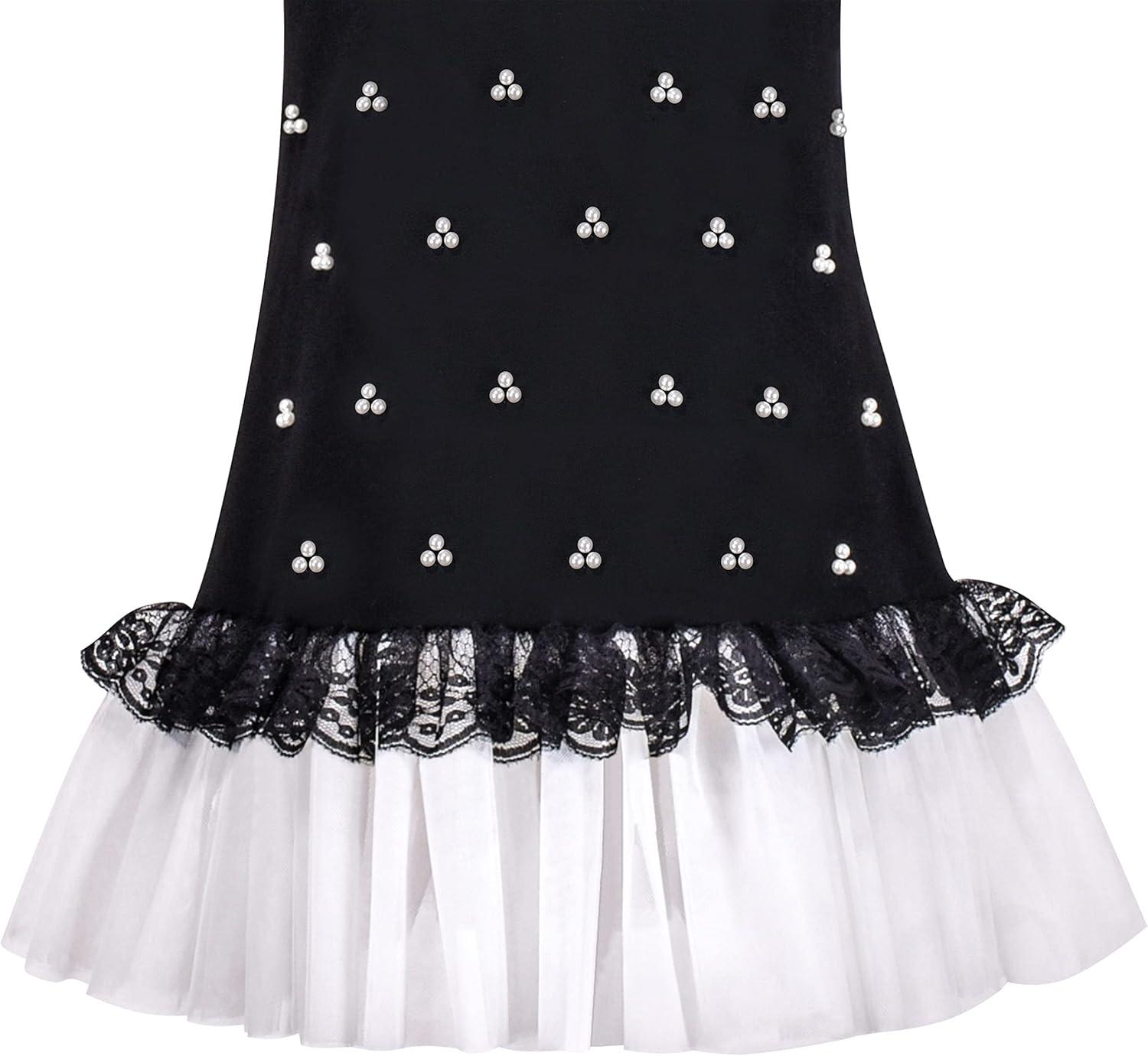 Sunny Fashion Girls Black Tee Dress Pearl Lace White Mini Tulle Casual Size 5-10(Black)