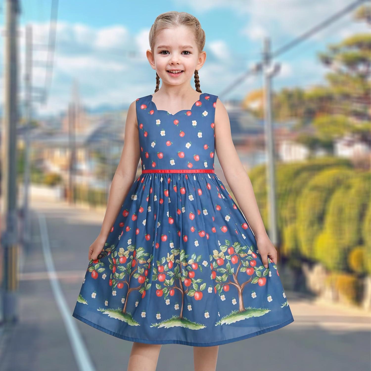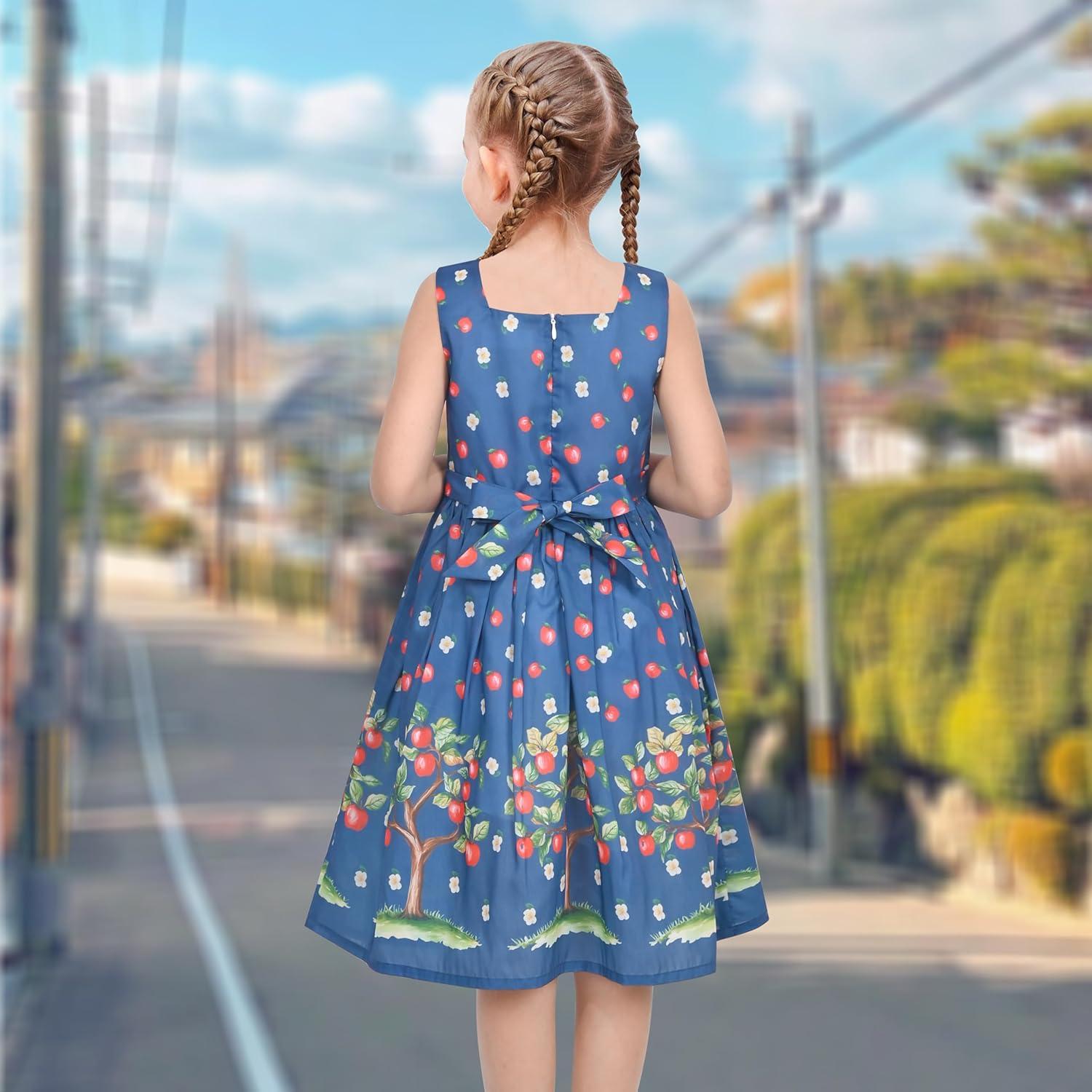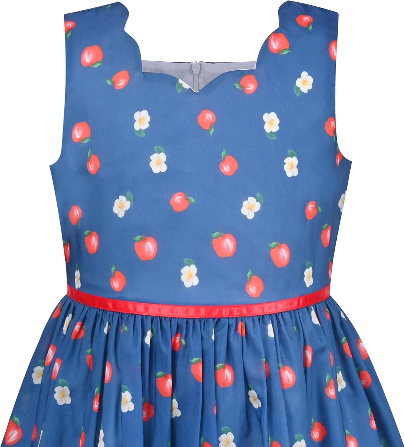 Sunny Fashion Girls Dress Green Strawberry Floral Zigzag Cute Sleeveless Casual Holiday Size 4-12(Blue Apple Tree)