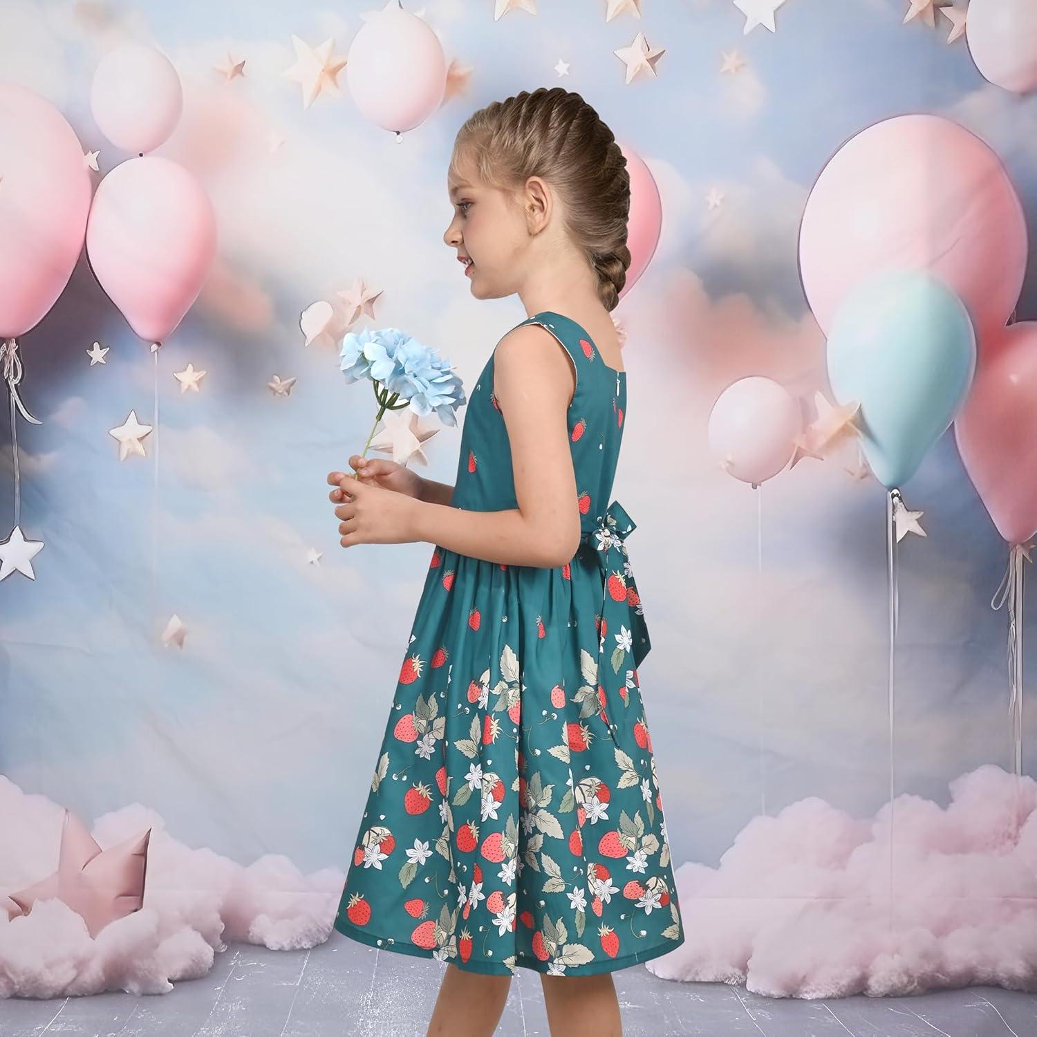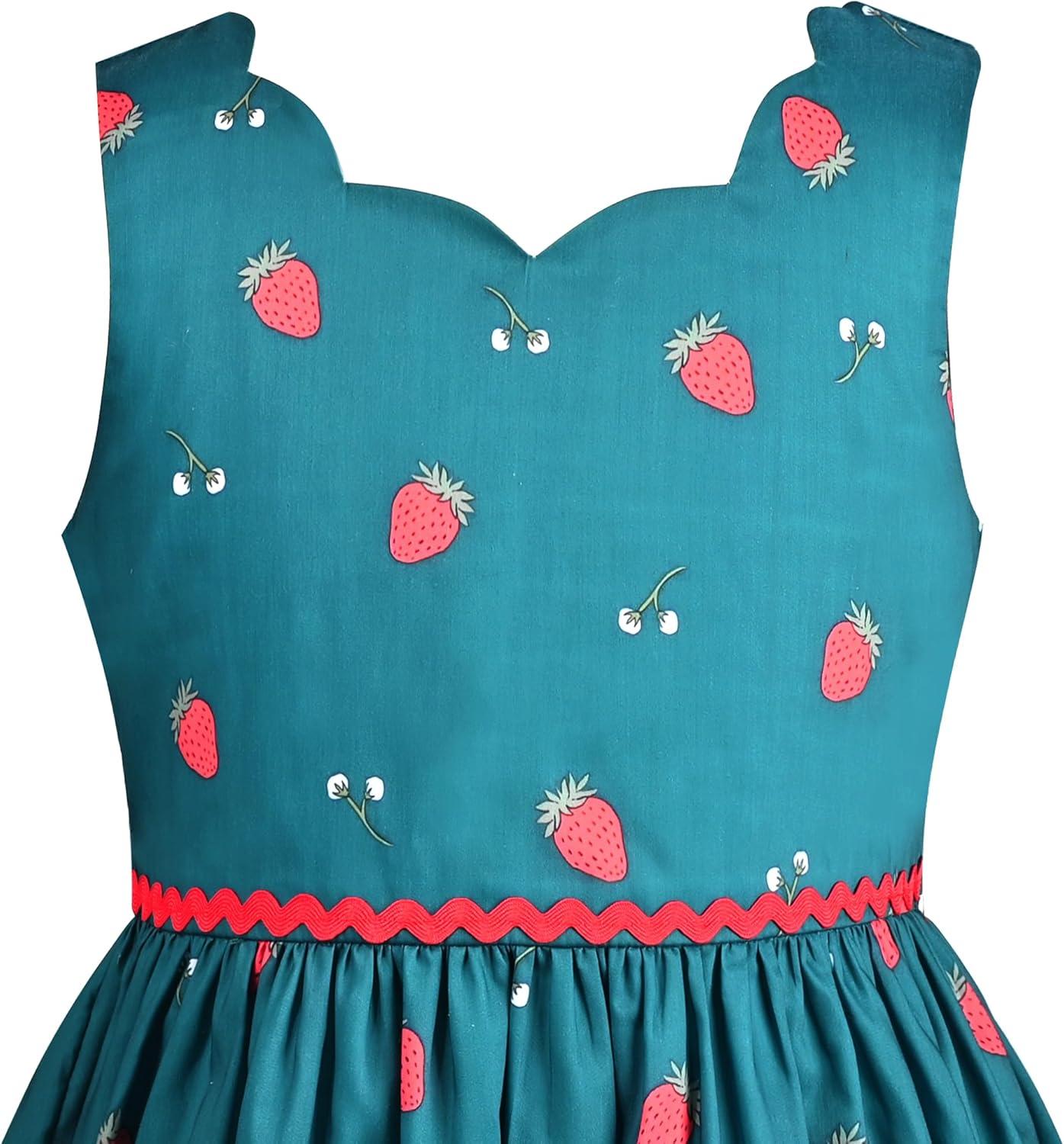 Sunny Fashion Girls Dress Green Strawberry Floral Zigzag Cute Sleeveless Casual Holiday Size 4-12(Green)