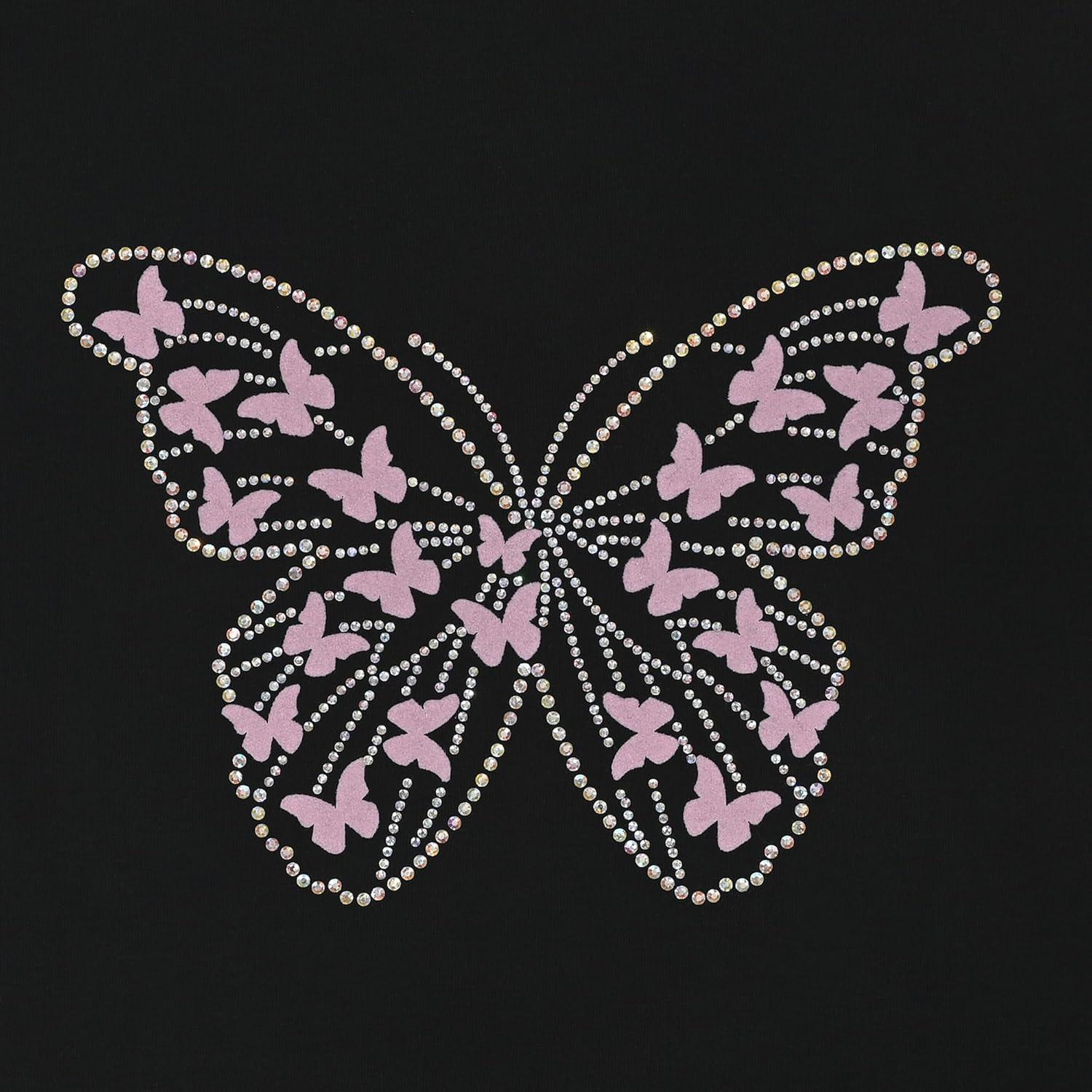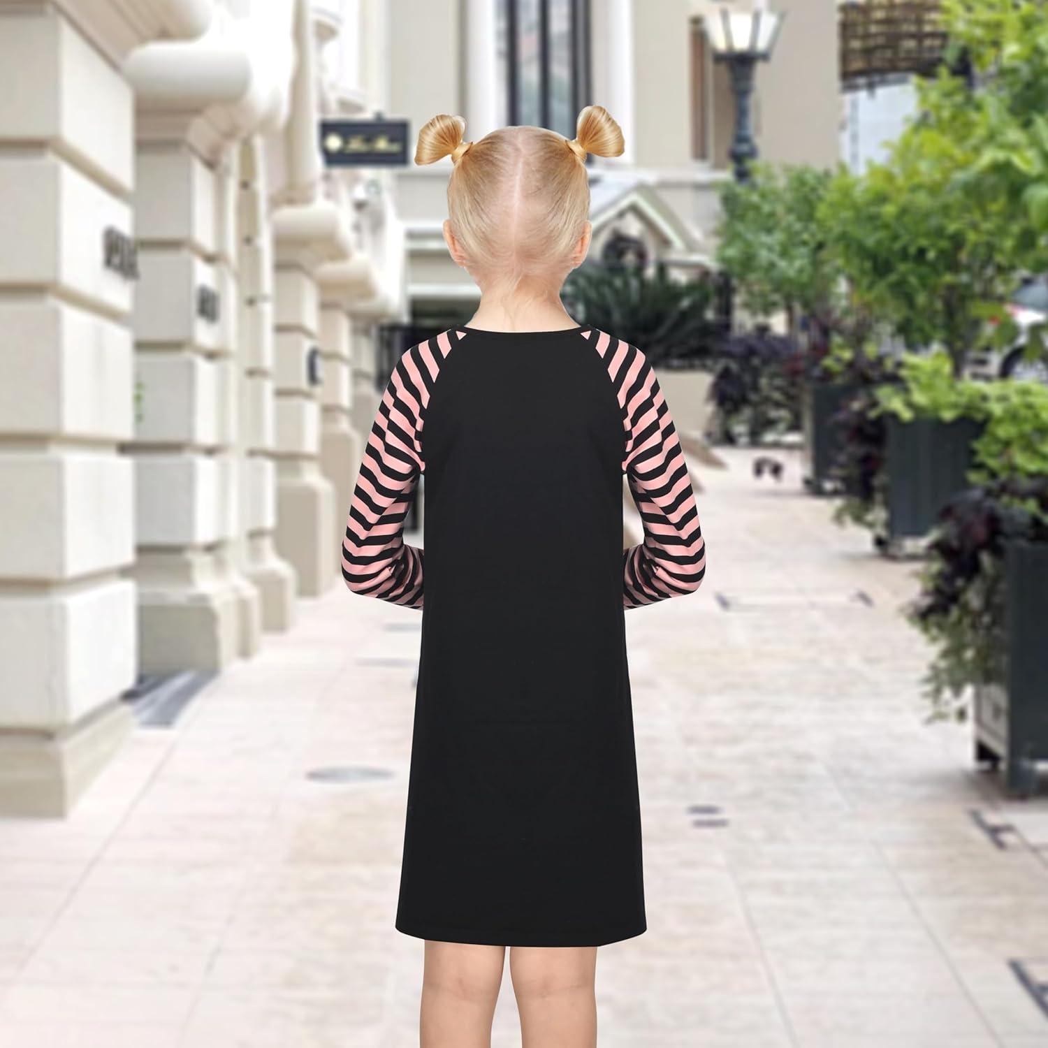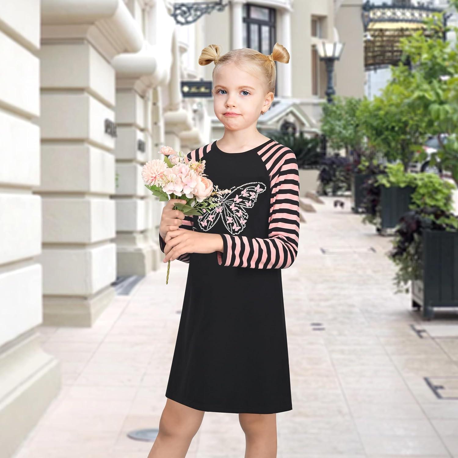 Sunny Fashion Girls Dress Long Sleeve Butterfly Color Contrast Casual Wearing(Black Butterfly)