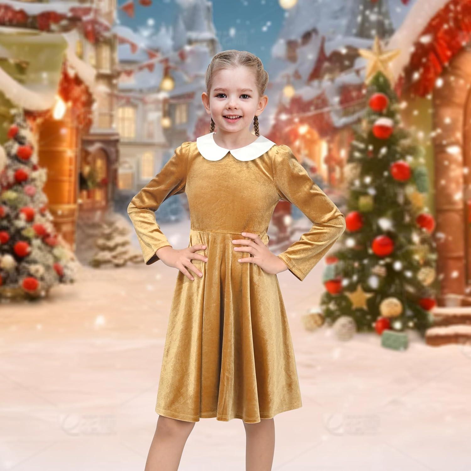 Sunny Fashion Girls Dress Glitter Golden Star White Collar Casual Warm Winter(Gold Velvet)