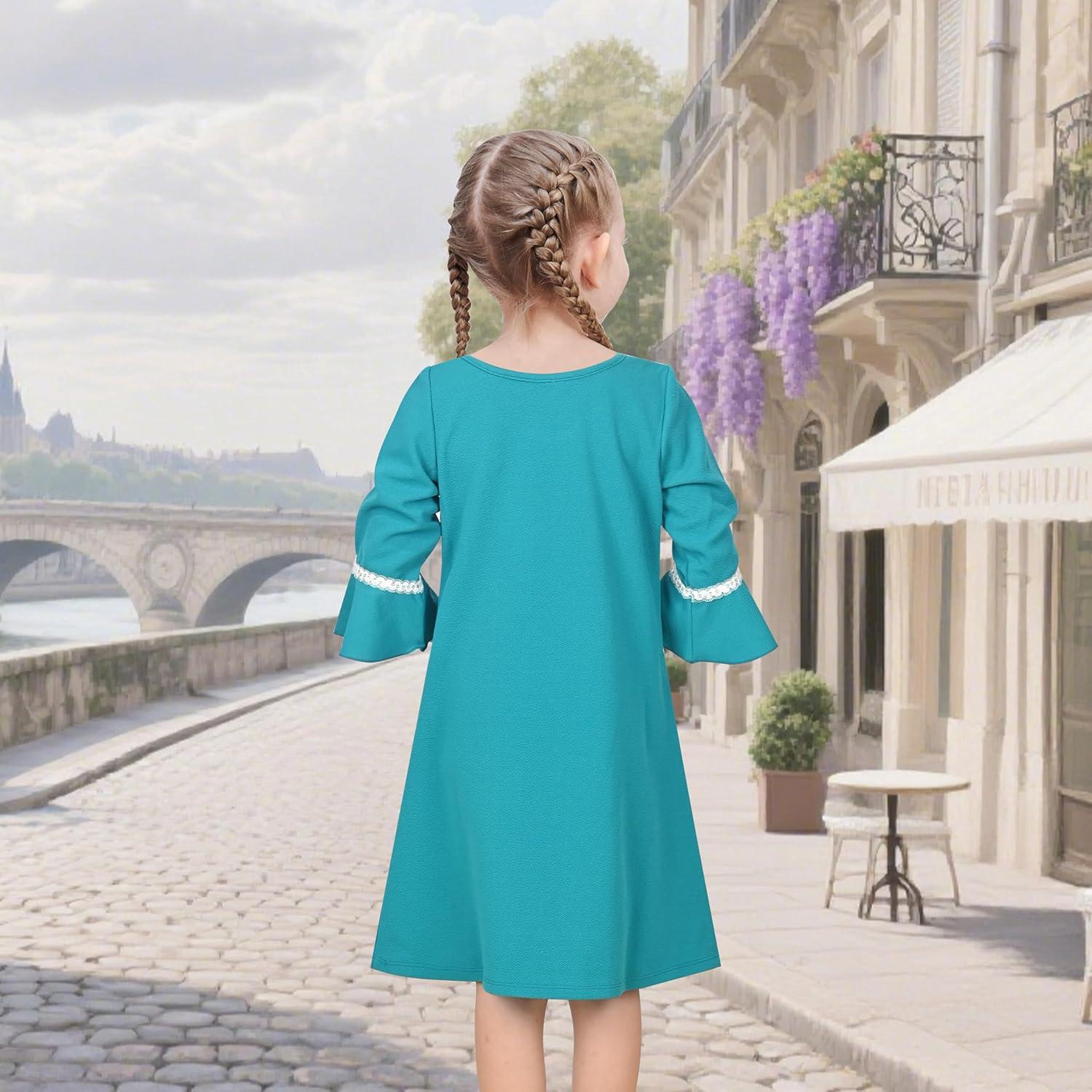 Sunny Fashion Girls Dress Long Sleeve Butterfly Color Contrast Casual Wearing(Blue Butterfly)