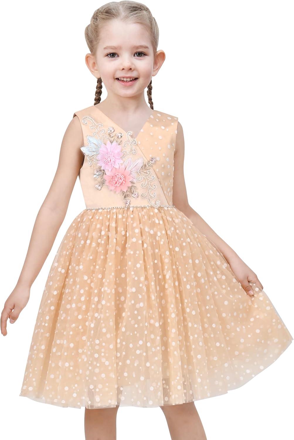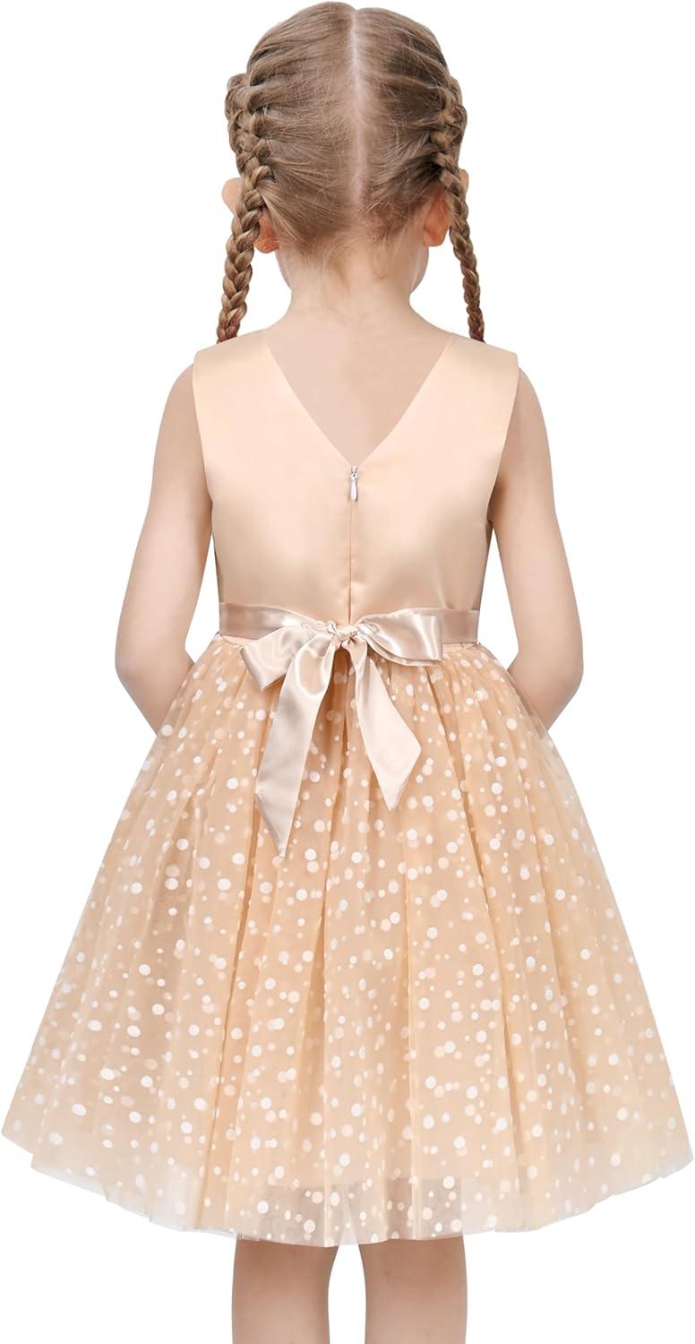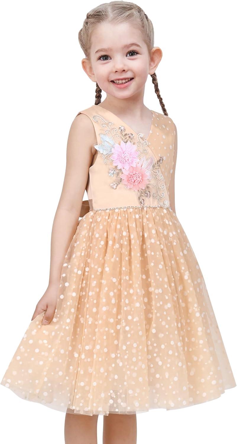 - Sunny Fashion Flower Girls Dress White Wedding Pageant Bridesmaid Gown Size 3-10(Beige V Neck)