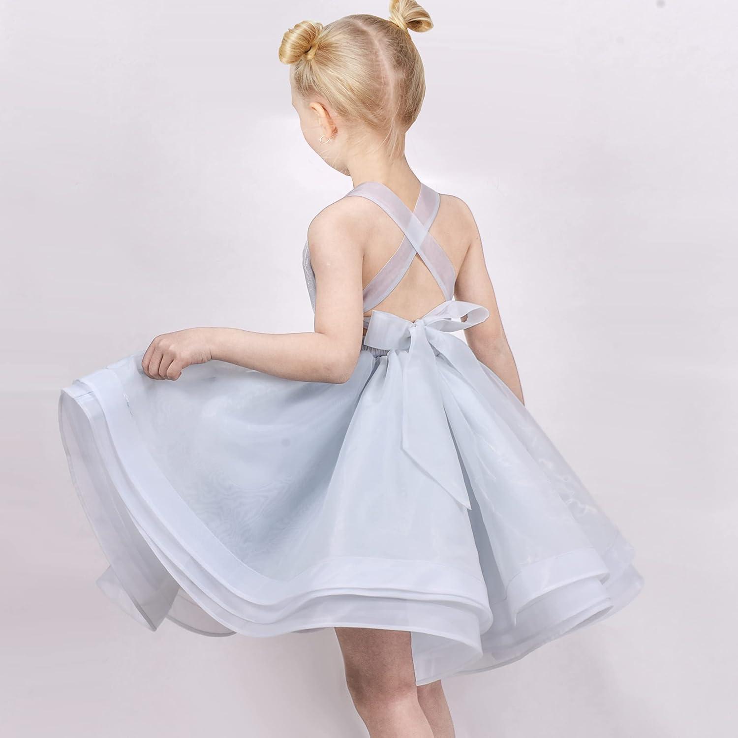 - Sunny Fashion Flower Girls Dress White Wedding Pageant Bridesmaid Gown Size 3-10(Blue Ashes)