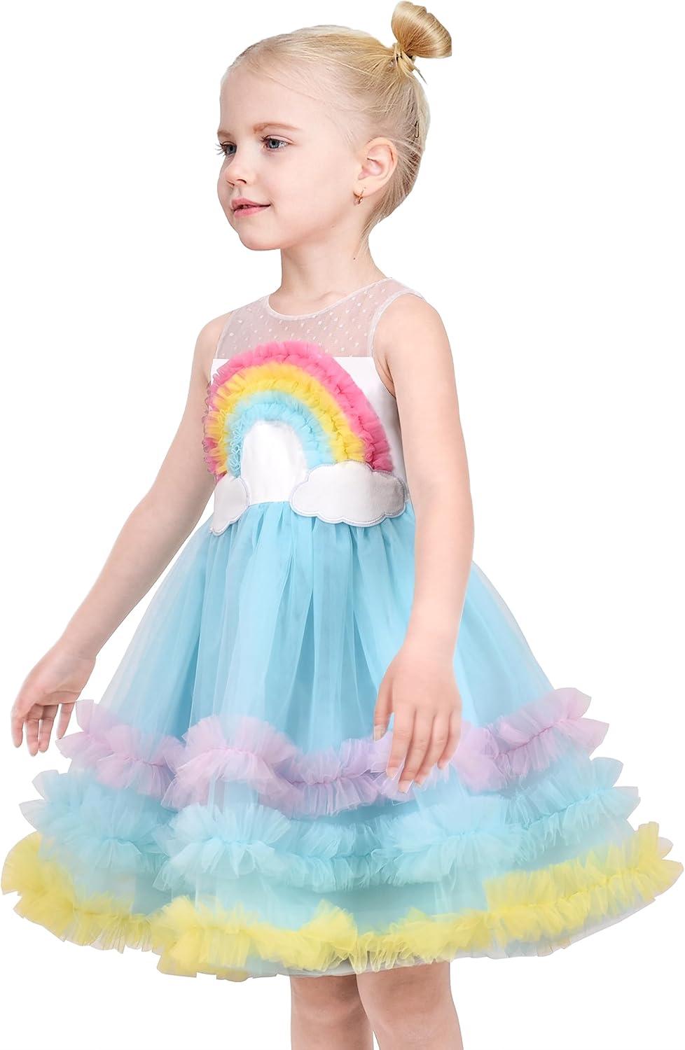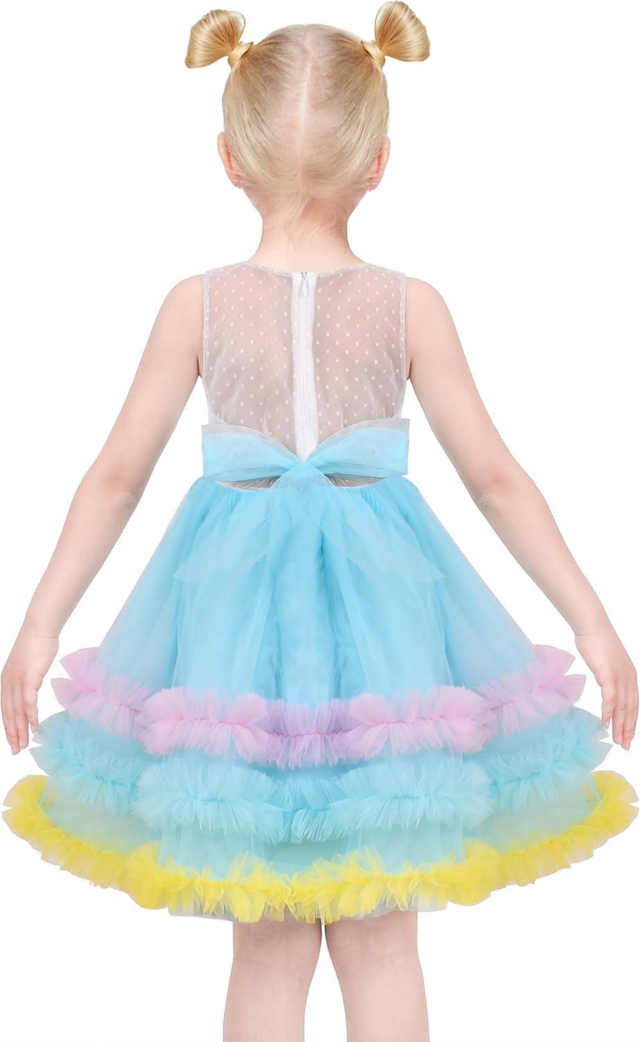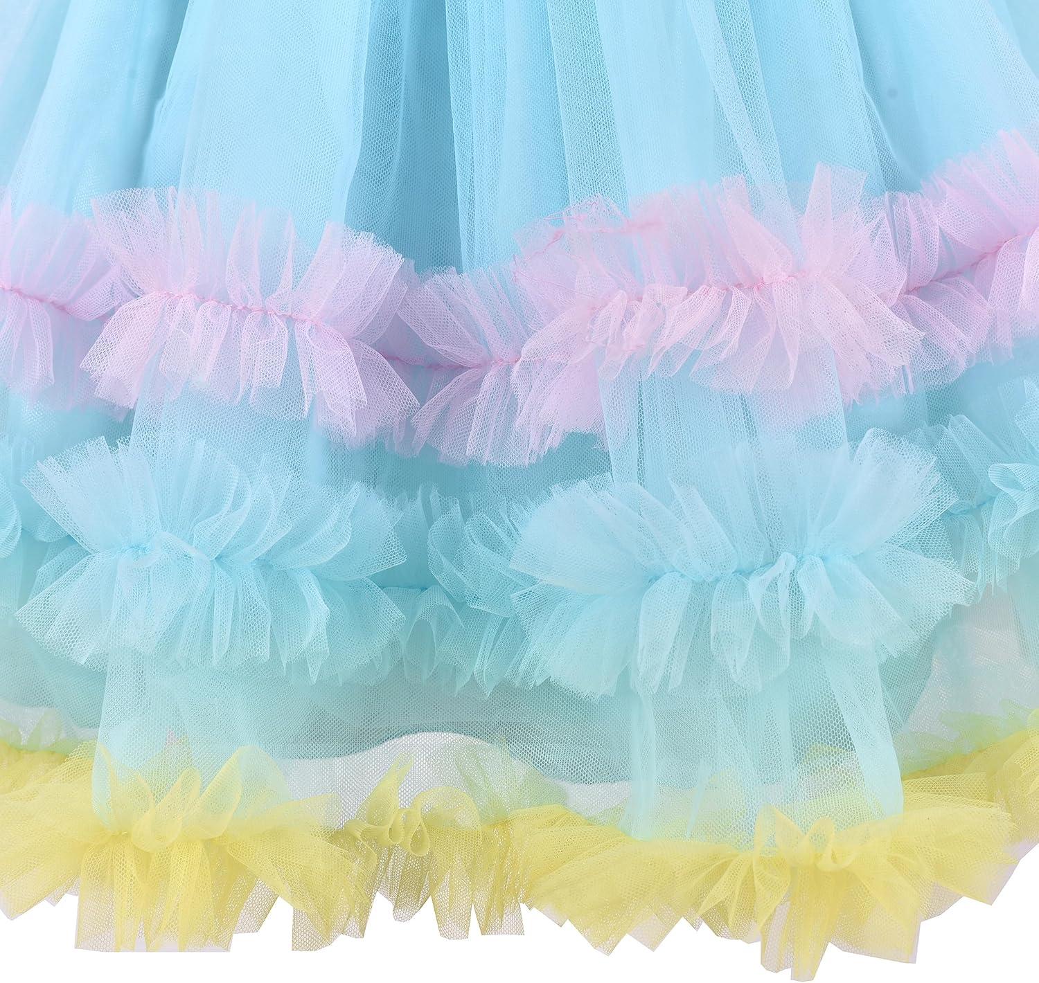 - Sunny Fashion Flower Girls Dress White Wedding Pageant Bridesmaid Gown Size 3-10(Blue Rainbow)