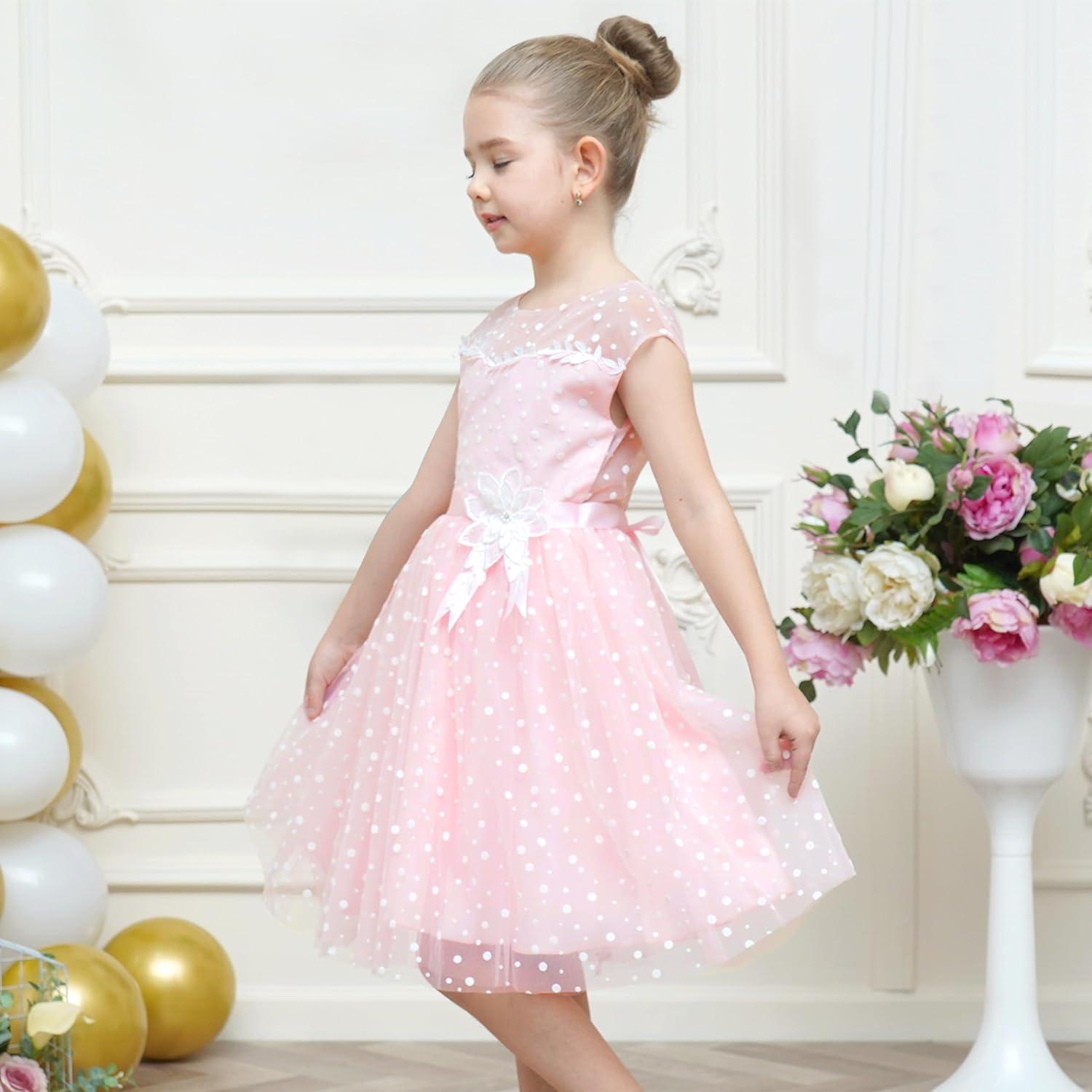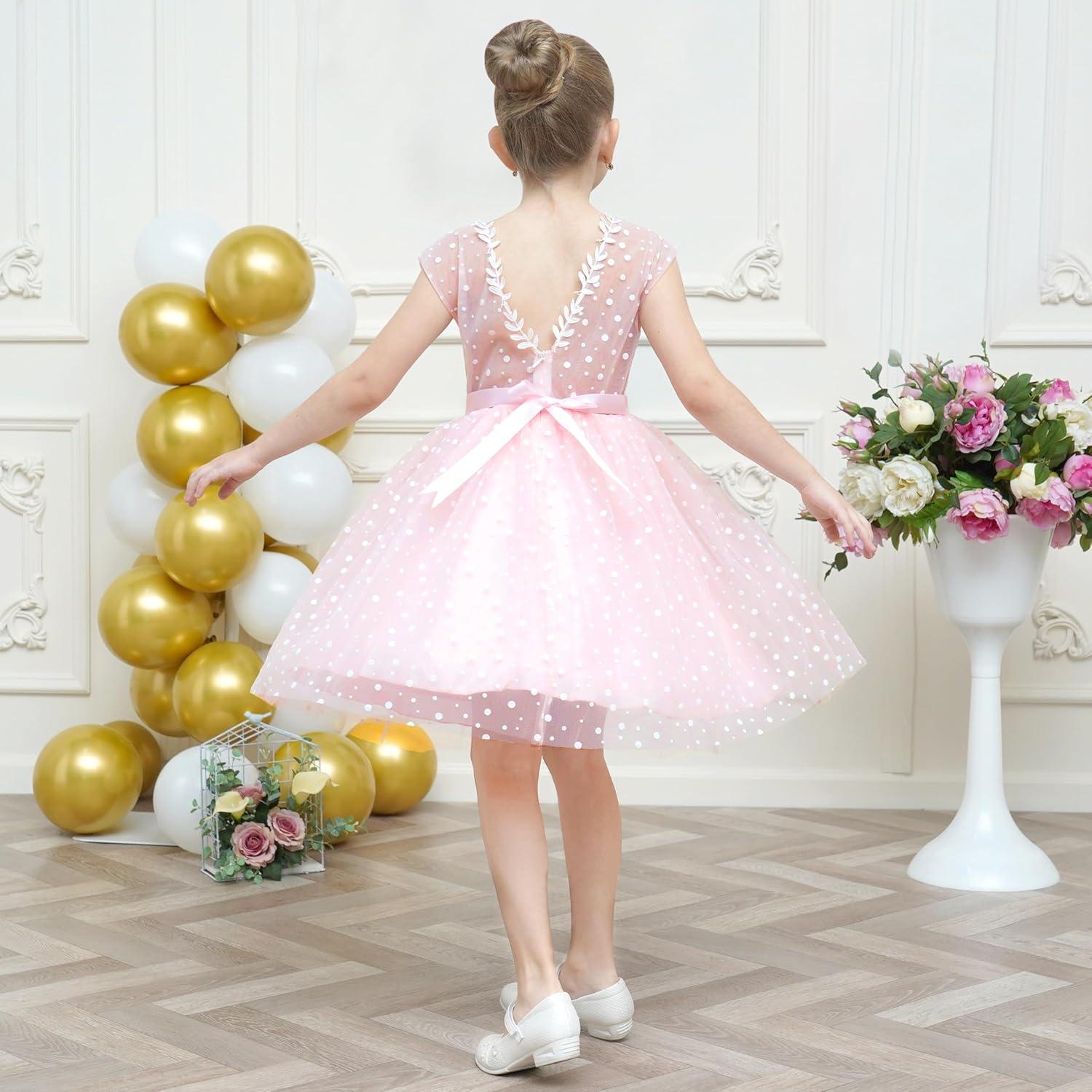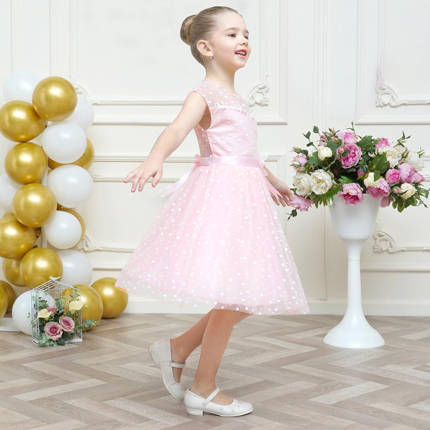 - Sunny Fashion Flower Girls Dress White Wedding Pageant Bridesmaid Gown Size 3-10(Pink Dot)