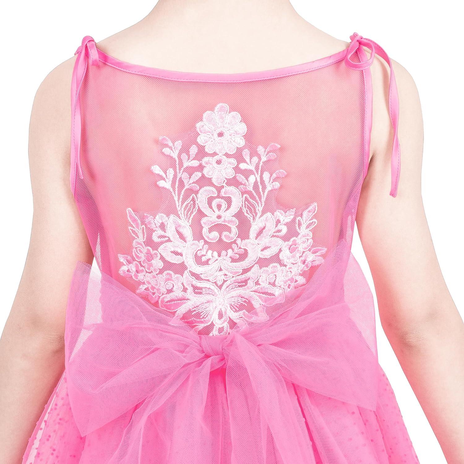 - Sunny Fashion 3 Layers Girls Dress Sunflower Wave Pageant Bridesmaid Kids(Pink Hollow Flower)