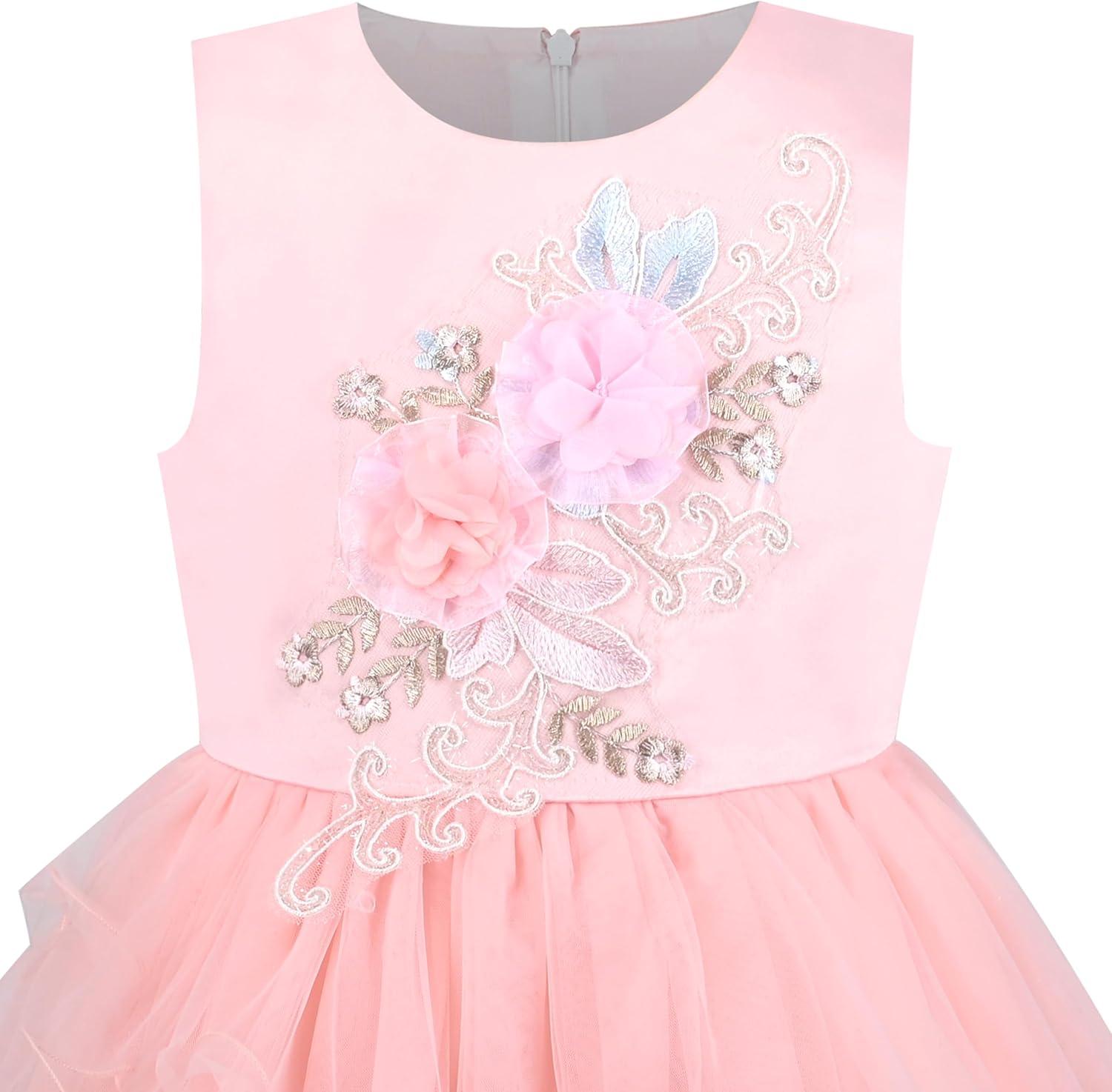 - Sunny Fashion 3 Layers Girls Dress Sunflower Wave Pageant Bridesmaid Kids(Pink Flower)