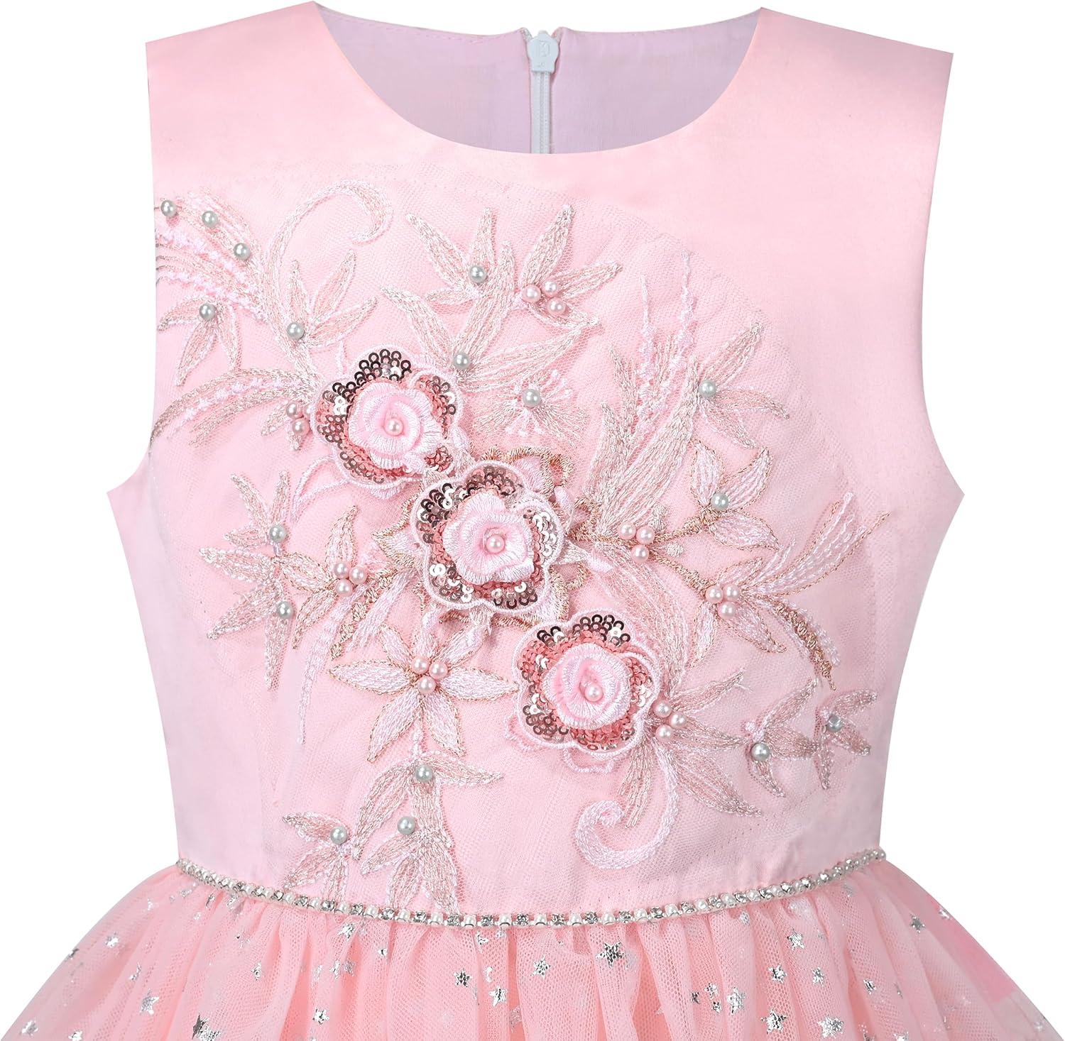 - Sunny Fashion Flower Girls Dress White Wedding Pageant Bridesmaid Gown Size 3-10(Pink Flower Sequin)