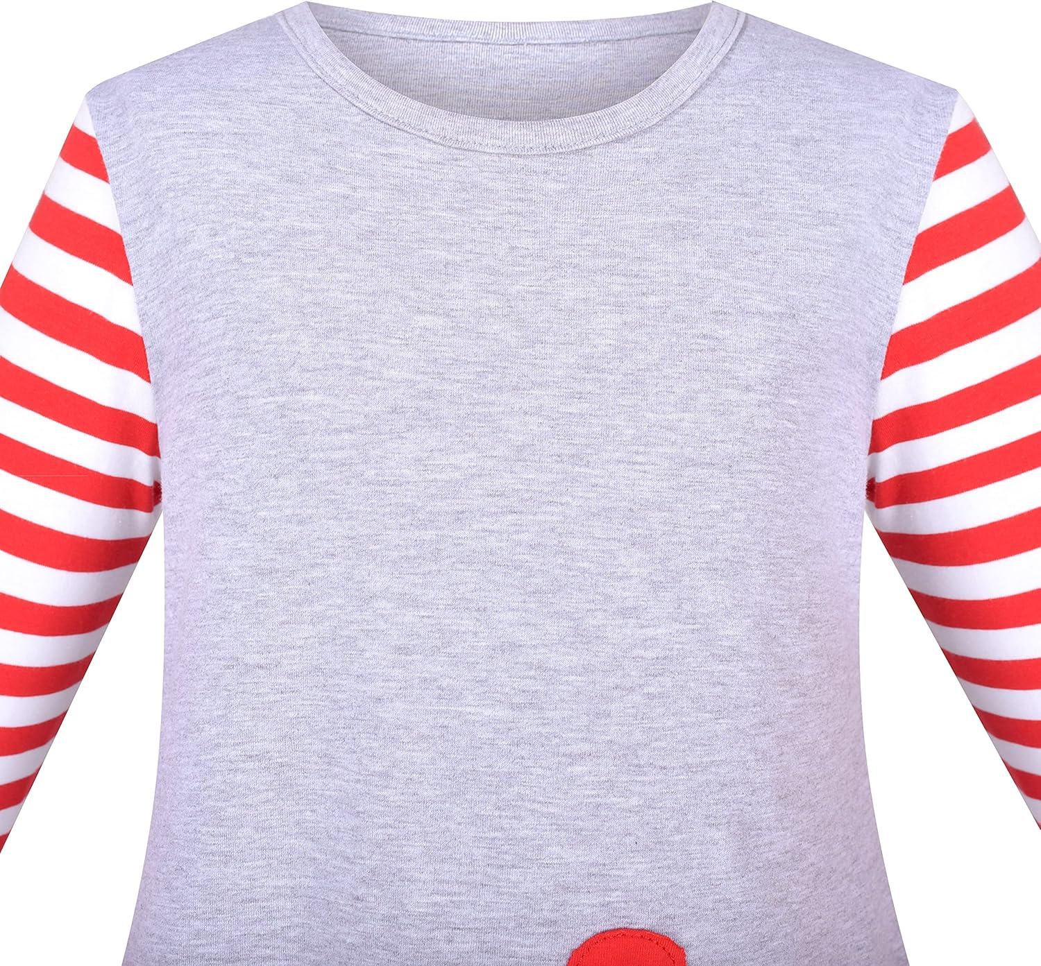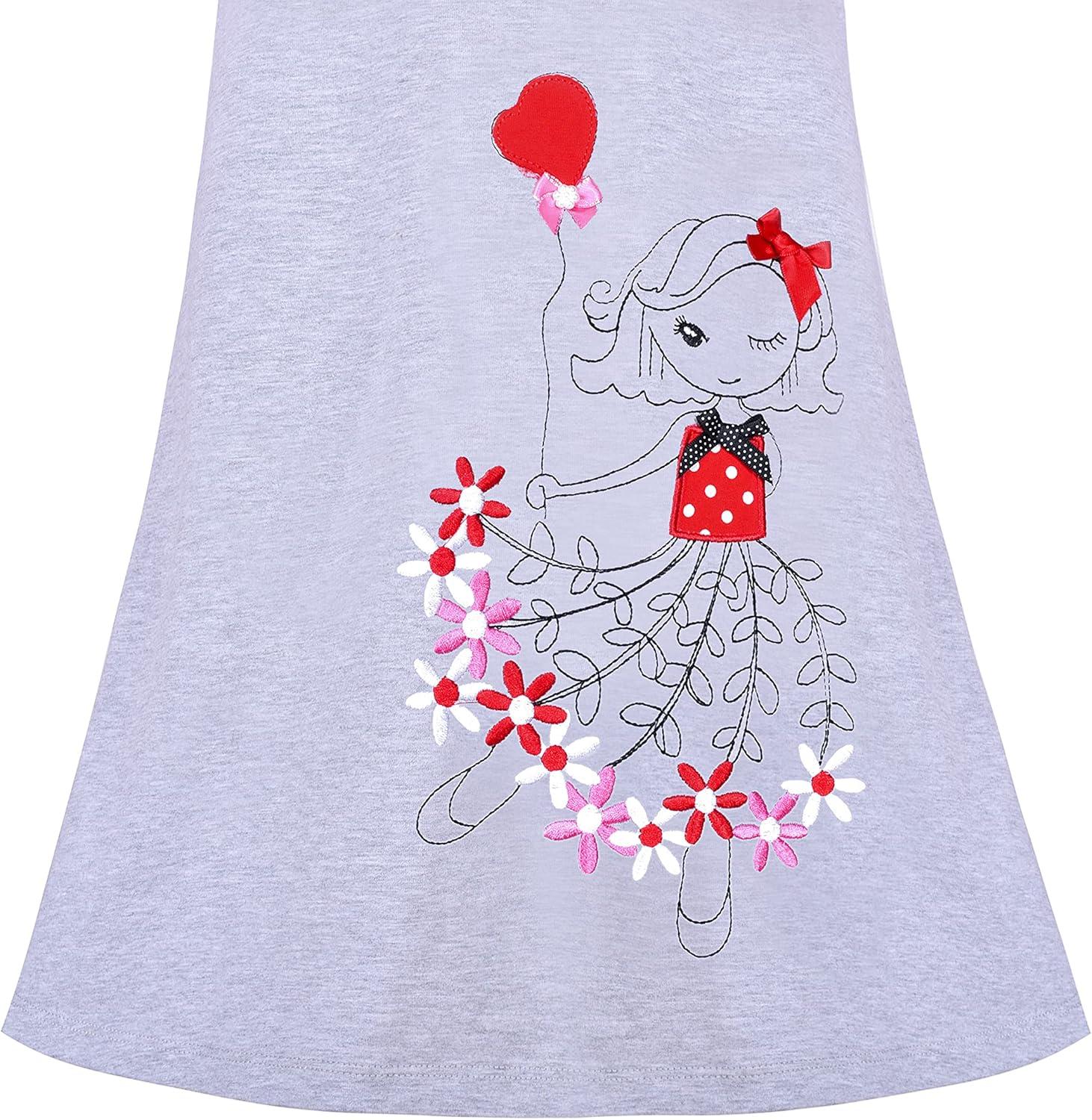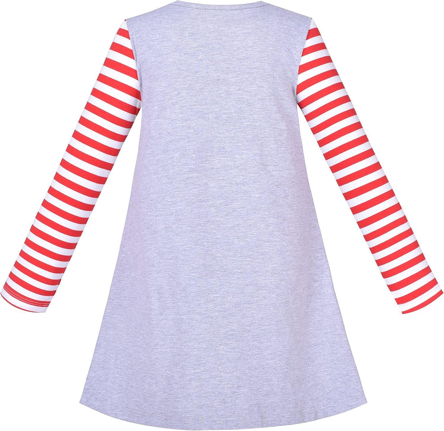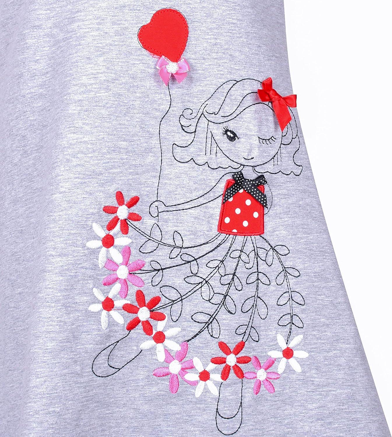 Sunny Fashion Girls Casual Dress Cotton Long Sleeve Kite Cloud Embroidered(Grey Red)
